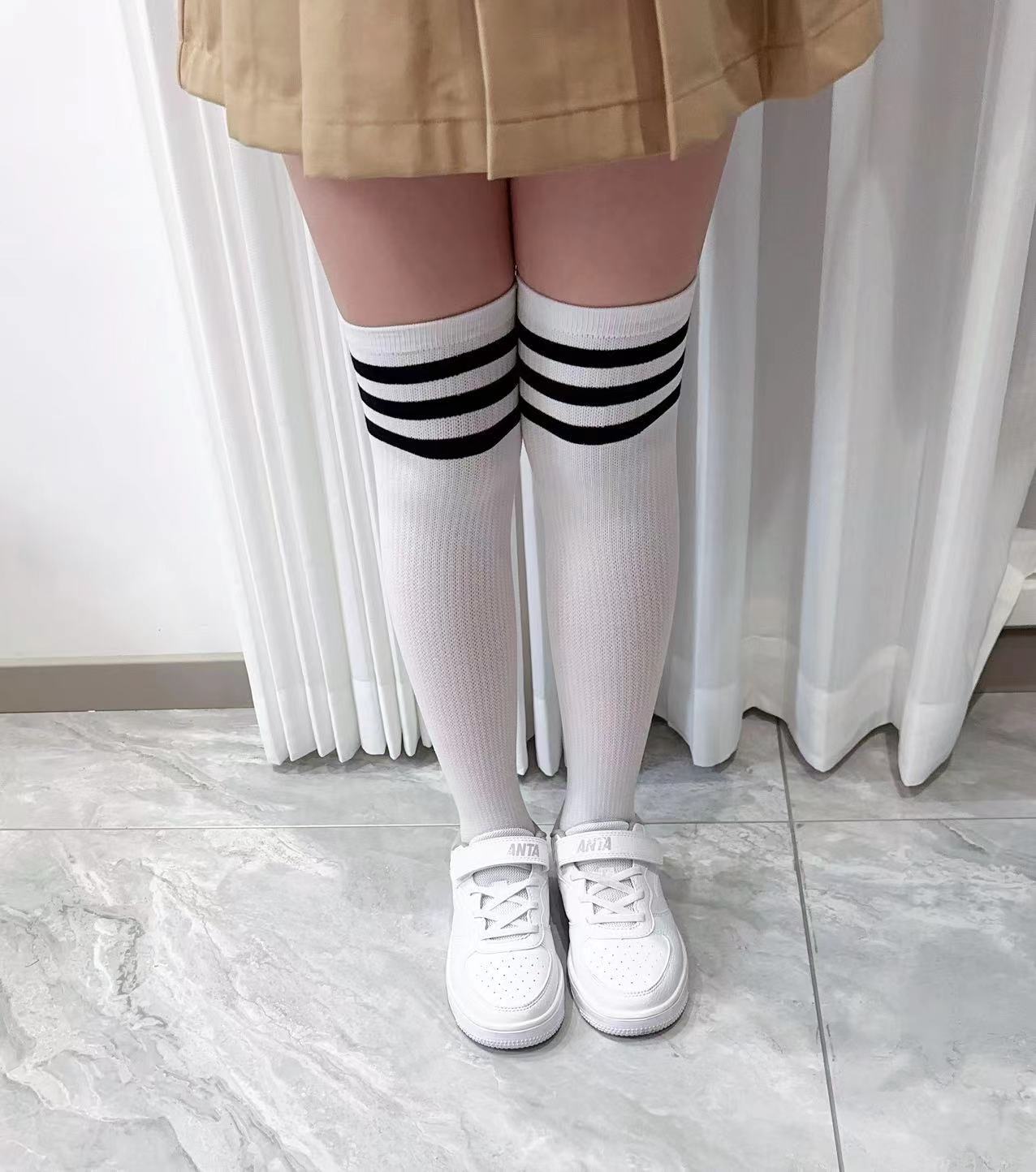 사랑의 진드기 어린이 화이트 스타킹 여름 3 바 학생 축구 대학 소년 소녀를위한 무릎 양말스토어 가기