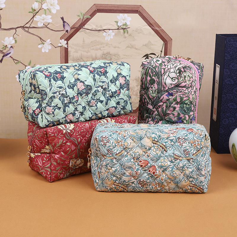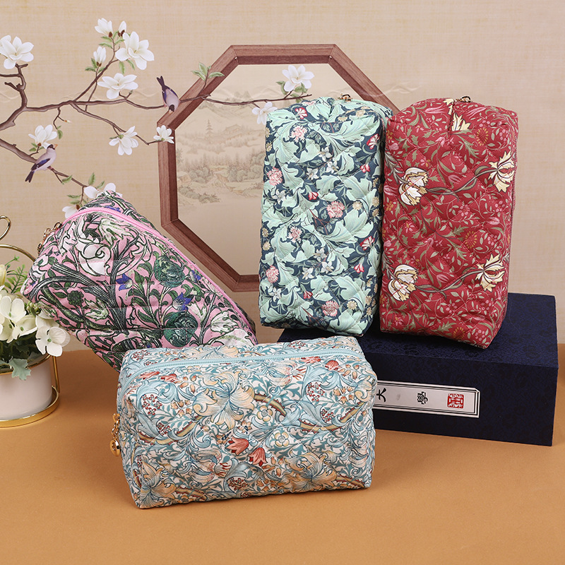 국경 면화 화장품 가방 복고풍 패턴 퀼트 면화 가방 마름모 대용량 저장 휴대용 가방 수하물 공장