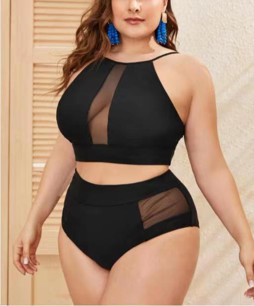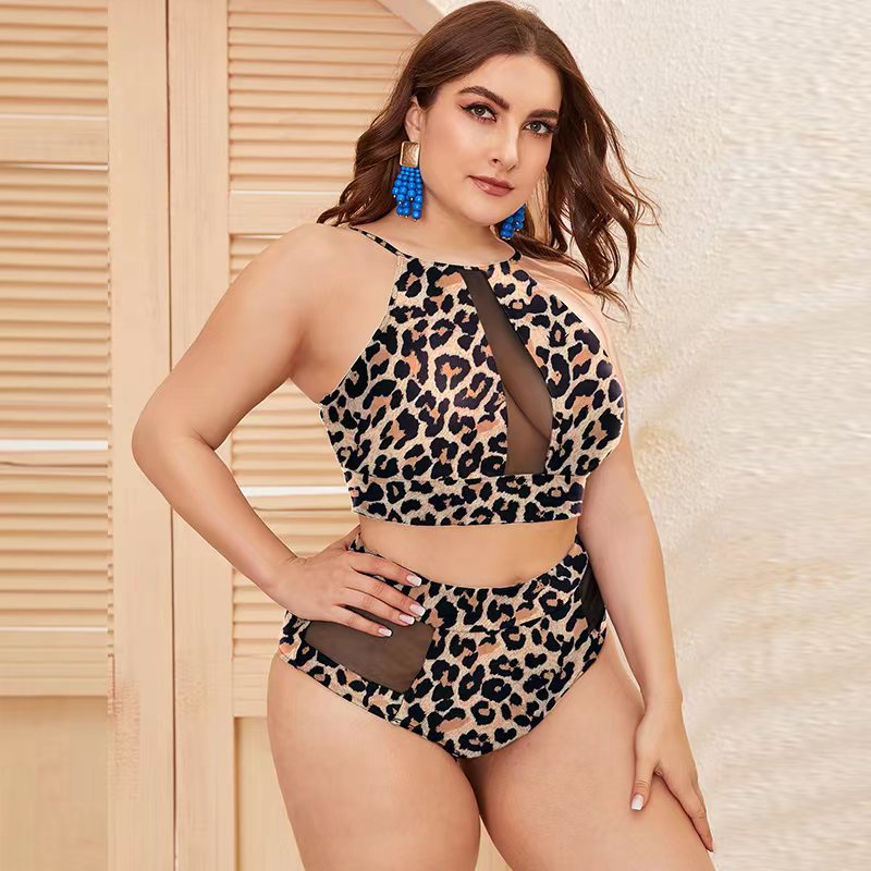 2024 새로운 유럽과 미국의 아마존 국경 간 무역 단색 레오파드 무늬 뚱뚱한 여자 대형 허리 분할 비키니 수영복스토어 가기