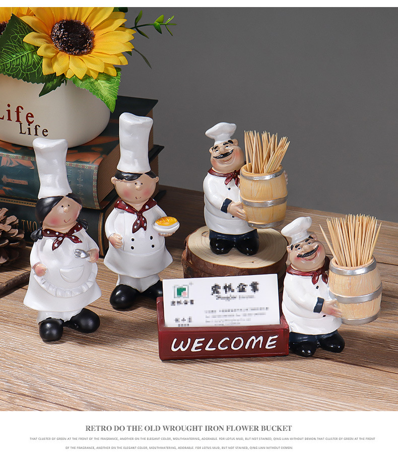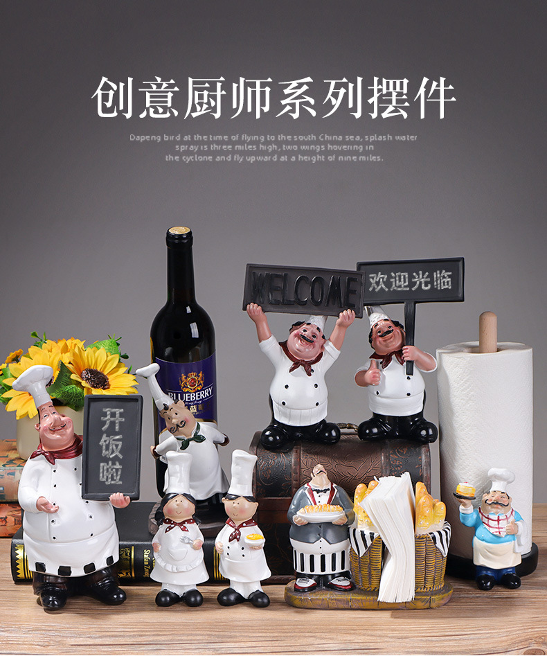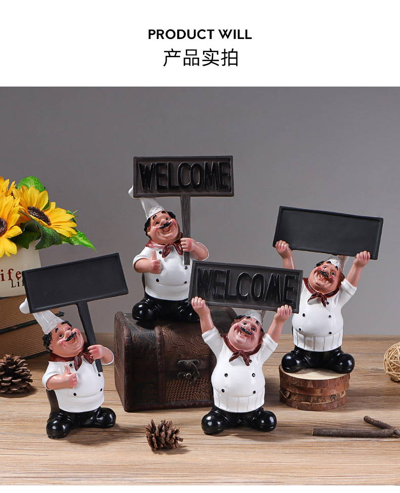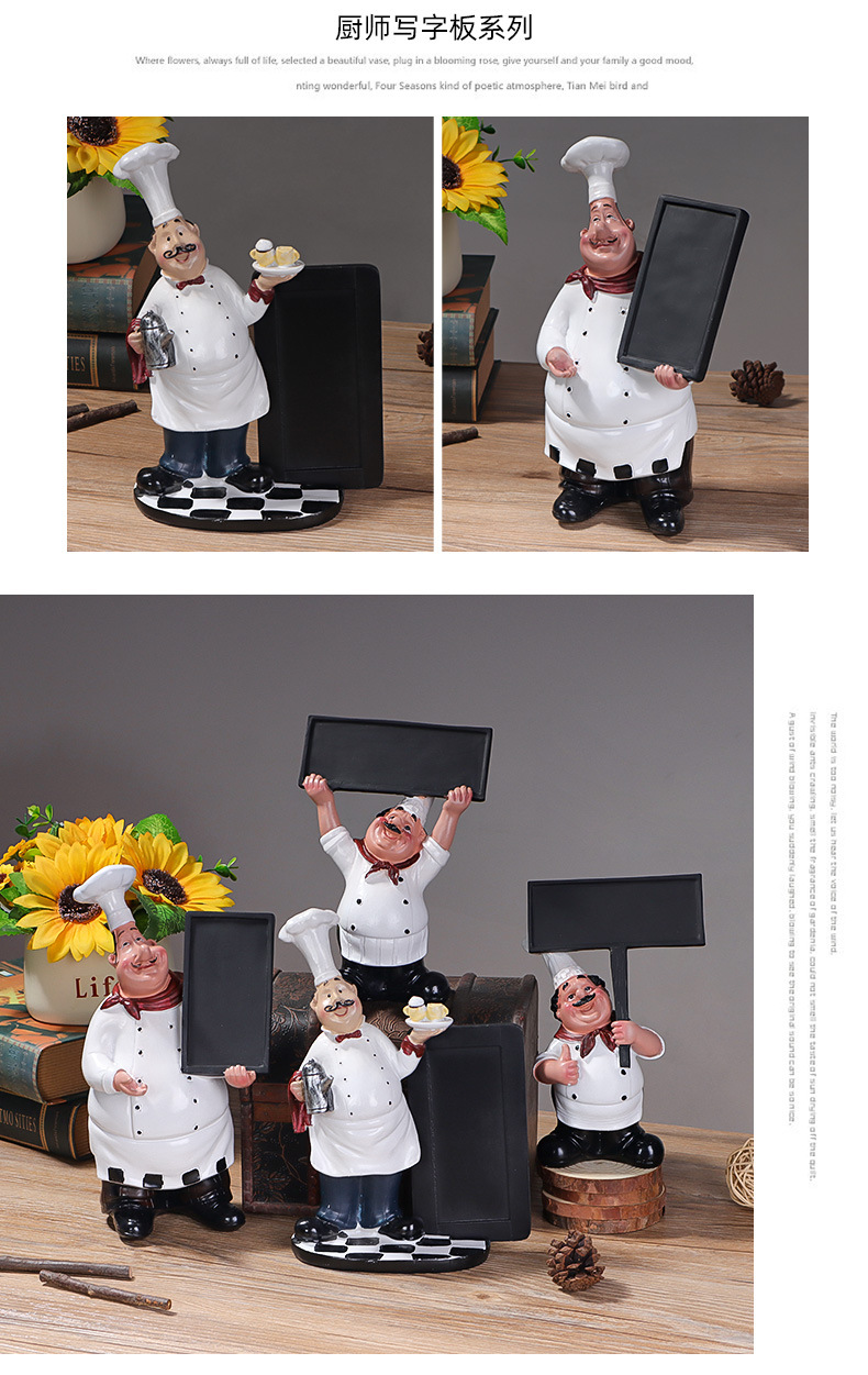 유럽 요리사 캐릭터 장식 수지 공예 창조적 인 레스토랑 요리사 칠판 환영 브랜드 브랜드 창조적 인 장식스토어 가기