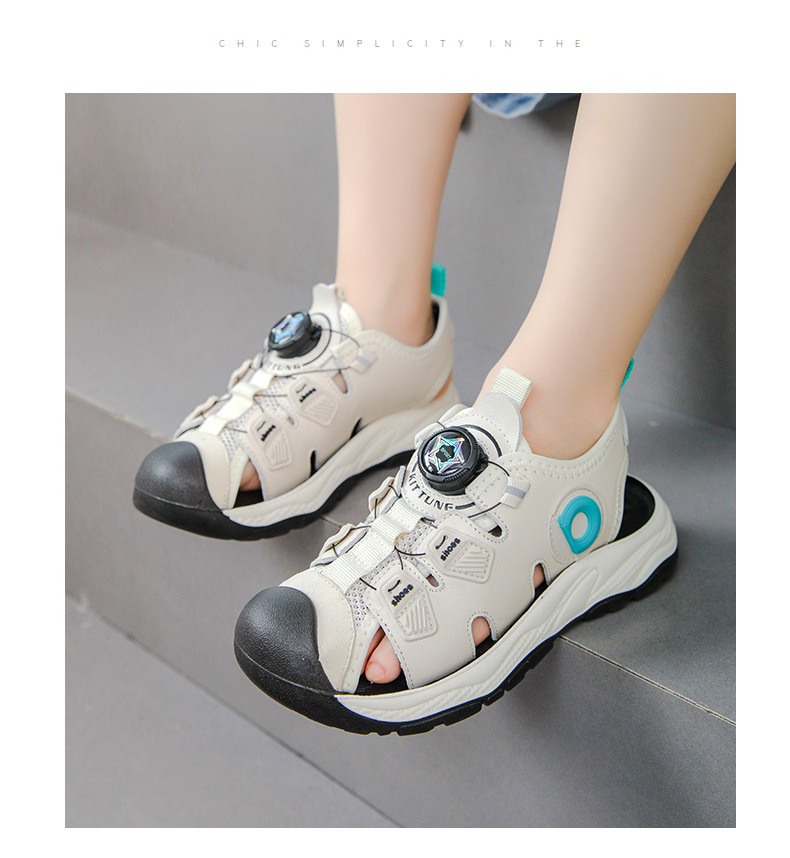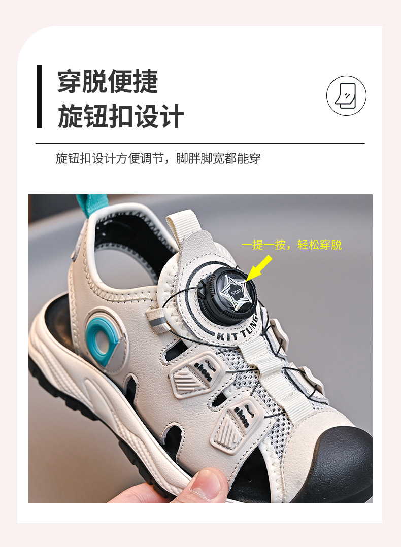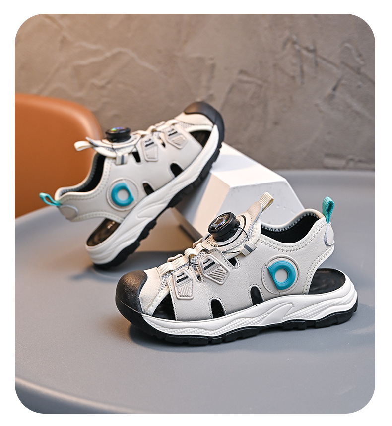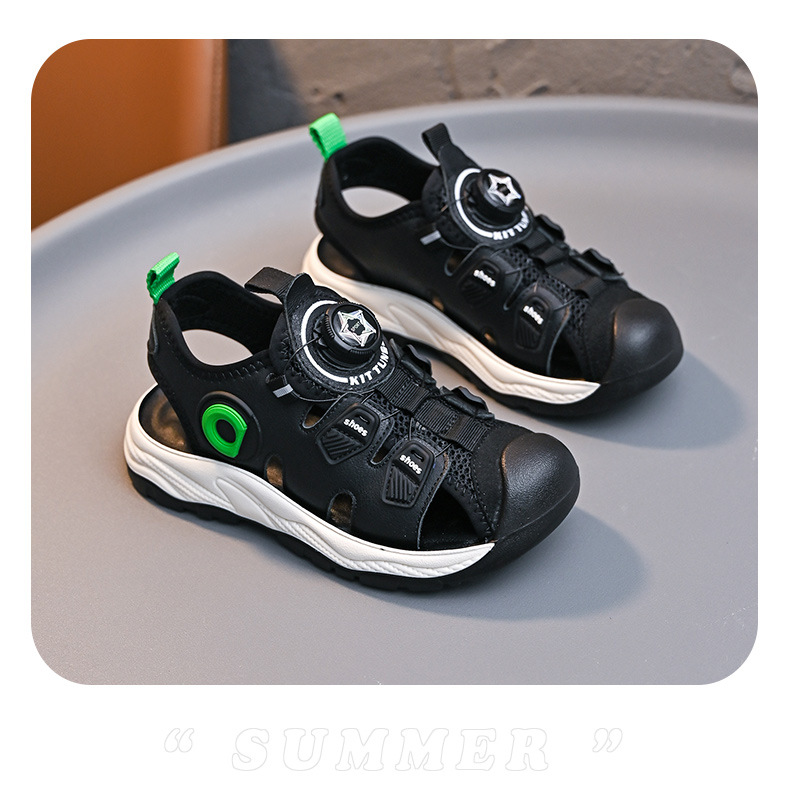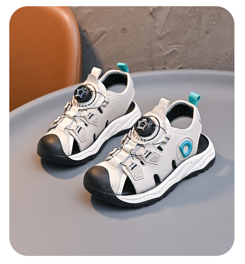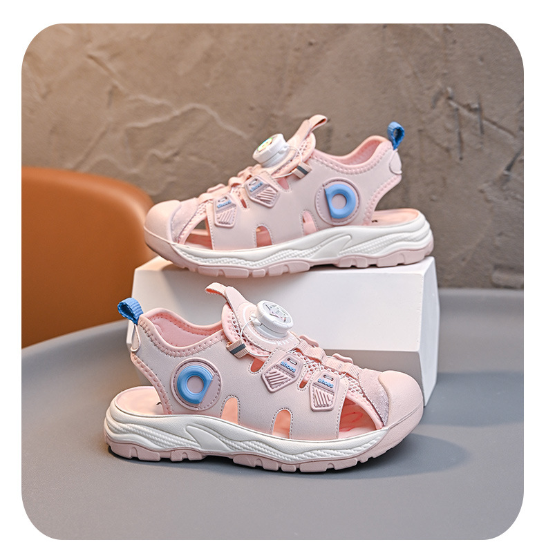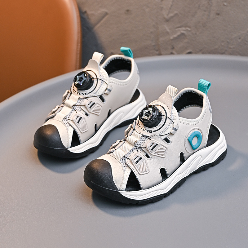 회전 버튼 발가락 비치 신발 어린이 스포츠 샌들 여름 2025 새로운 중대형 어린이 캐주얼 신발