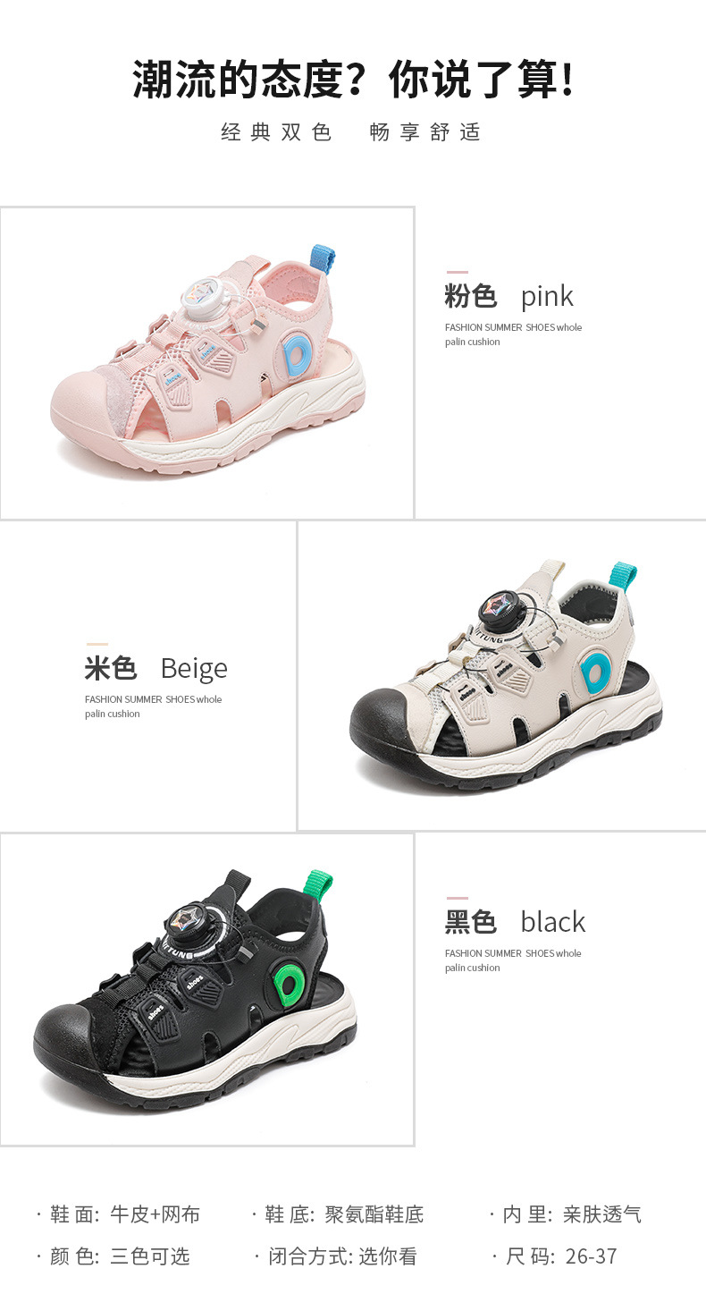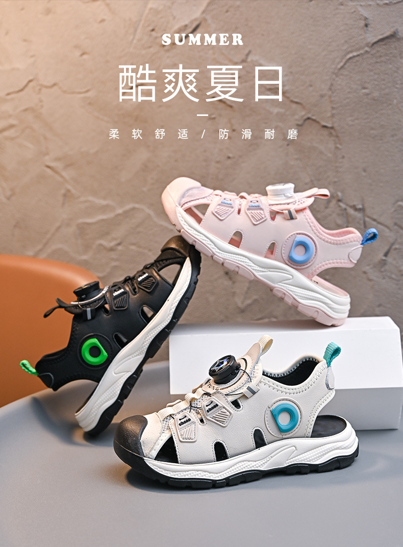 회전 버튼 발가락 비치 신발 어린이 스포츠 샌들 여름 2025 새로운 중대형 어린이 캐주얼 신발스토어 가기