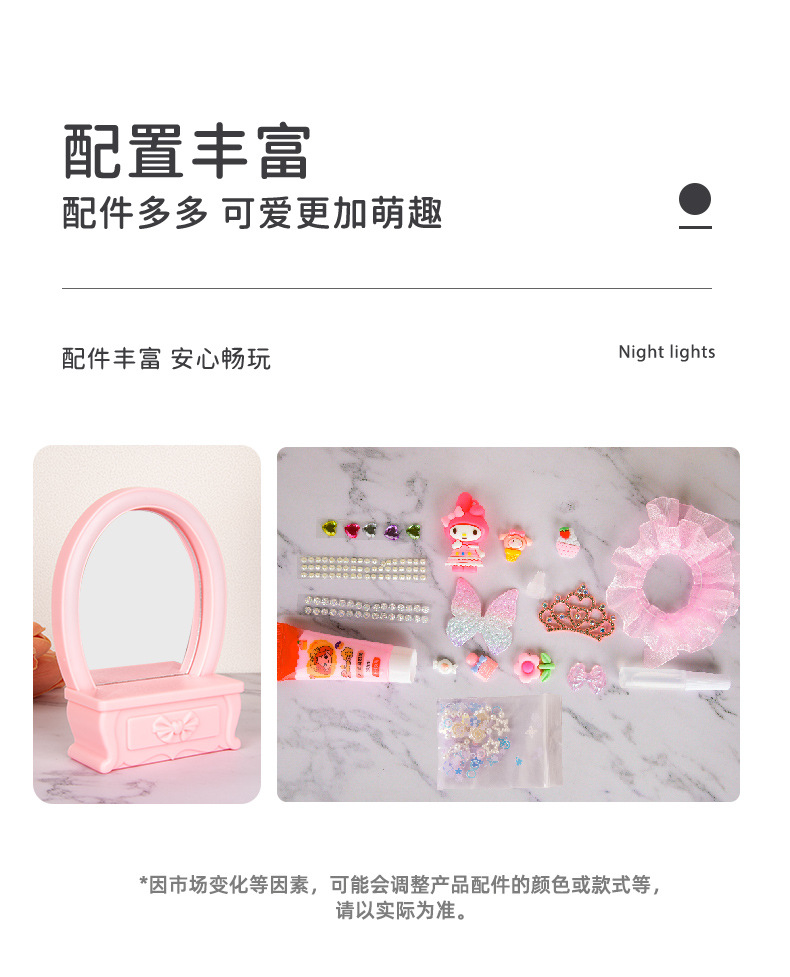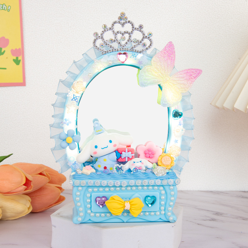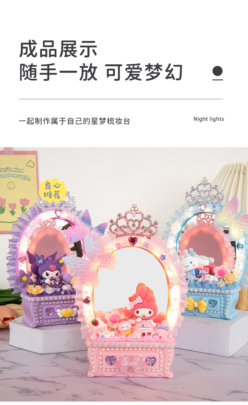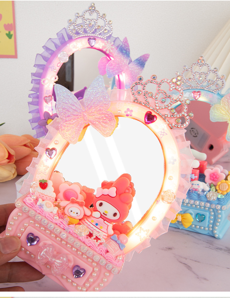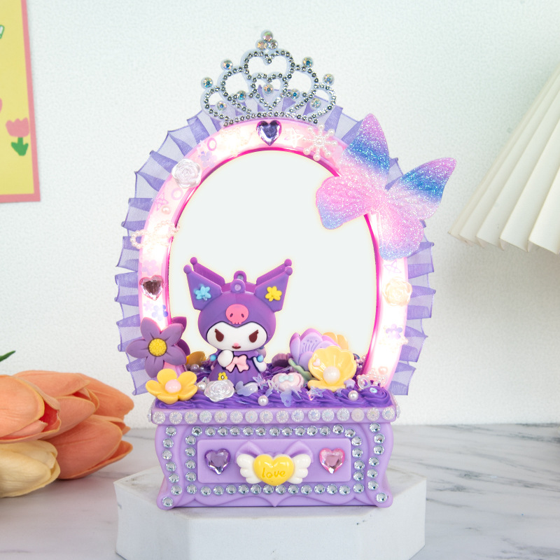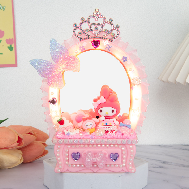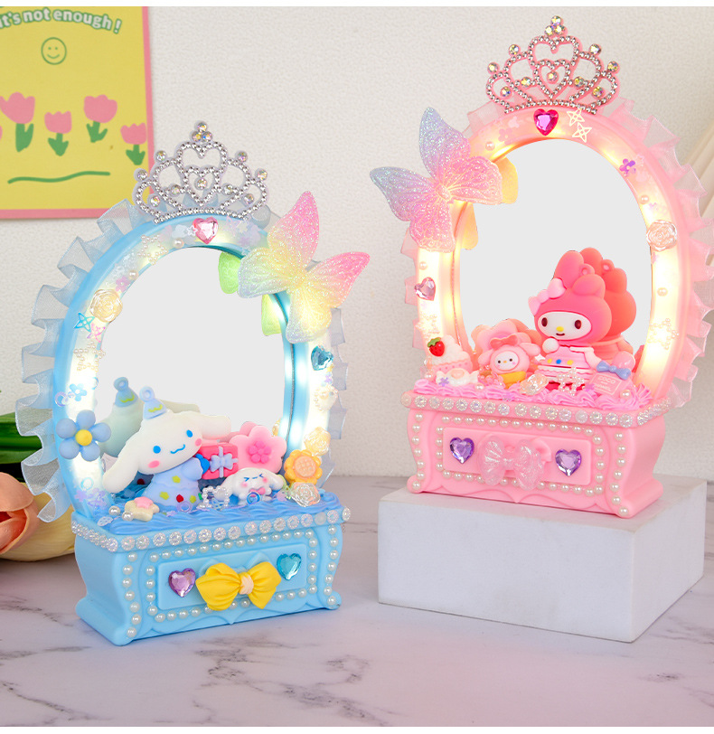 2024 새로운 소녀 크림 젤 드레싱 테이블 램프 저장 상자 어린이 DIY 수제 메이크업 거울 교육 장난감스토어 가기
