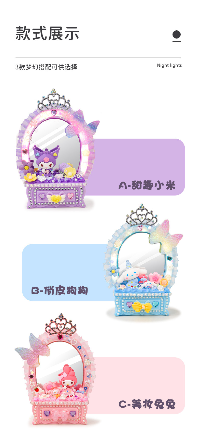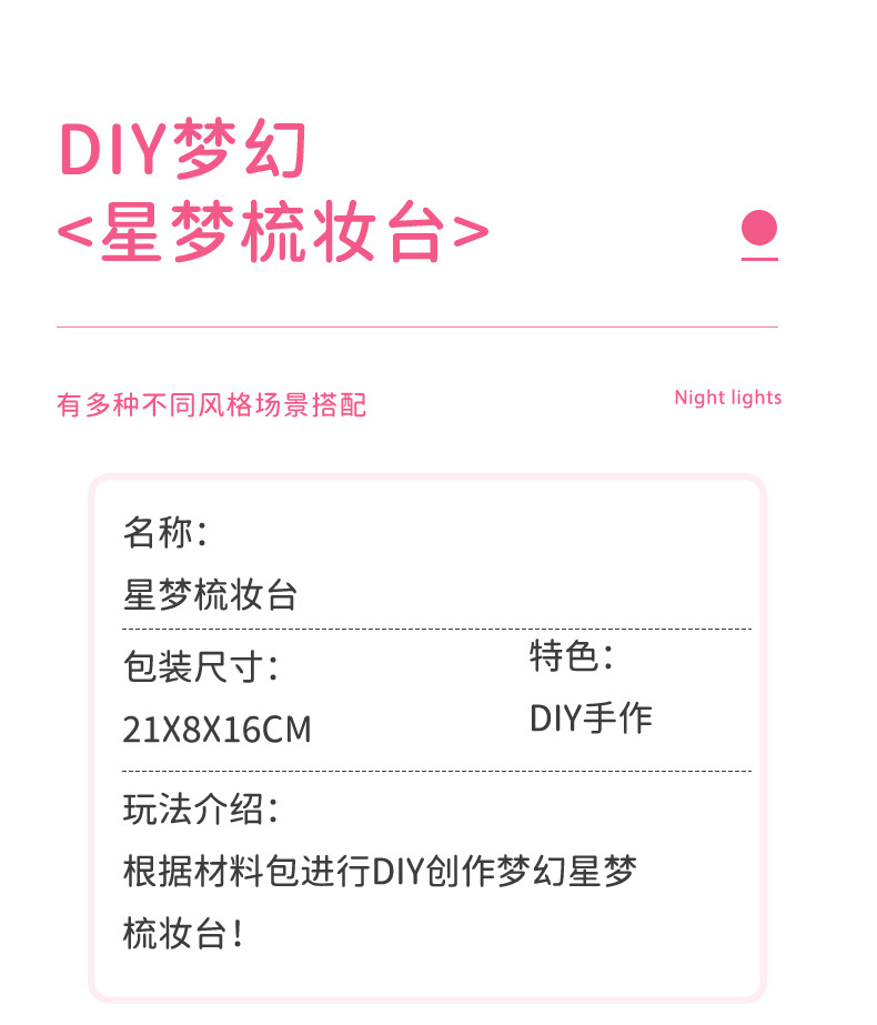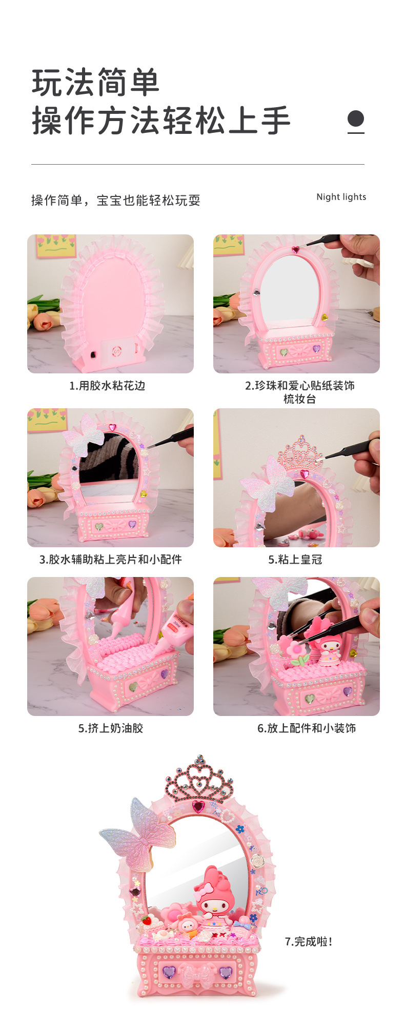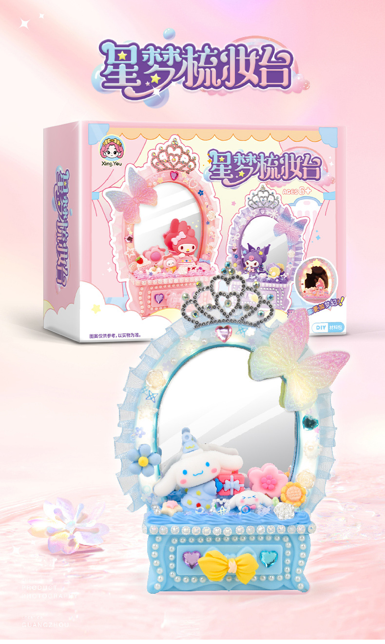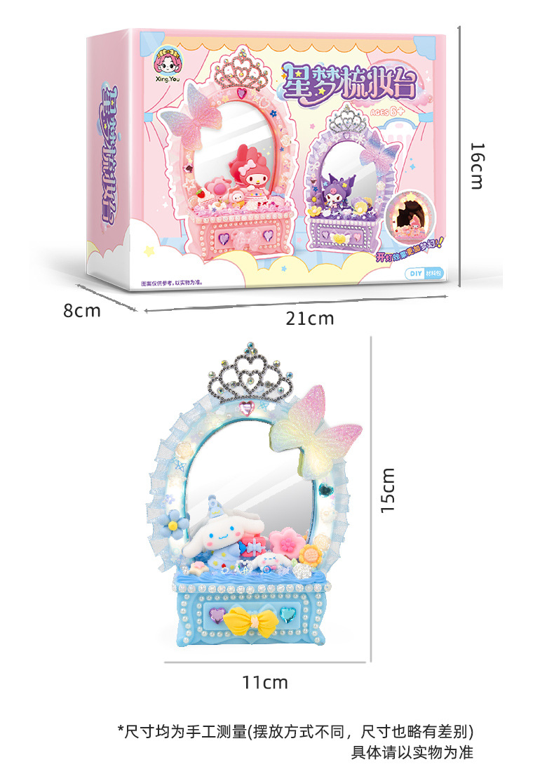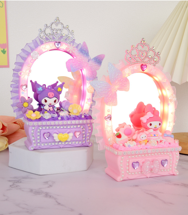 2024 새로운 소녀 크림 젤 드레싱 테이블 램프 저장 상자 어린이 DIY 수제 메이크업 거울 교육 장난감스토어 가기