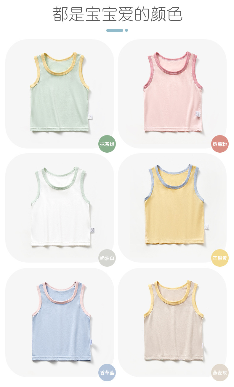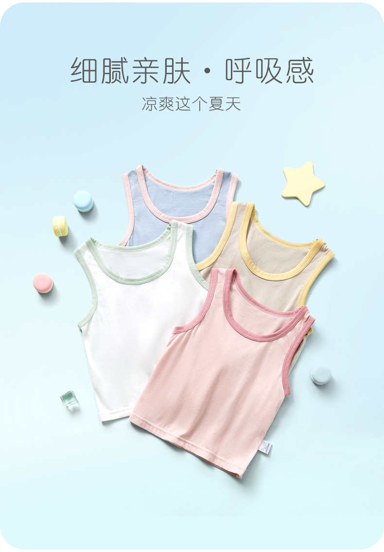 아기 조끼 여름 얇은 모달 코튼 아기 옷 귀여운 대비 컬러 유아 최고 민소매 기본 셔츠 T스토어 가기