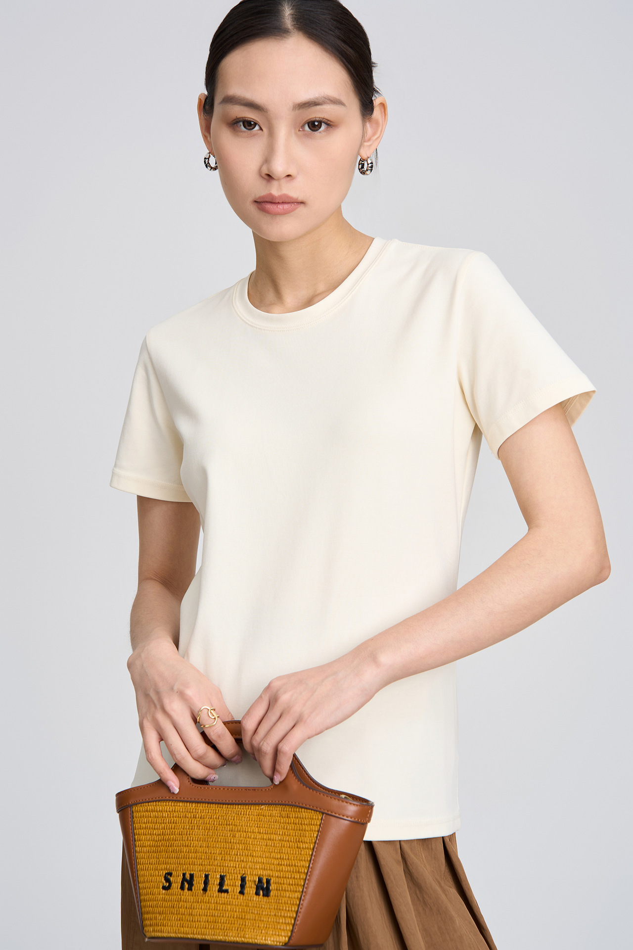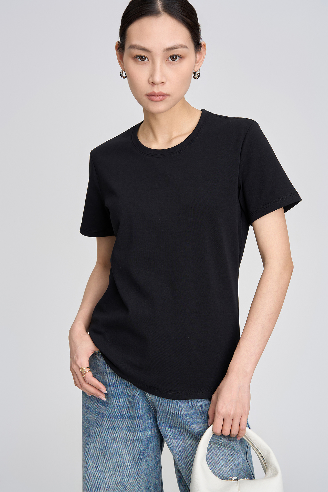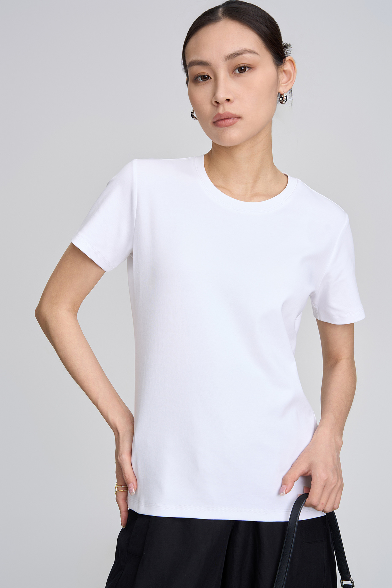2026 봄/여름 클래식 라운드넥 피마 코튼 슬림핏 반팔 티셔츠 순면 피부 친화적인 단색 다용도 여성용 상의