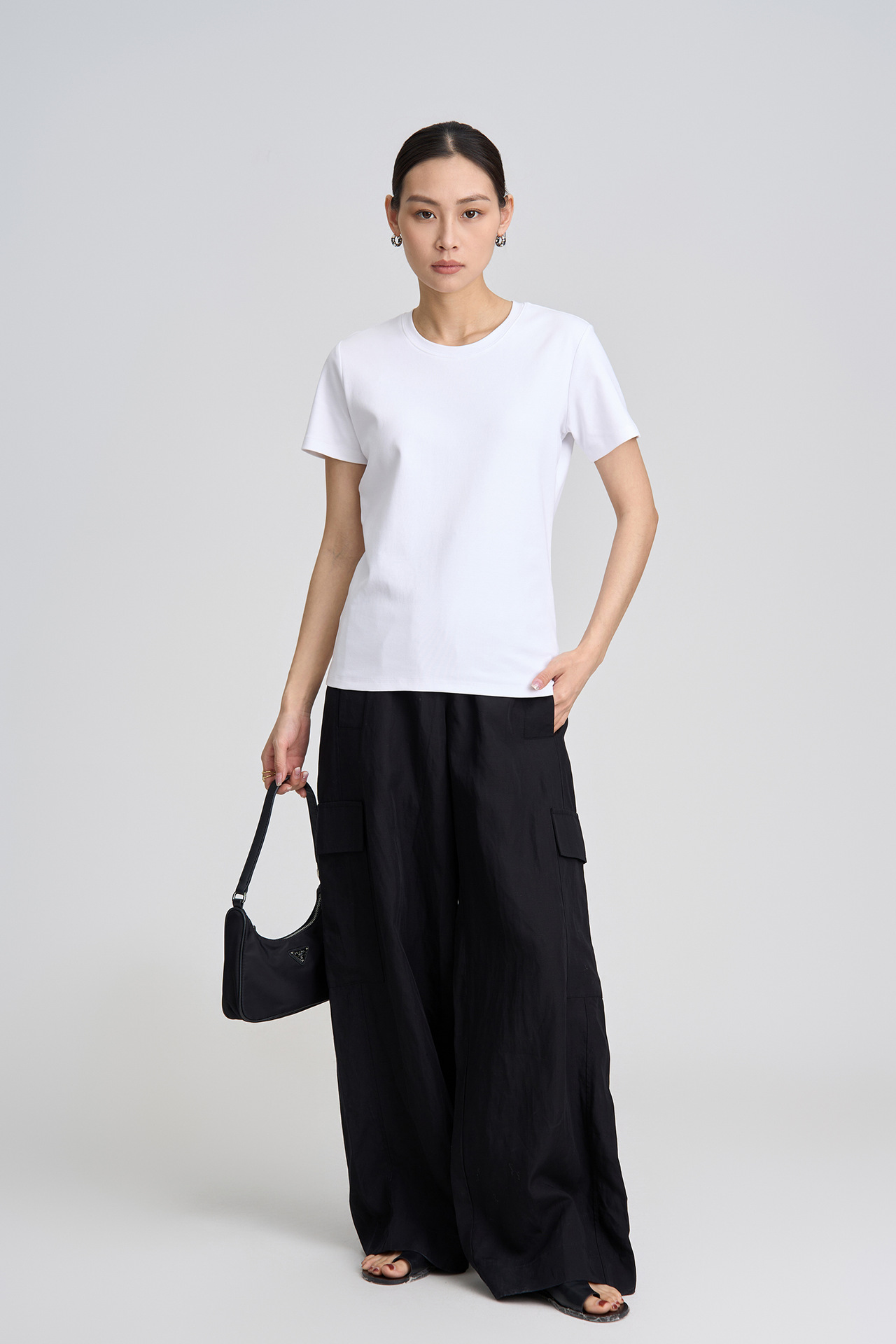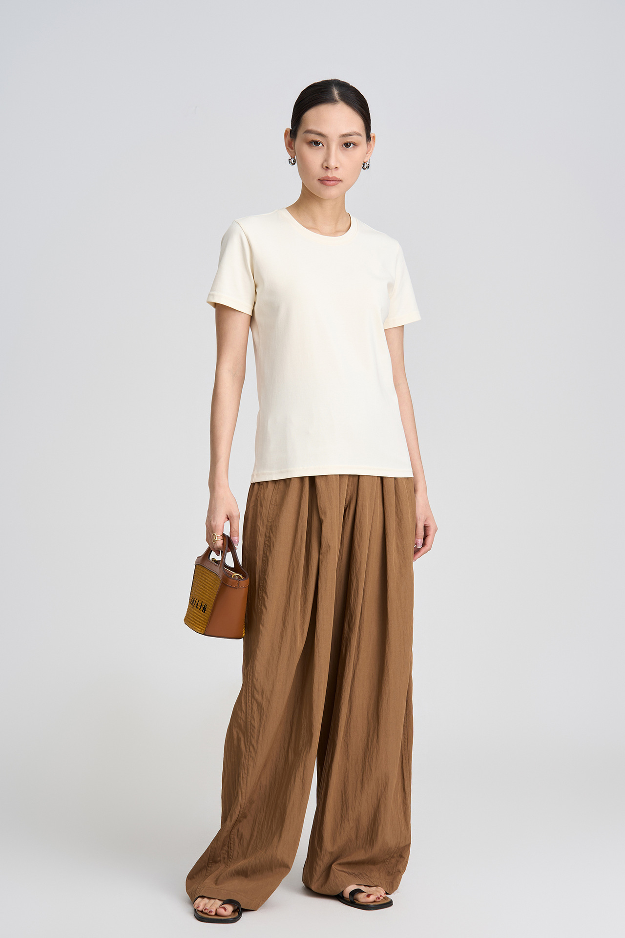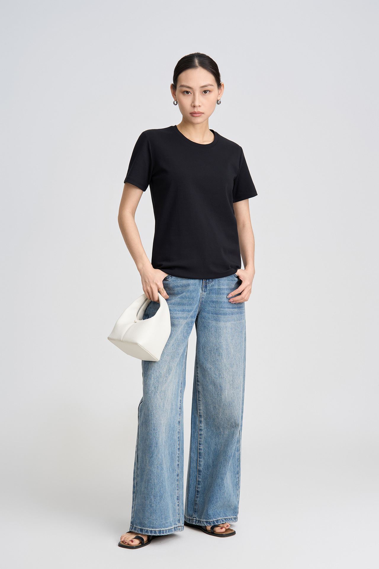 2026 봄/여름 클래식 라운드넥 피마 코튼 슬림핏 반팔 티셔츠 순면 피부 친화적인 단색 다용도 여성용 상의