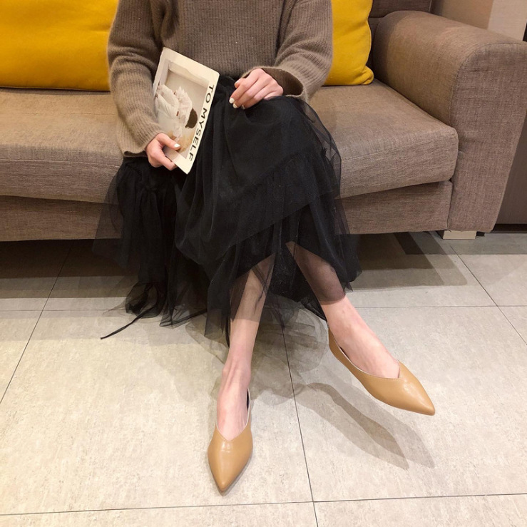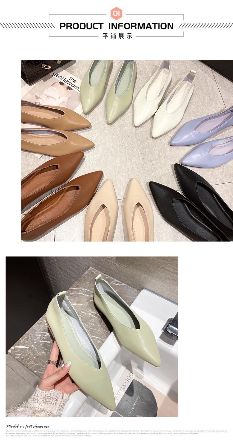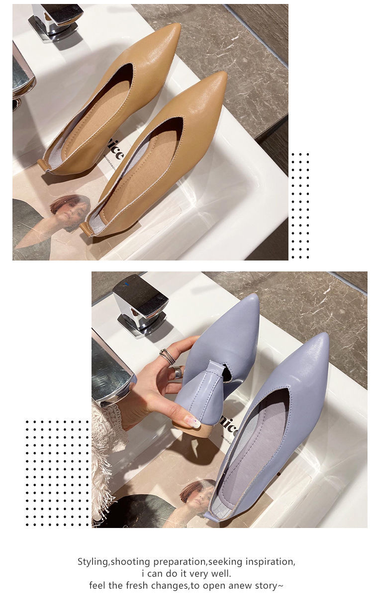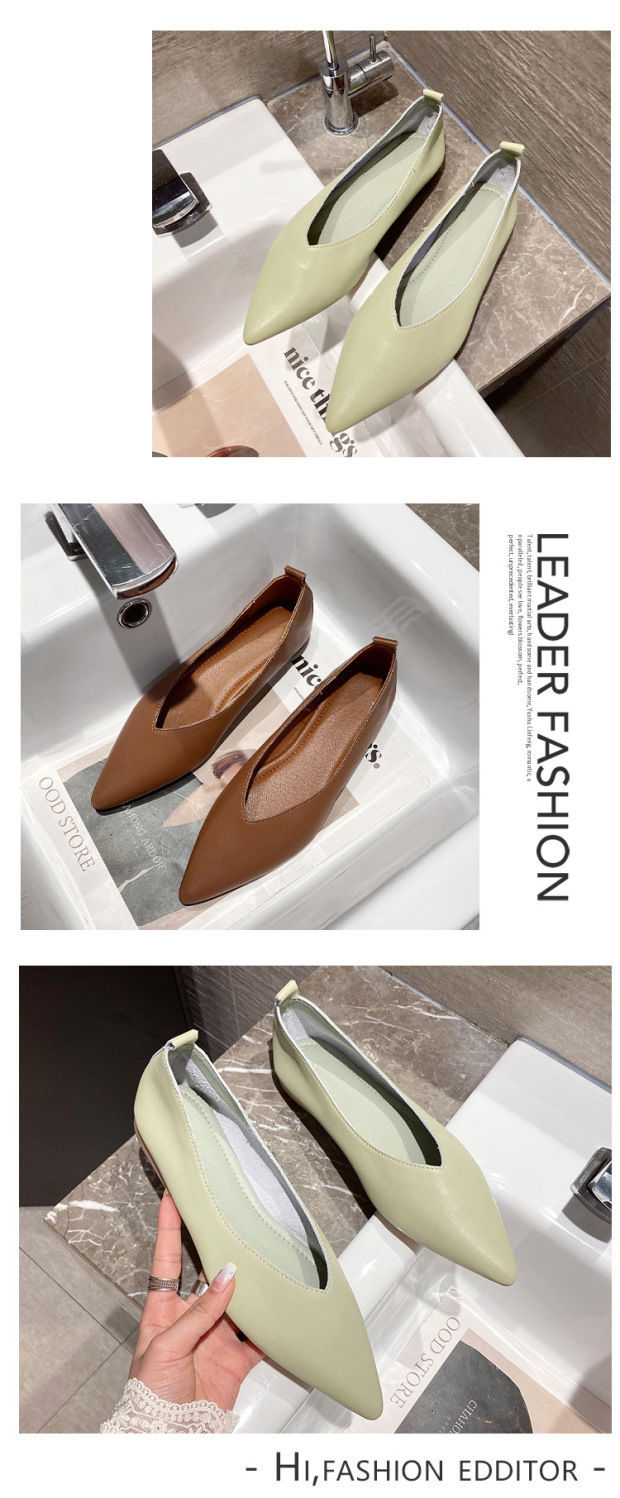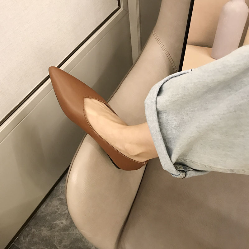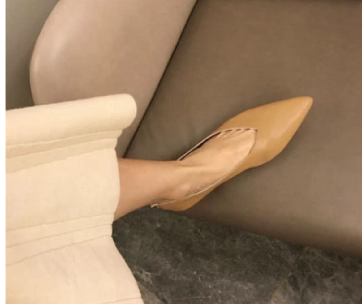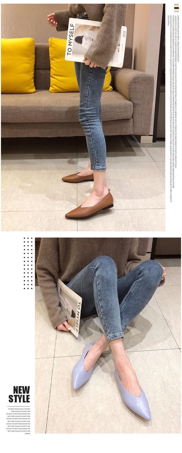 • 라이트 브라운 포인트-발가락 플랫 펌프