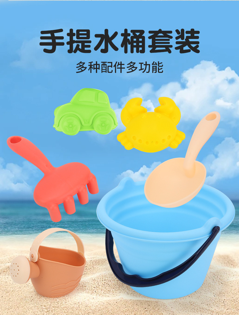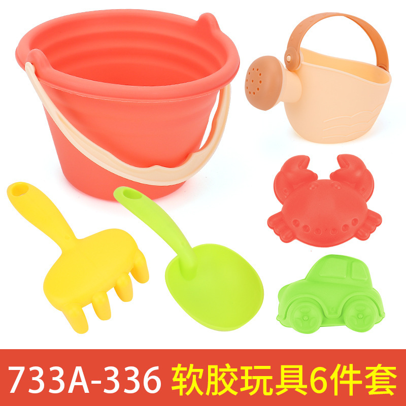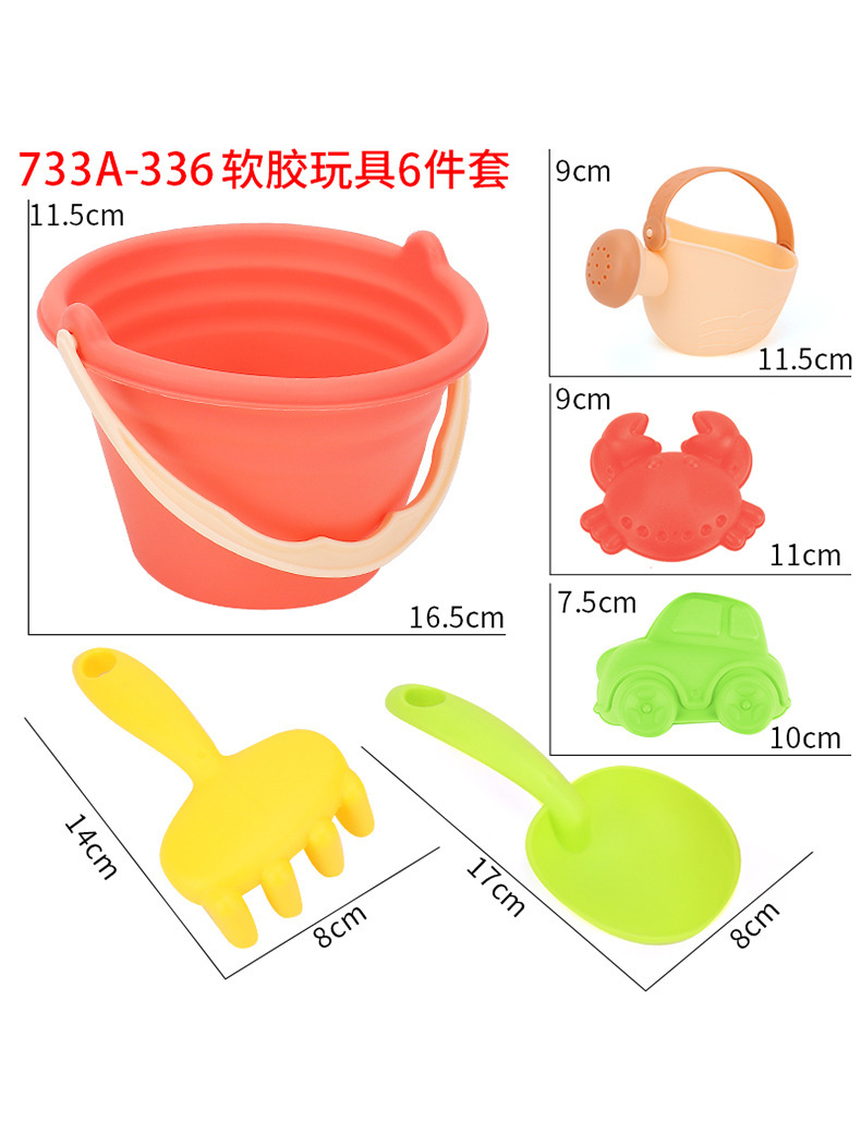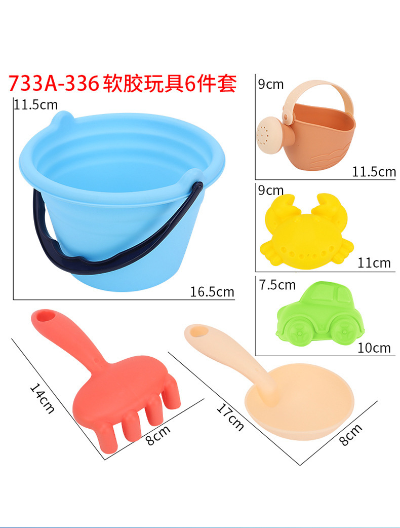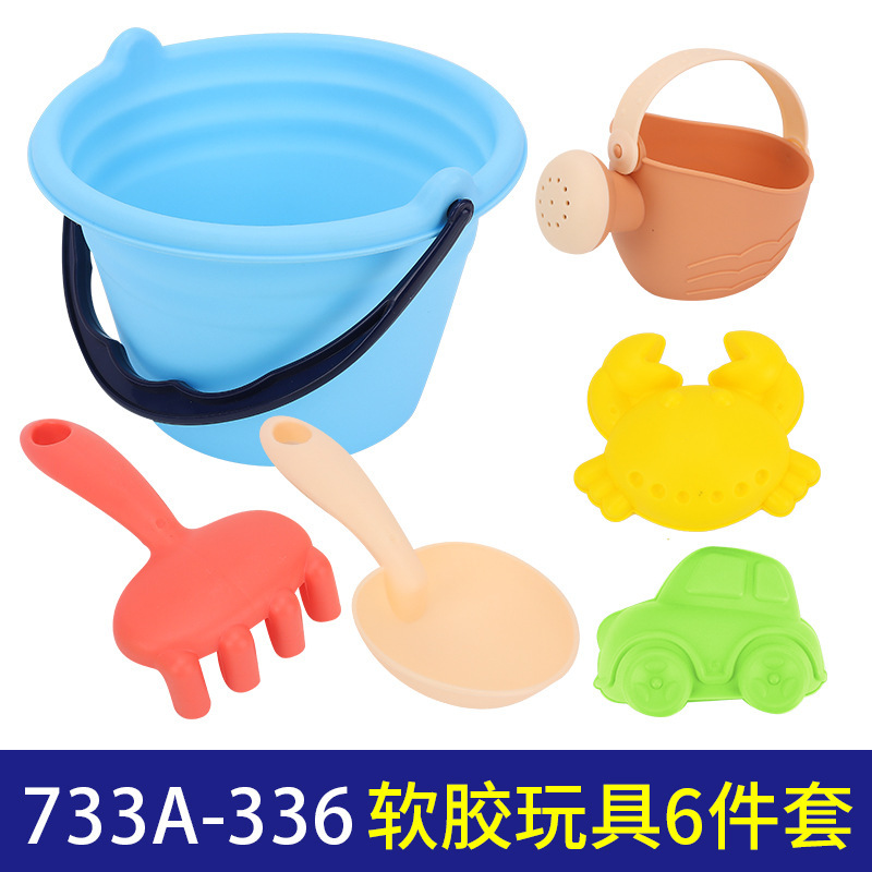 • [6 피스 세트] 부드러운 고무 파우더 버킷 비치 세트