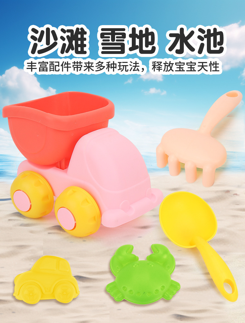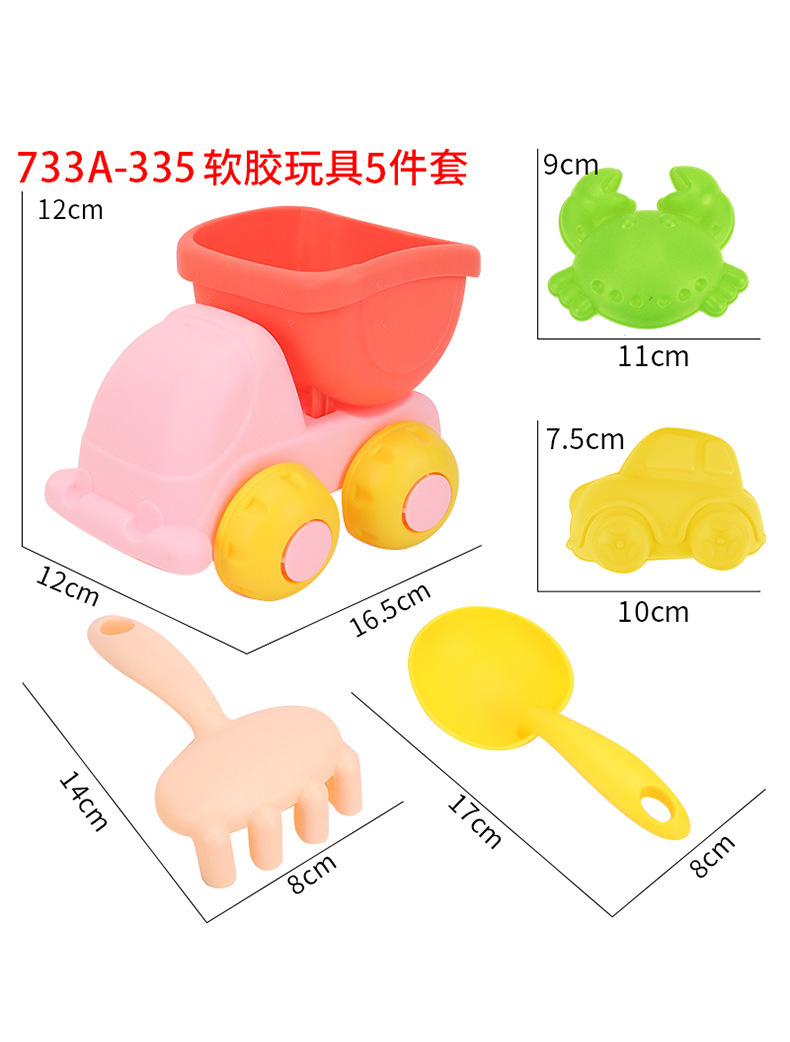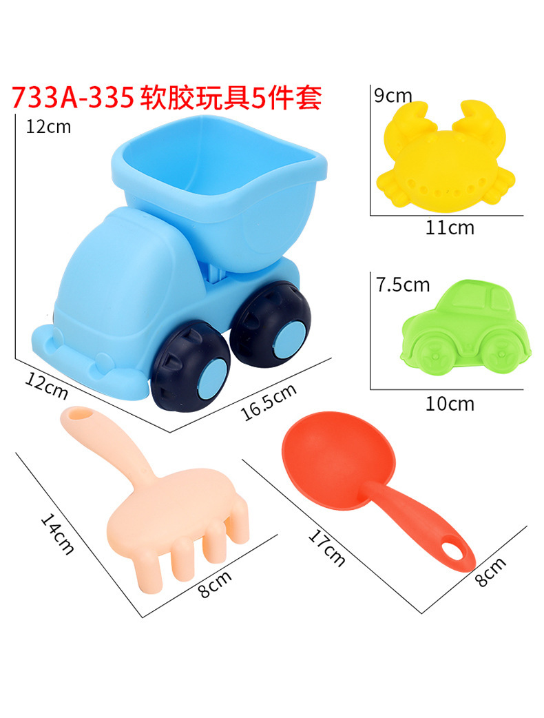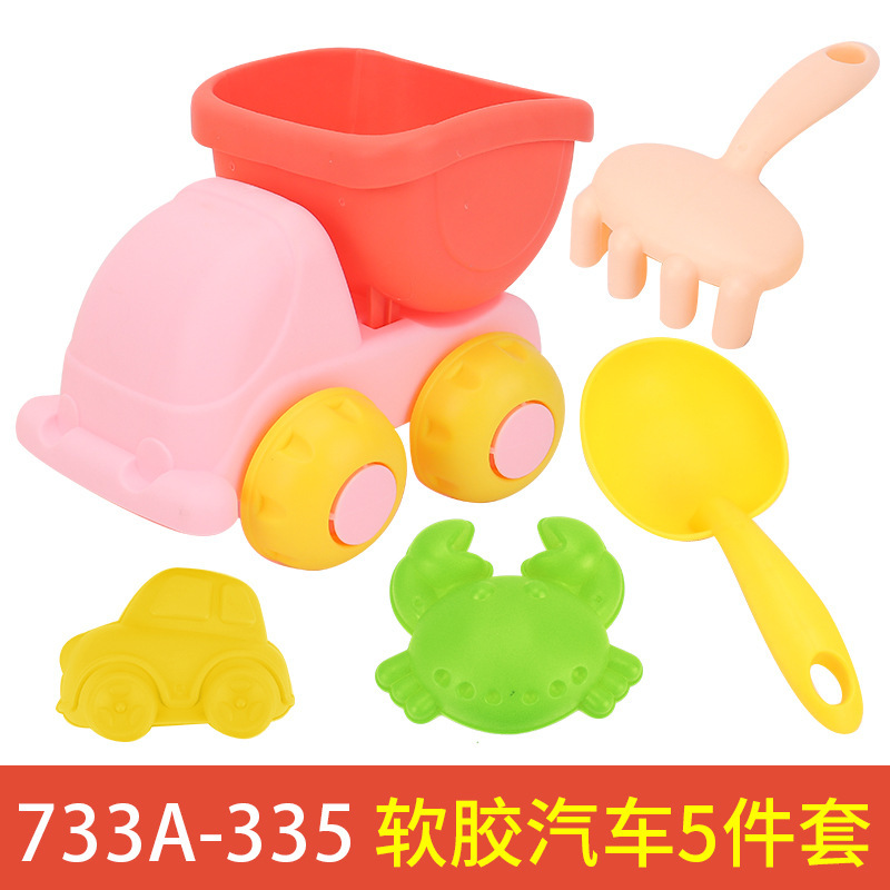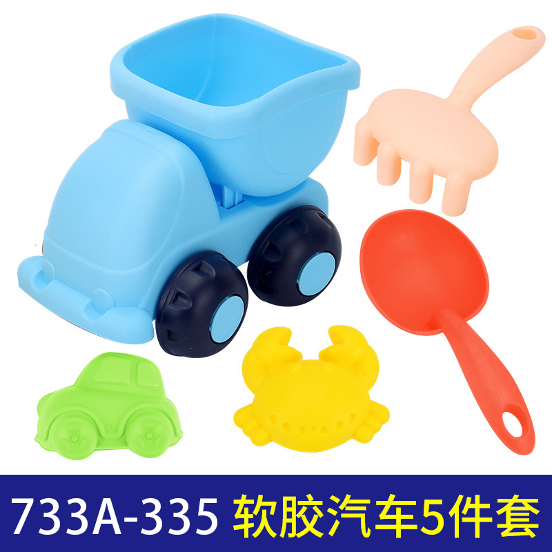 • [5 조각 세트] 부드러운 고무 분말 자동차 해변 세트