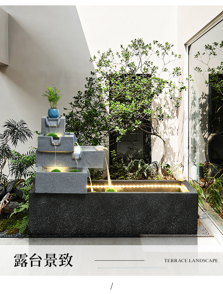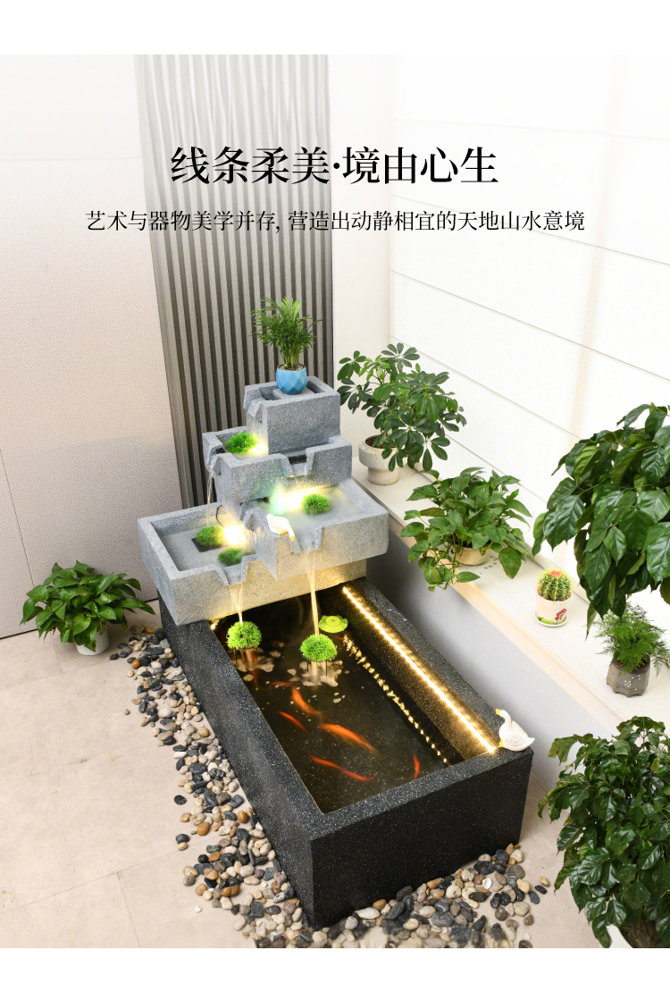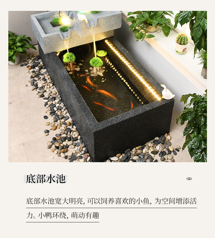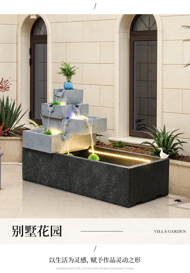 창조적 인 유럽 스타일의 간단한 흐르는 물 분수 장식 거실 현대 재산 풍경 야외 안뜰 물고기 연못 머리카락의 세대