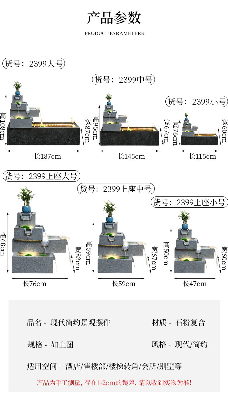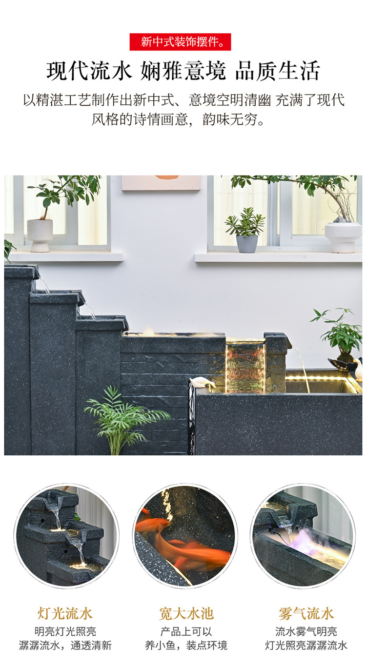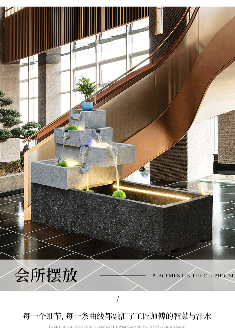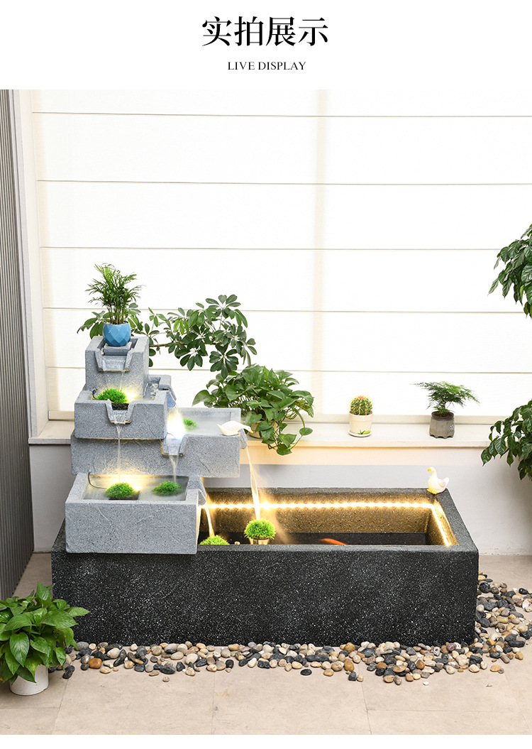 창조적 인 유럽 스타일의 간단한 흐르는 물 분수 장식 거실 현대 재산 풍경 야외 안뜰 물고기 연못 머리카락의 세대