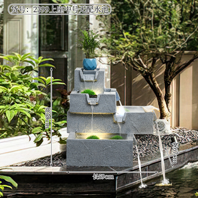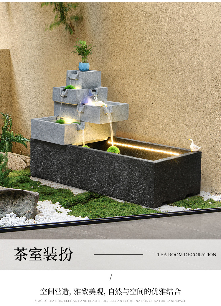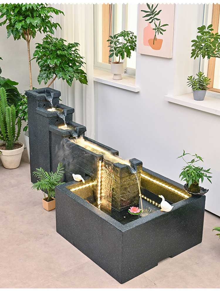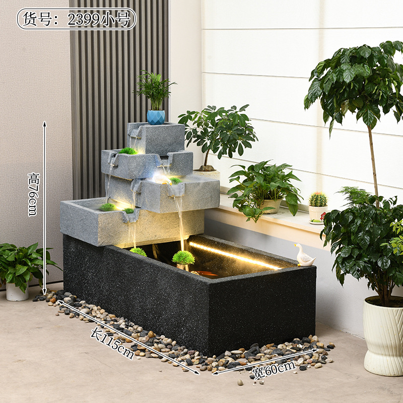 창조적 인 유럽 스타일의 간단한 흐르는 물 분수 장식 거실 현대 재산 풍경 야외 안뜰 물고기 연못 머리카락의 세대스토어 가기