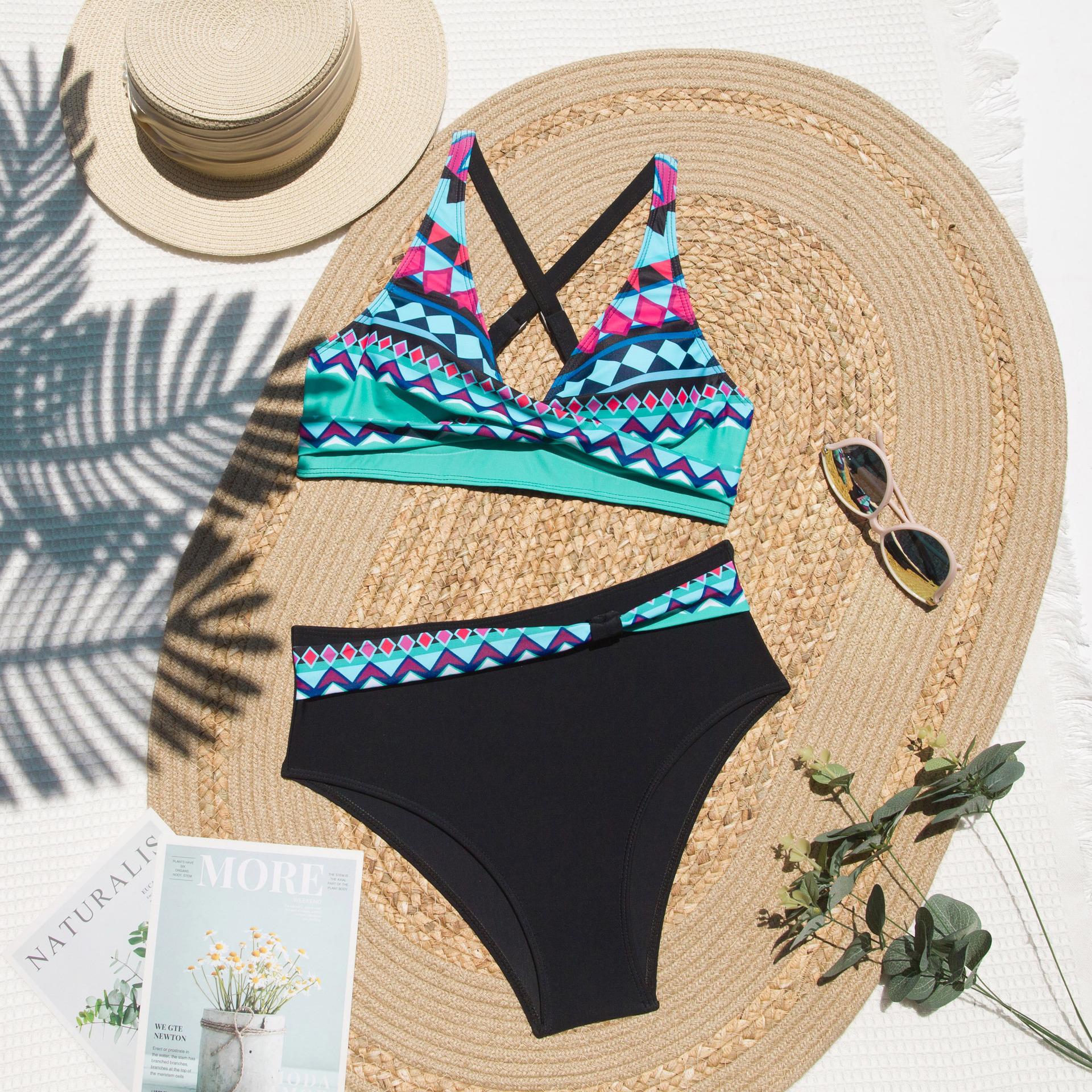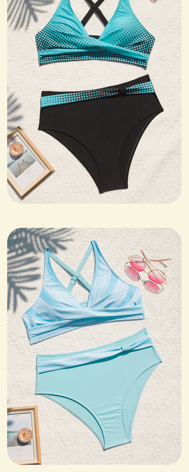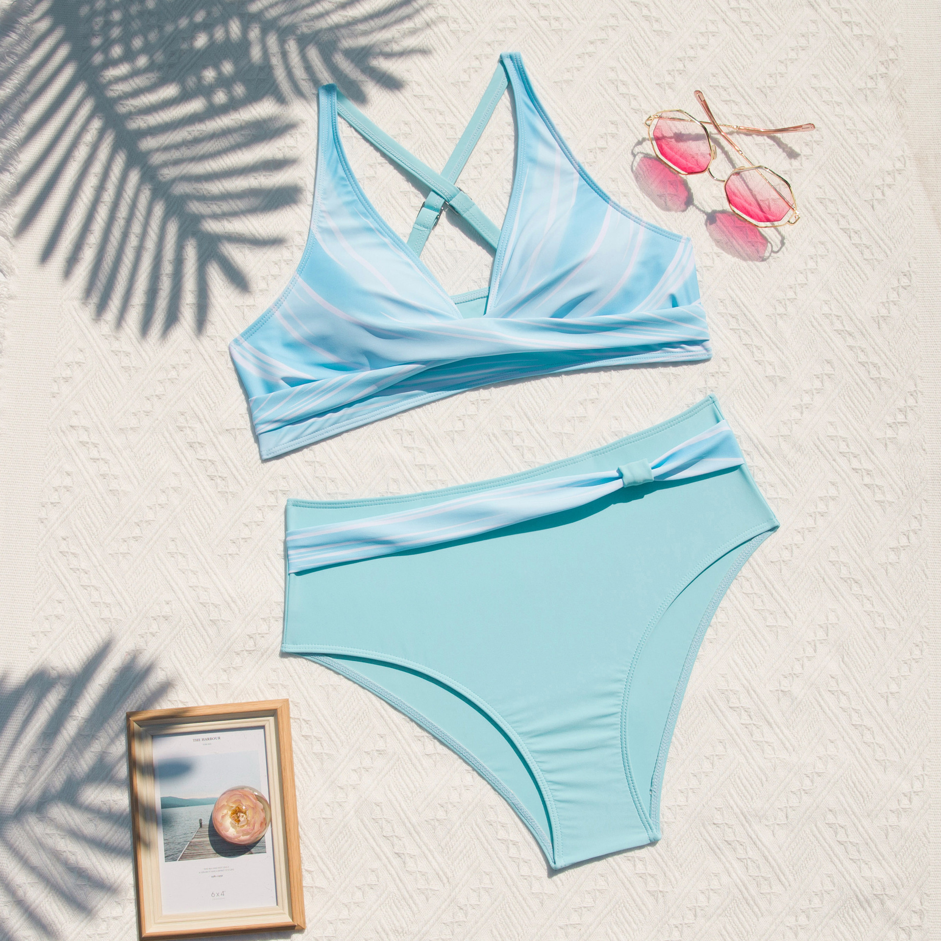 스트라이프 높은 허리 유럽과 미국의 대외 무역 멀티 컬러 비키니 섹시 크로스 보더 슬링 디자인 센스 아마존 수영복스토어 가기