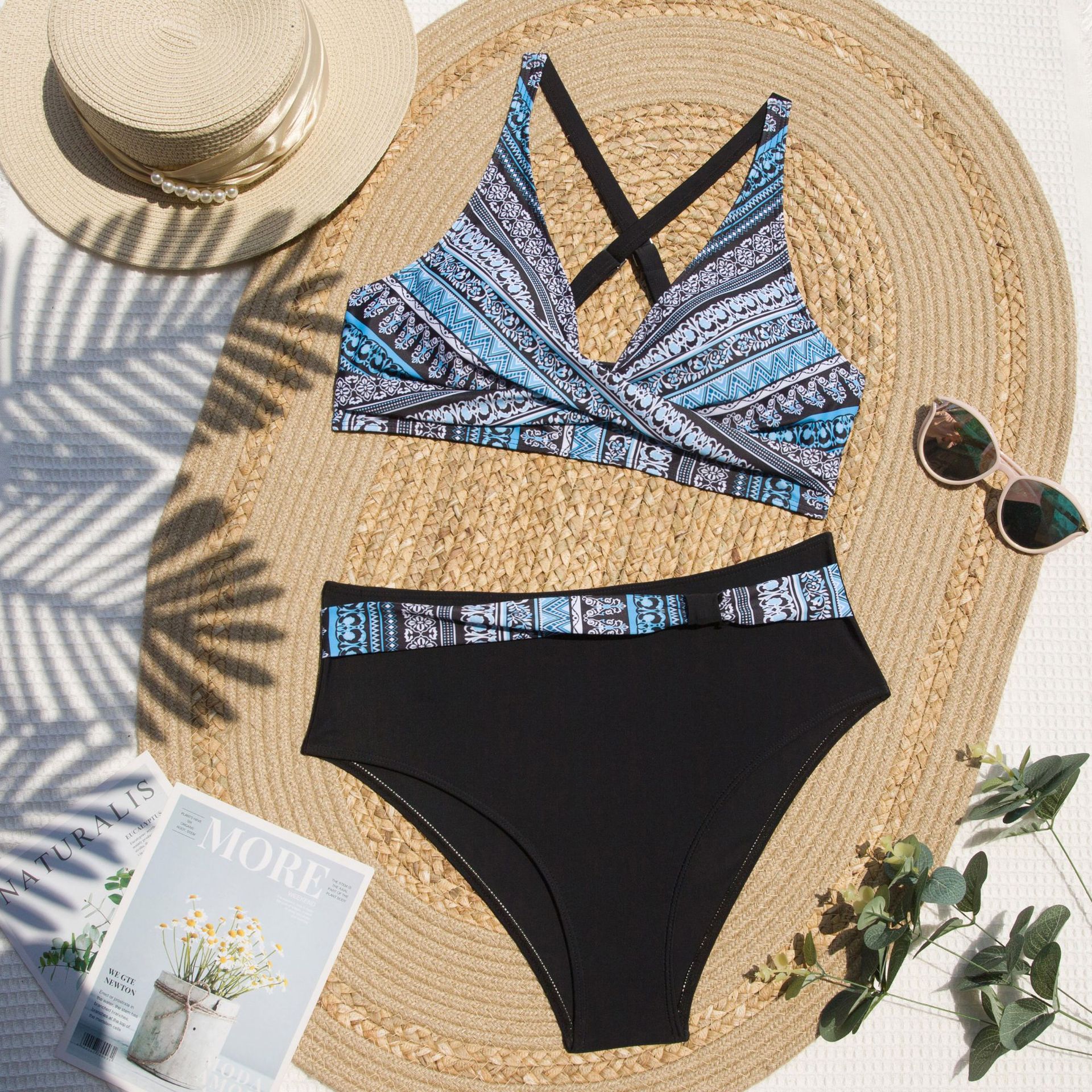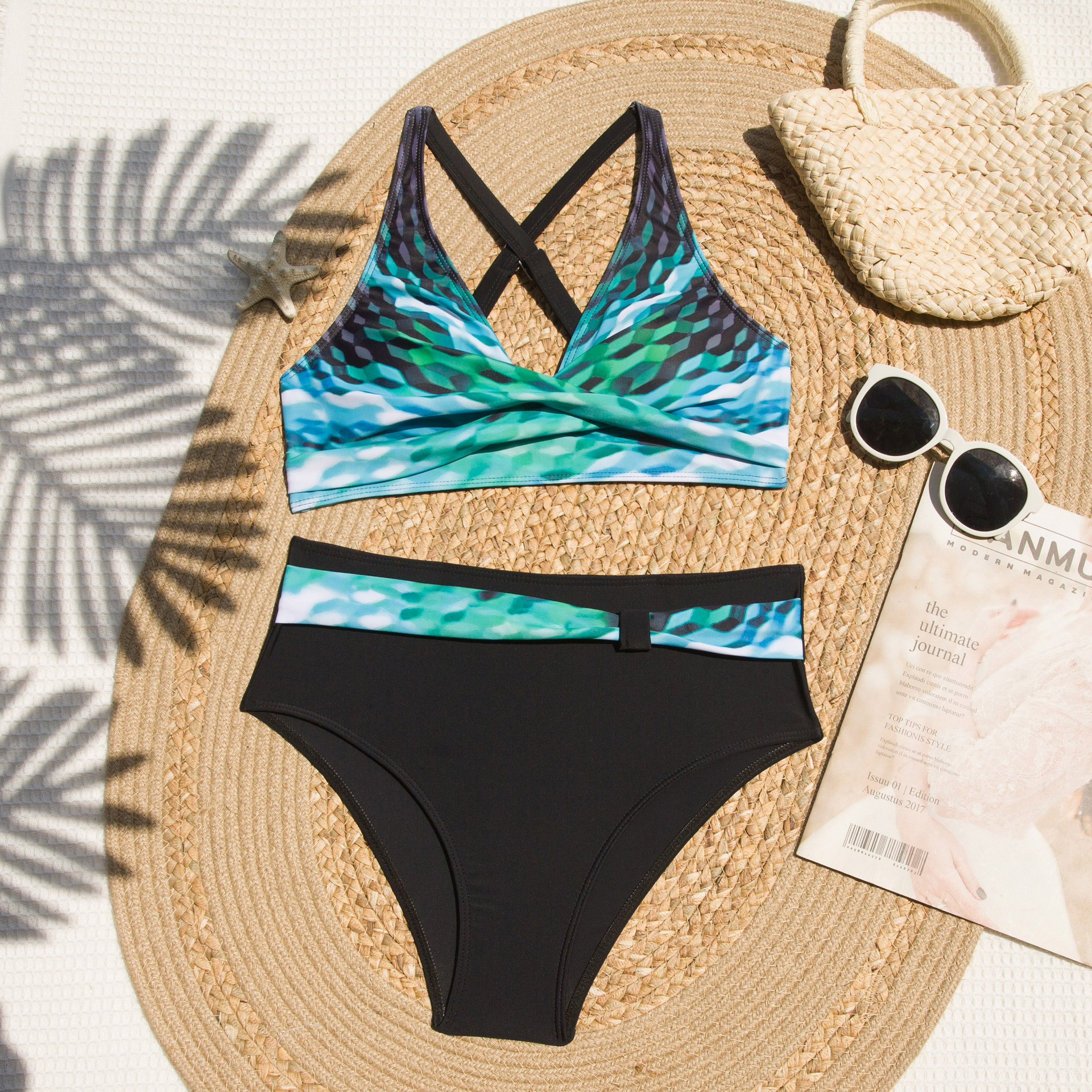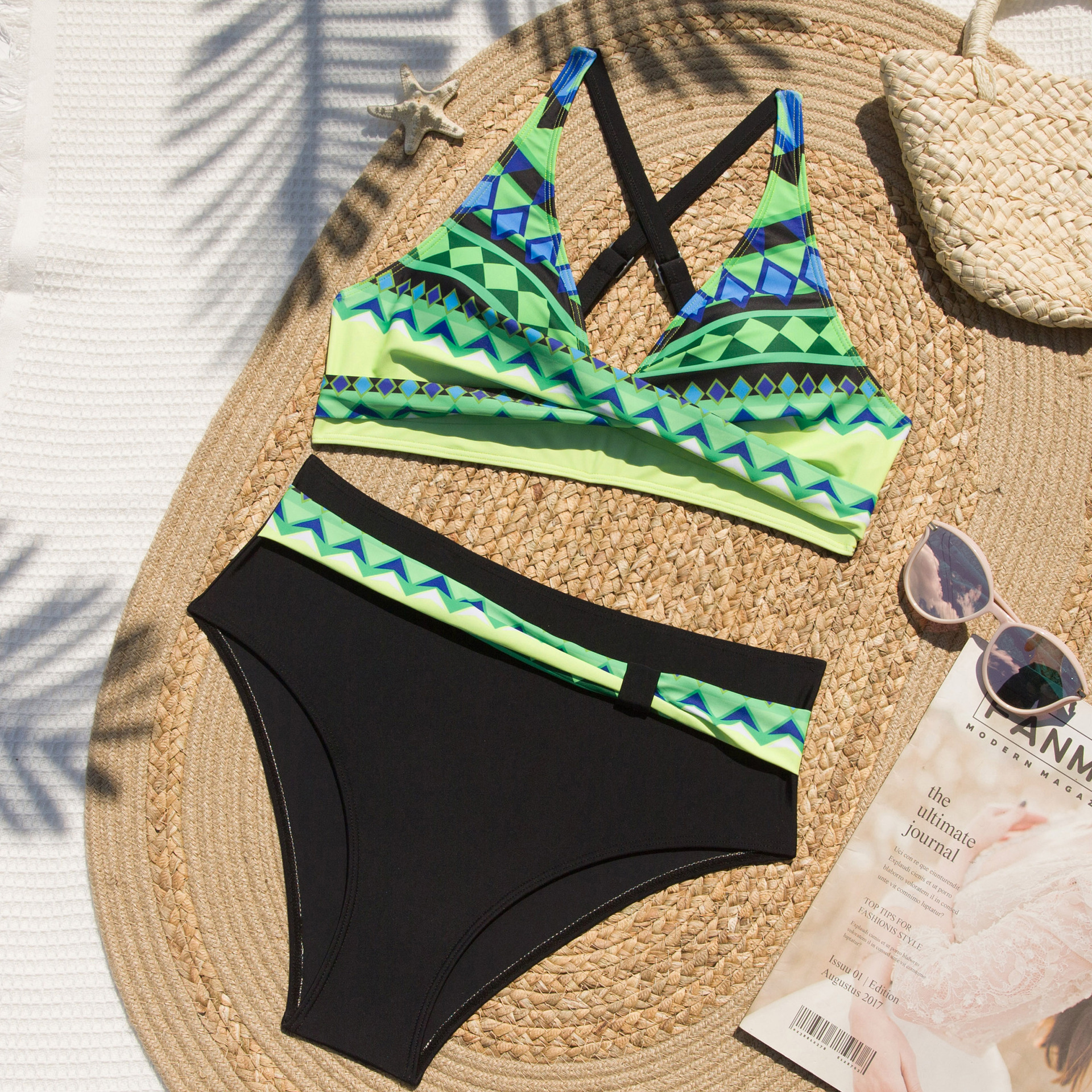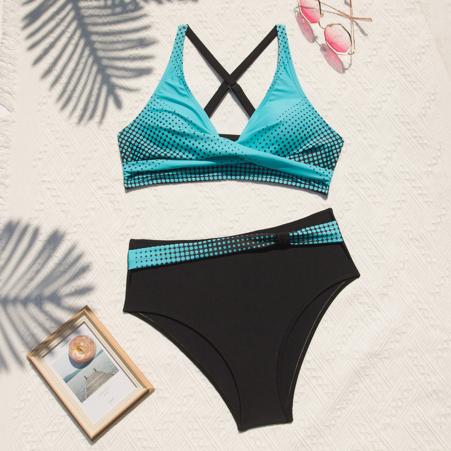 스트라이프 높은 허리 유럽과 미국의 대외 무역 멀티 컬러 비키니 섹시 크로스 보더 슬링 디자인 센스 아마존 수영복스토어 가기