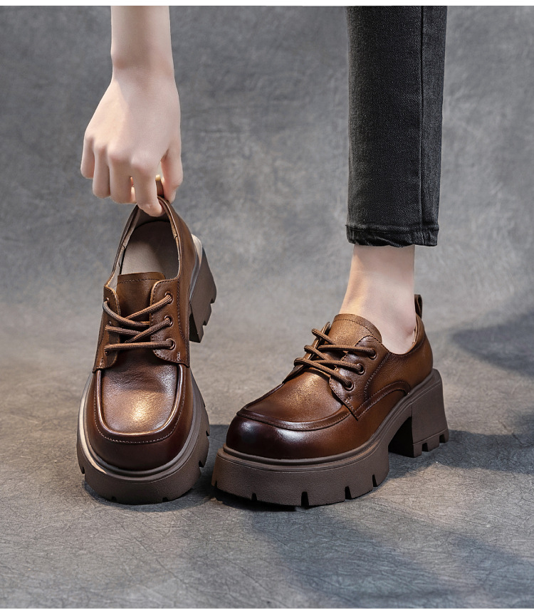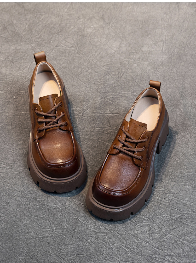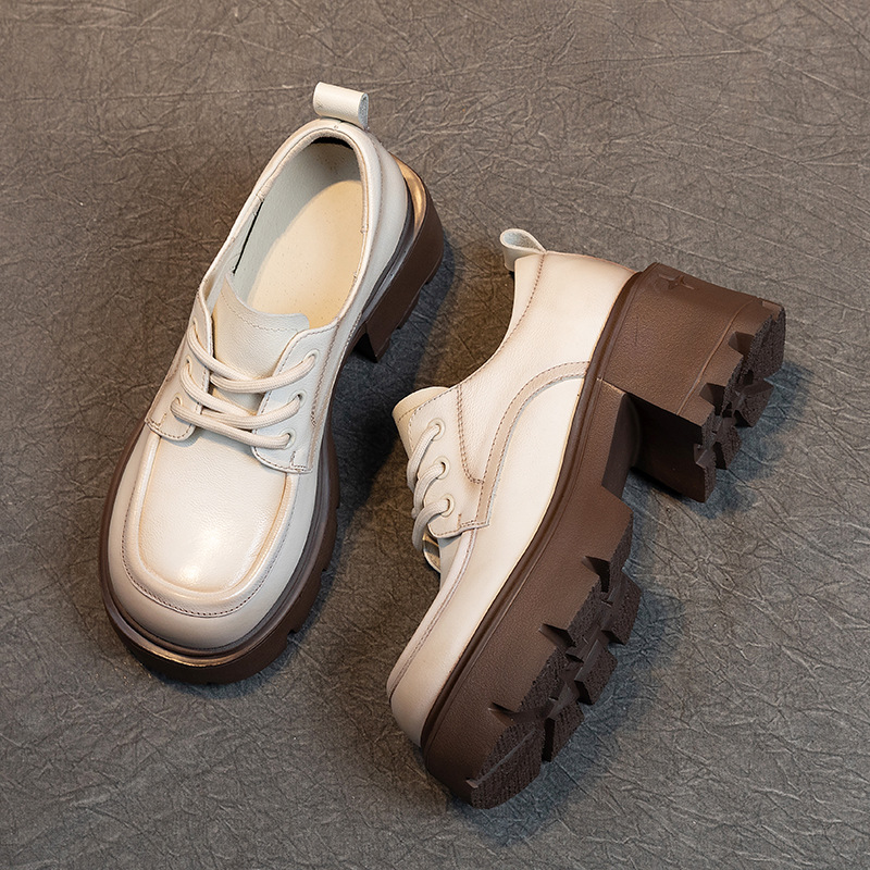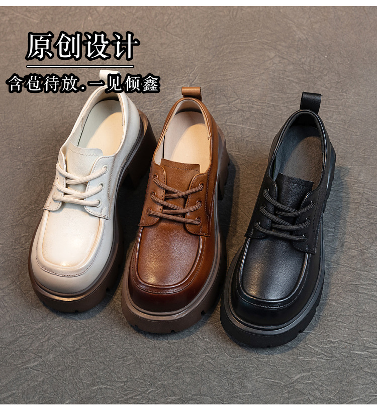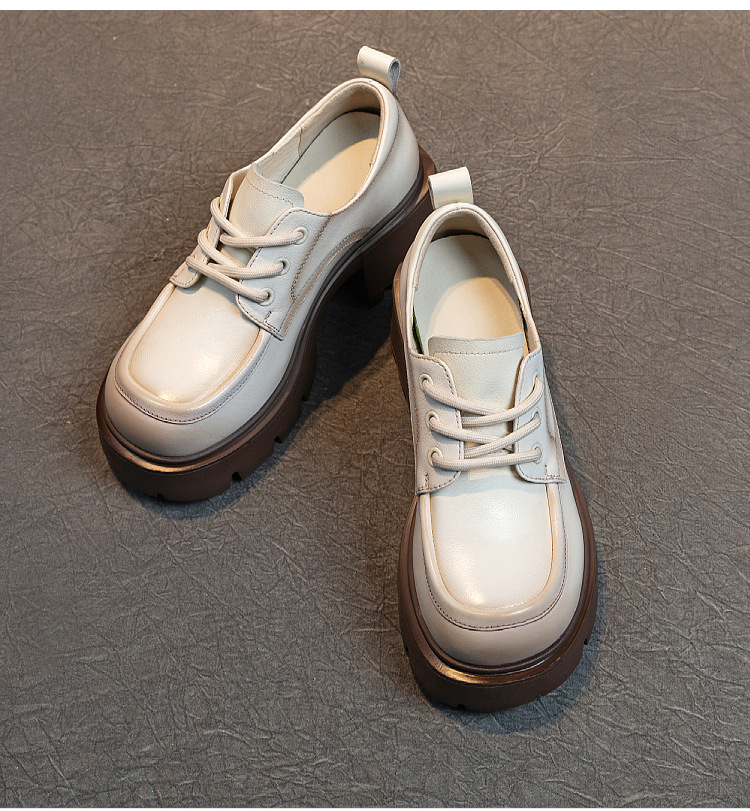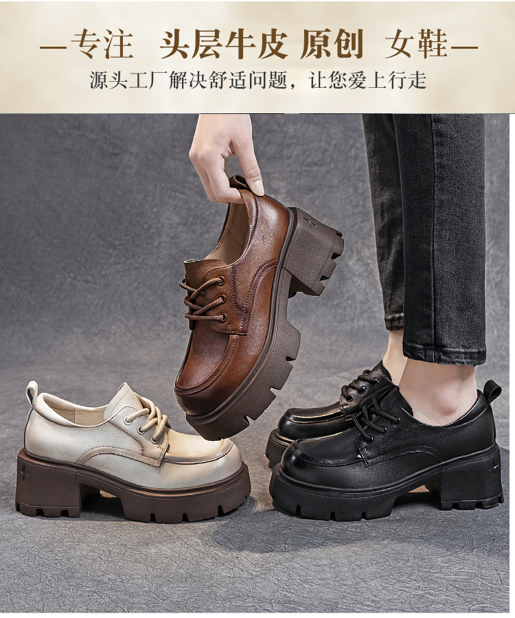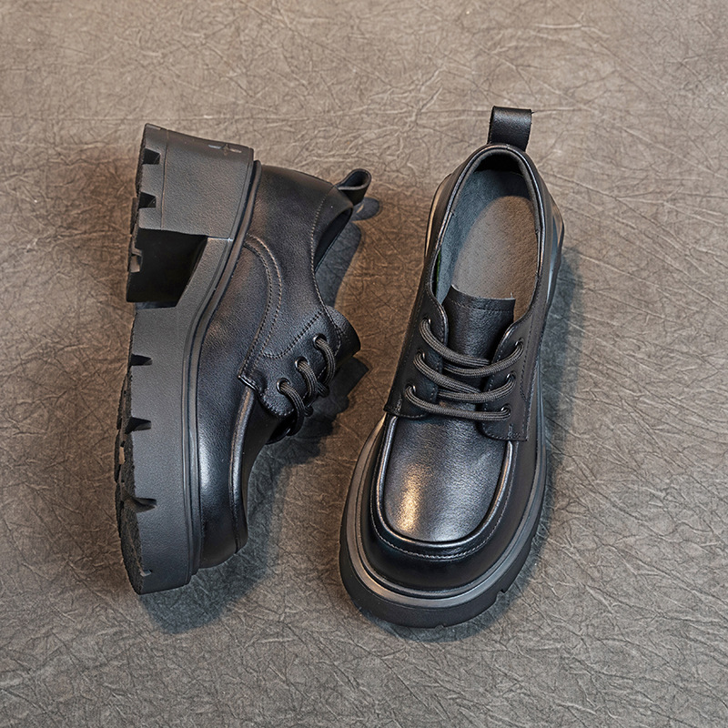 여성용 1층 소가죽 로퍼, 2025년 봄 가을 신상, 천연 가죽 플랫폼 두꺼운 밑창, 레이스업 캐주얼 여성화스토어 가기