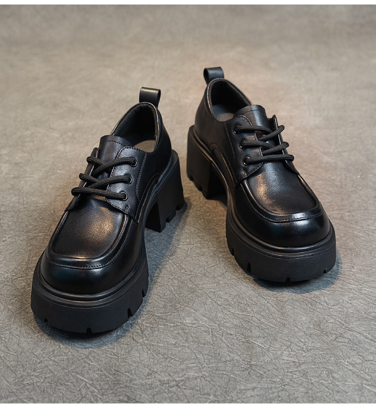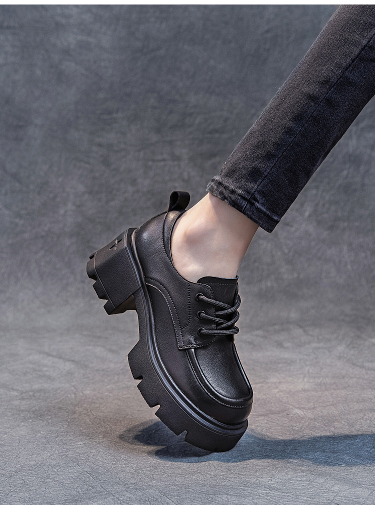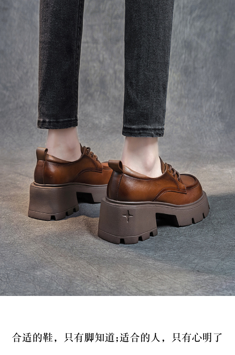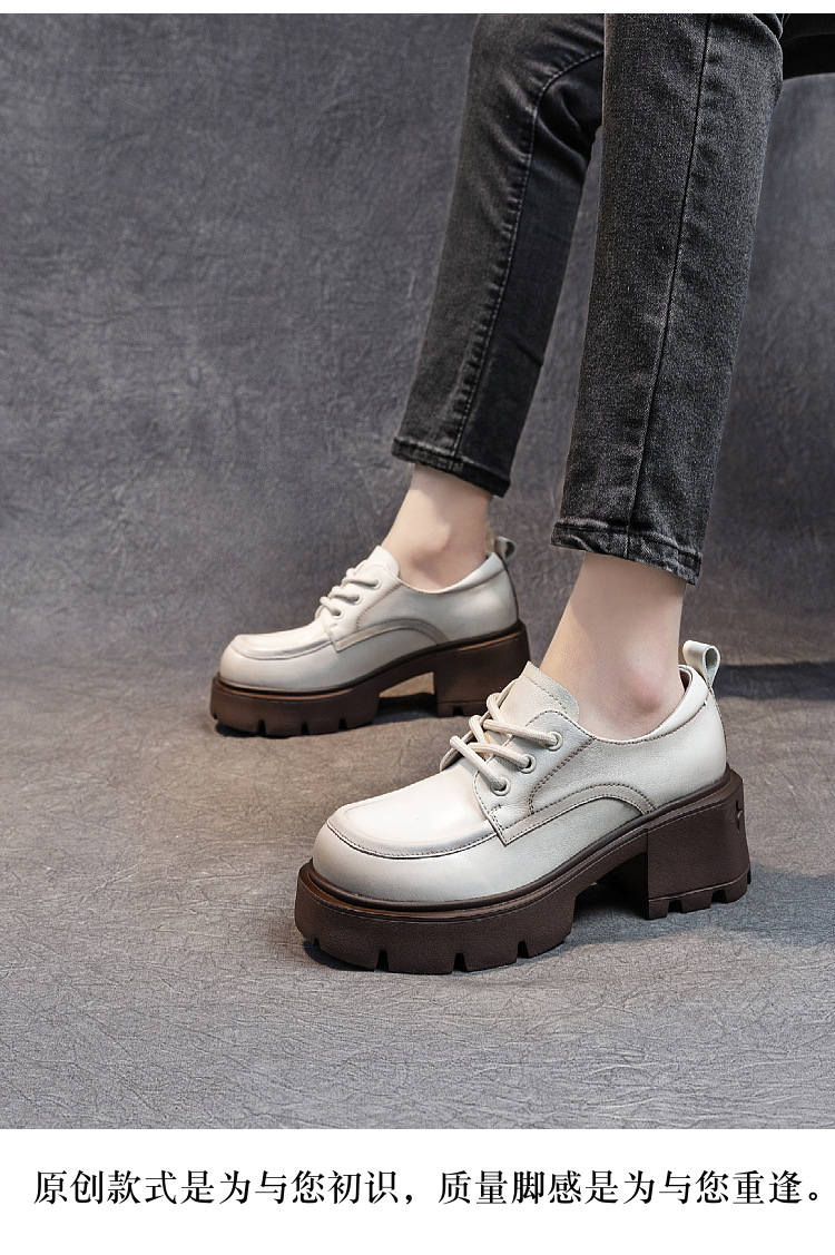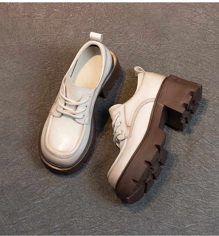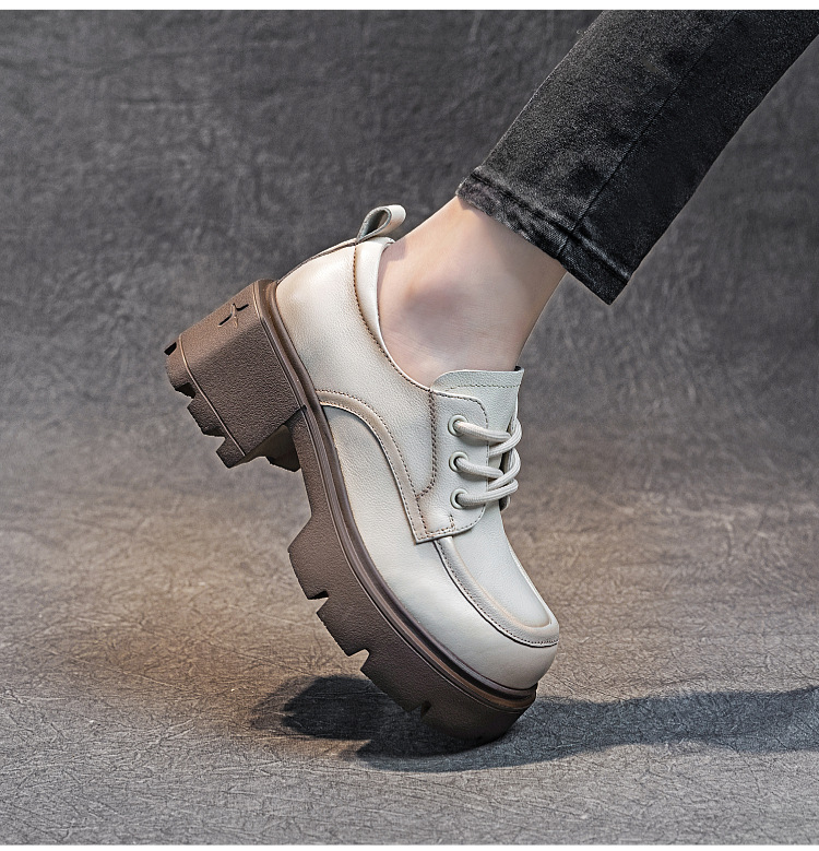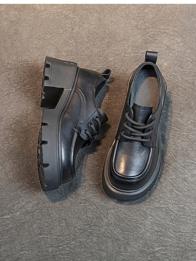여성용 1층 소가죽 로퍼, 2025년 봄 가을 신상, 천연 가죽 플랫폼 두꺼운 밑창, 레이스업 캐주얼 여성화스토어 가기