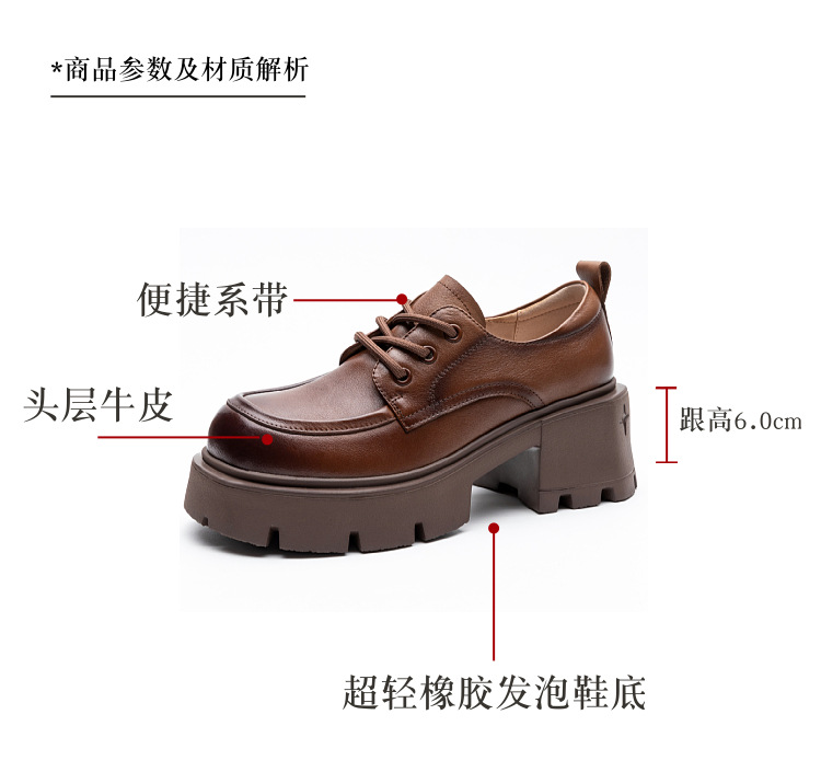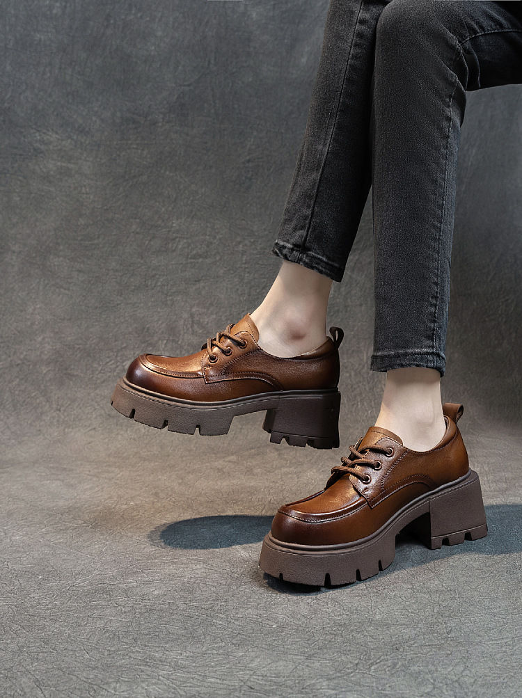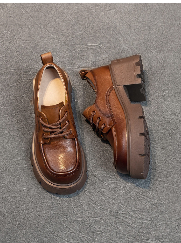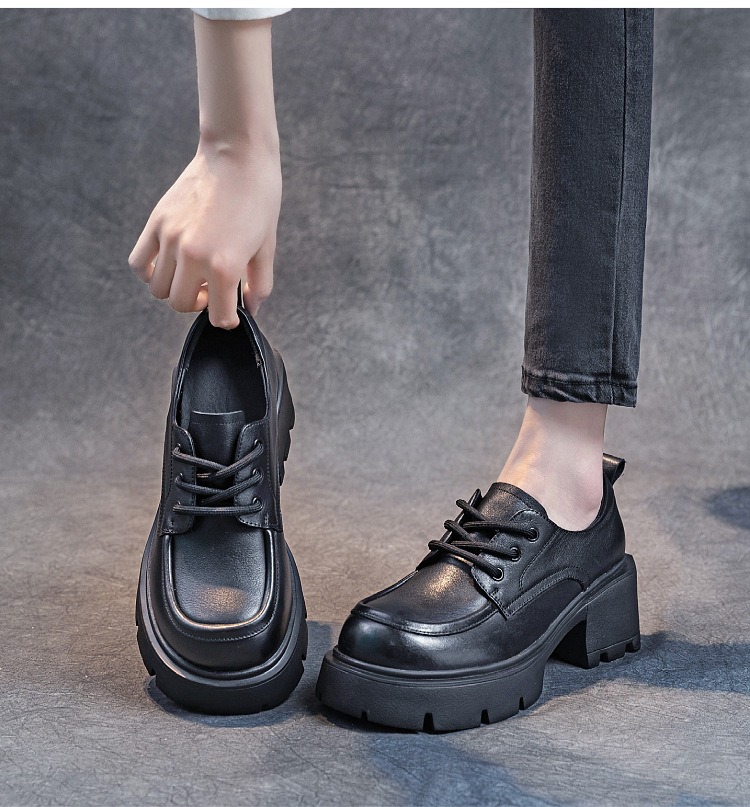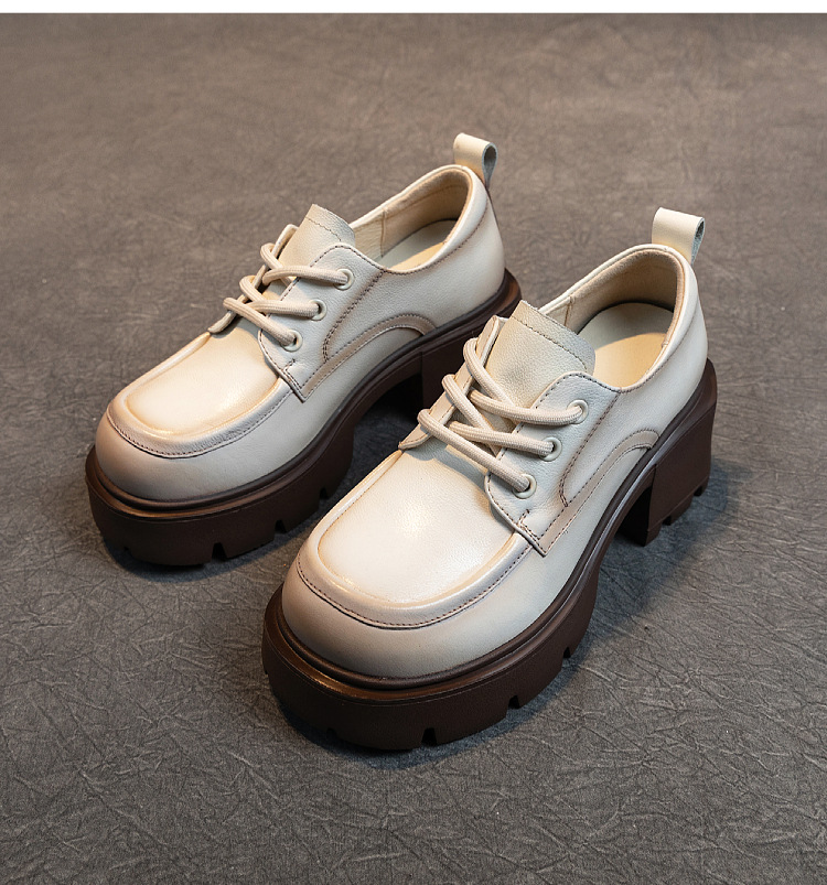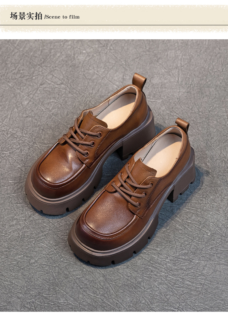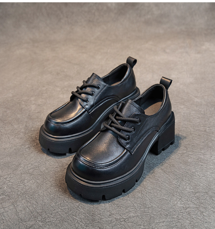 여성용 1층 소가죽 로퍼, 2025년 봄 가을 신상, 천연 가죽 플랫폼 두꺼운 밑창, 레이스업 캐주얼 여성화스토어 가기