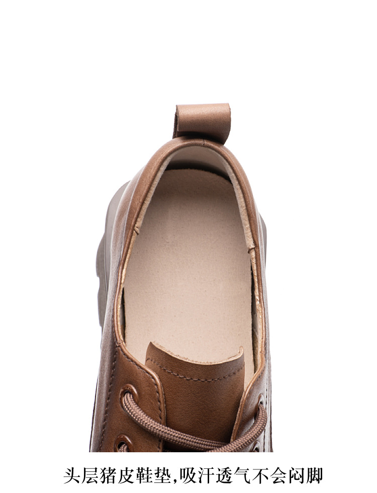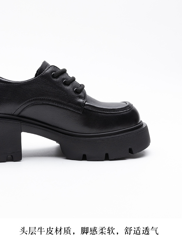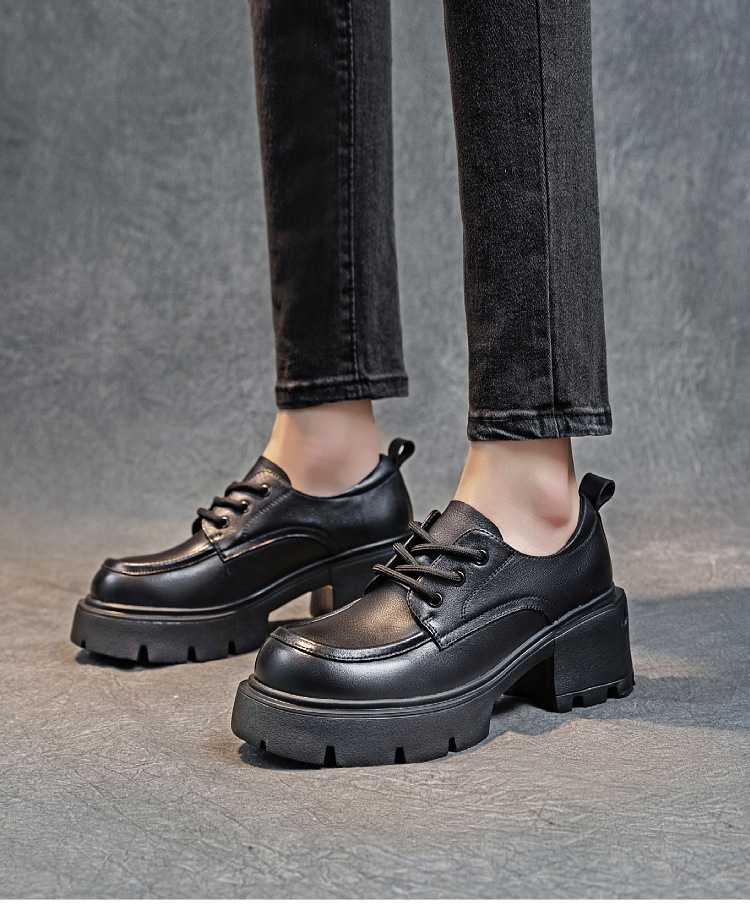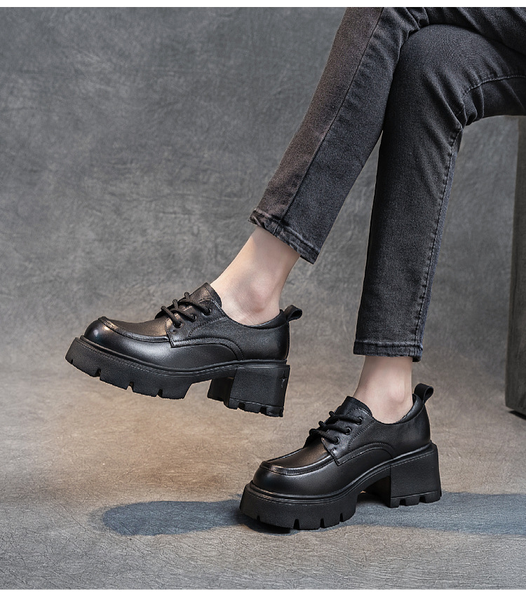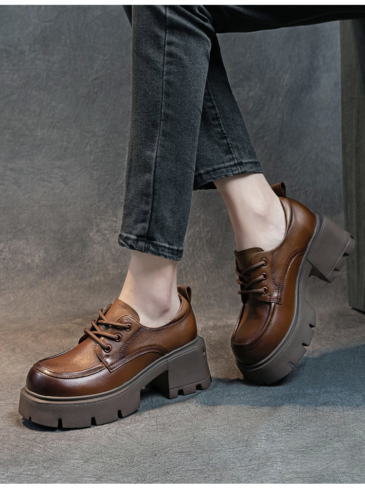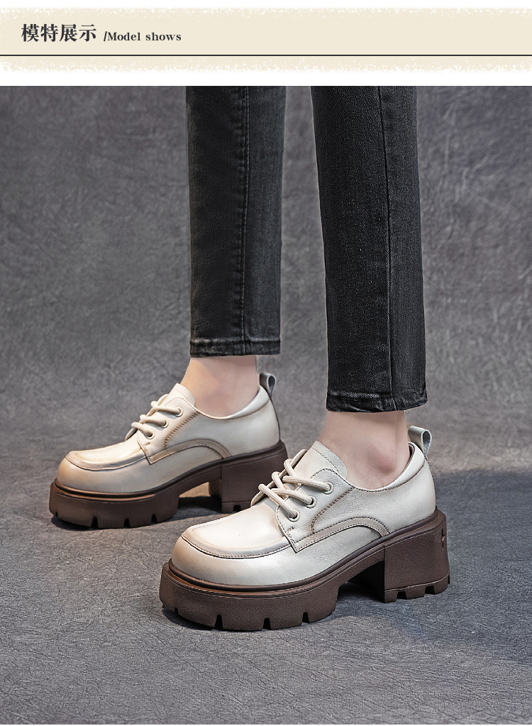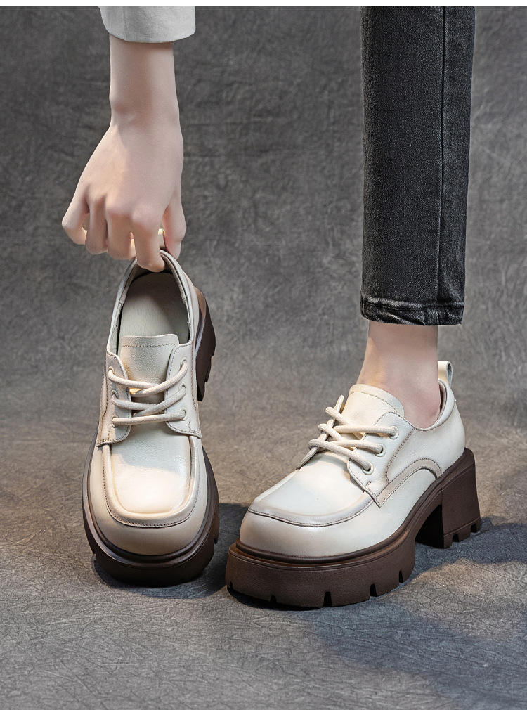 여성용 1층 소가죽 로퍼, 2025년 봄 가을 신상, 천연 가죽 플랫폼 두꺼운 밑창, 레이스업 캐주얼 여성화스토어 가기