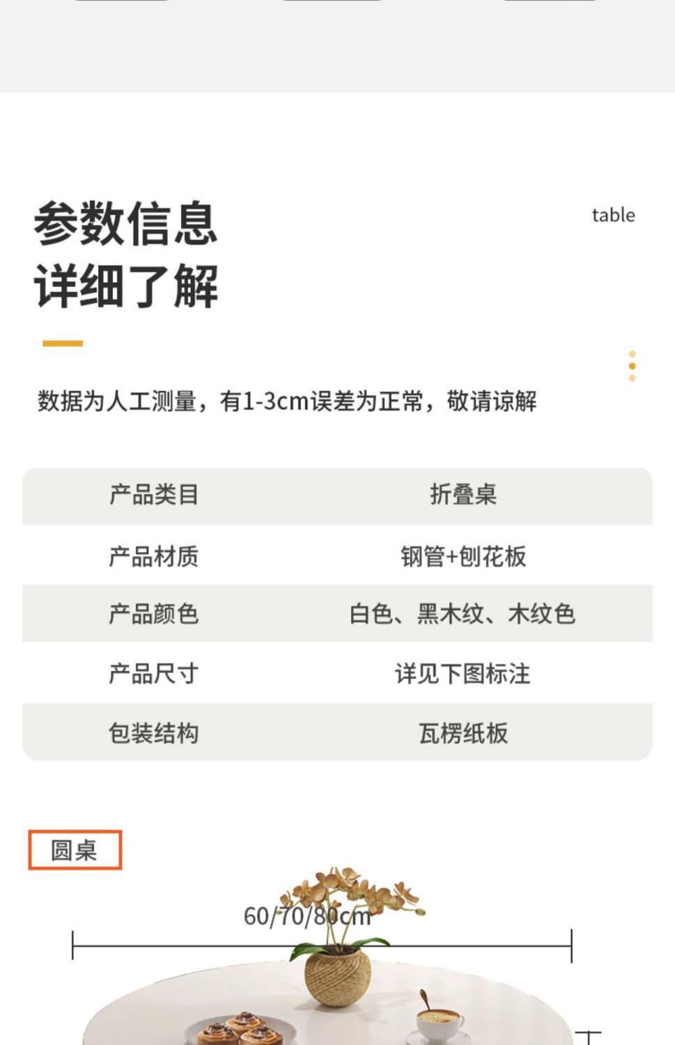 • 흰색 원형 테이블 [길이 80cm] 두꺼운 테이블 보드