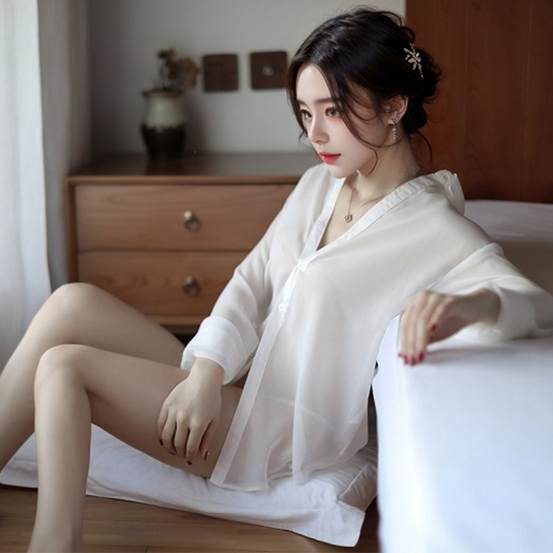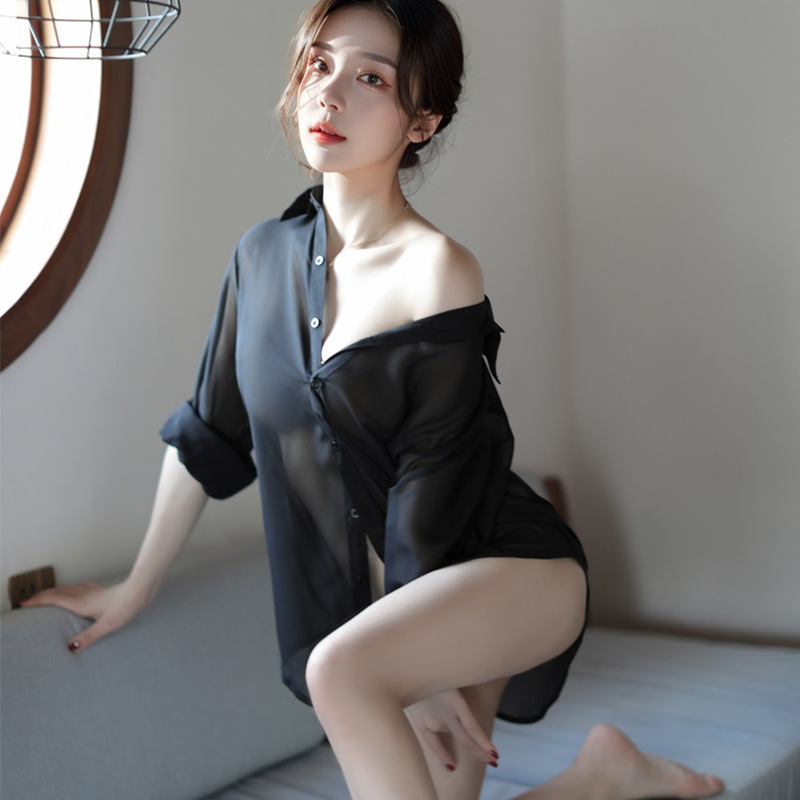 쉬폰 성인 섹시 란제리 섹시 원근감 화이트 셔츠 유니폼 유혹 홈 어깨 엉덩이 유니폼스토어 가기