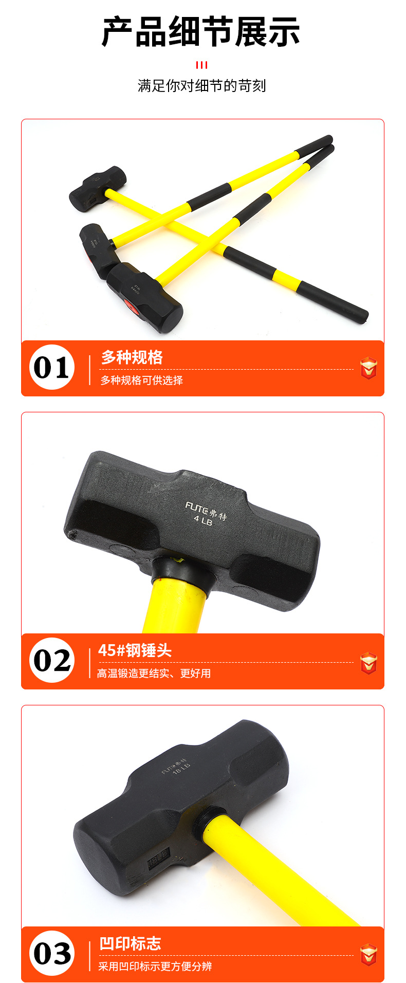 팔각형 망치 충격 방지 손잡이 중장비 폭발 방지 팔각형 망치 돌 망치 충격 방지 손잡이 철 망치