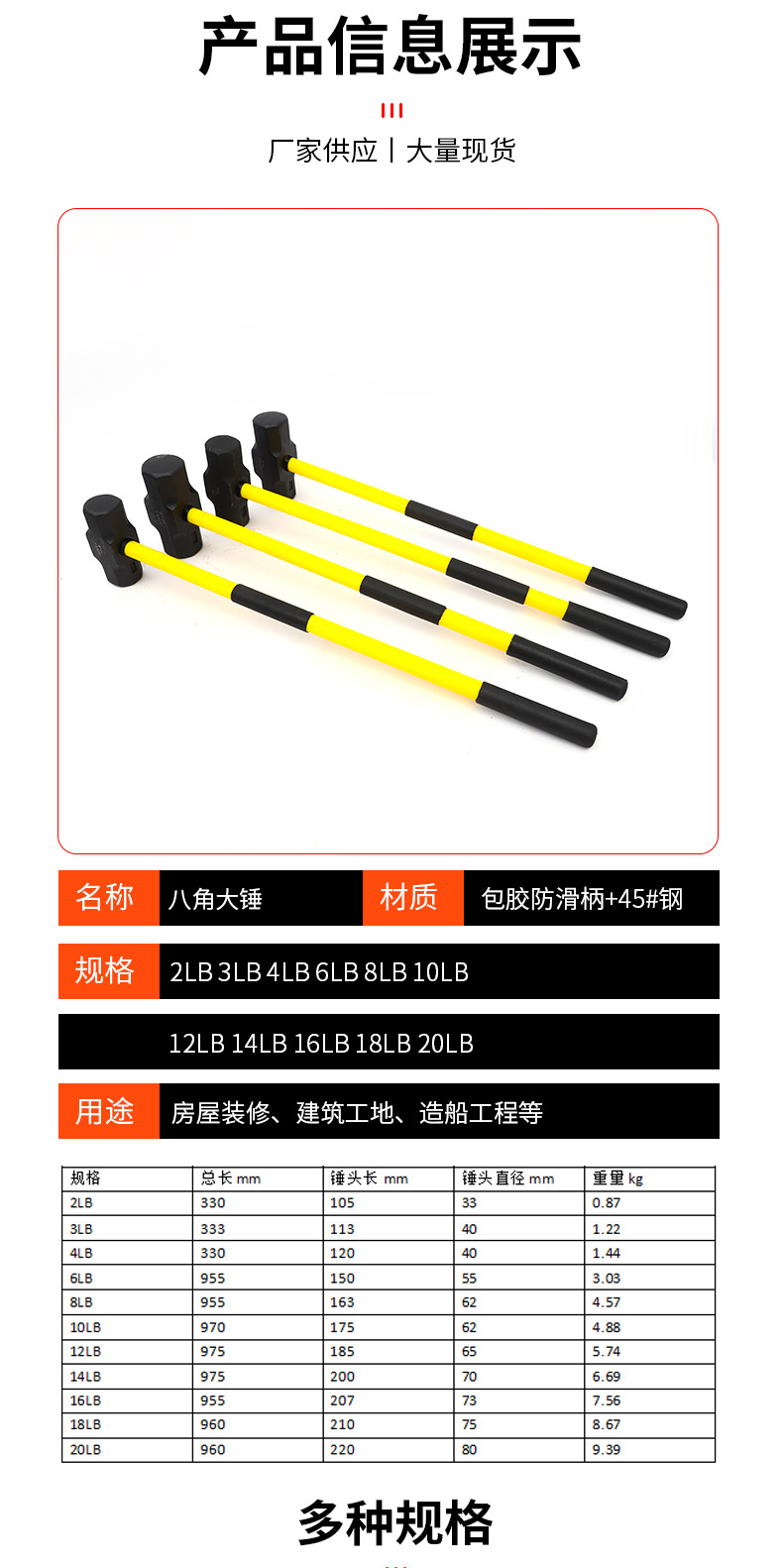 팔각형 망치 충격 방지 손잡이 중장비 폭발 방지 팔각형 망치 돌 망치 충격 방지 손잡이 철 망치스토어 가기