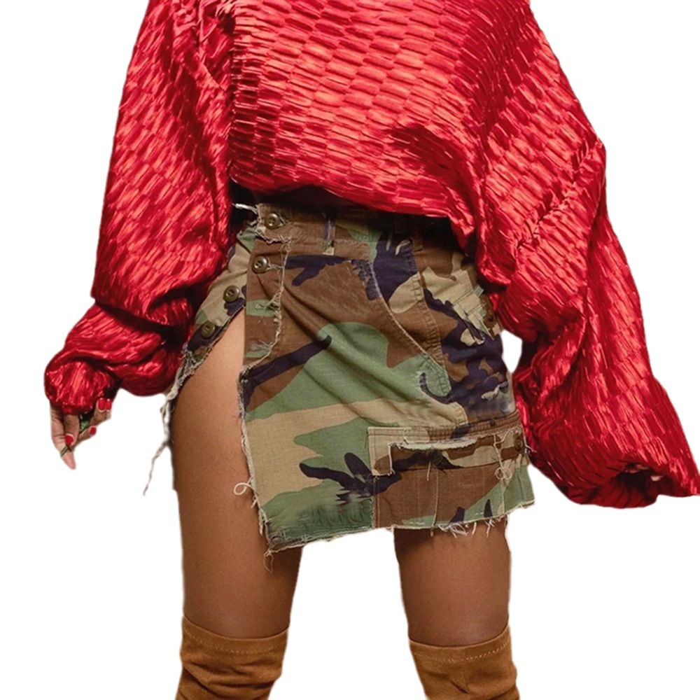 새로운 국경 유럽 및 미국 여성의 섹시한 뜨거운 소녀 멀티 포켓 위장 인쇄 면화 분할 스커트 미니 스커트 여성