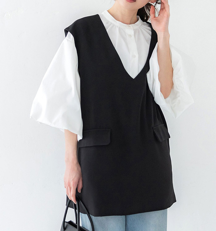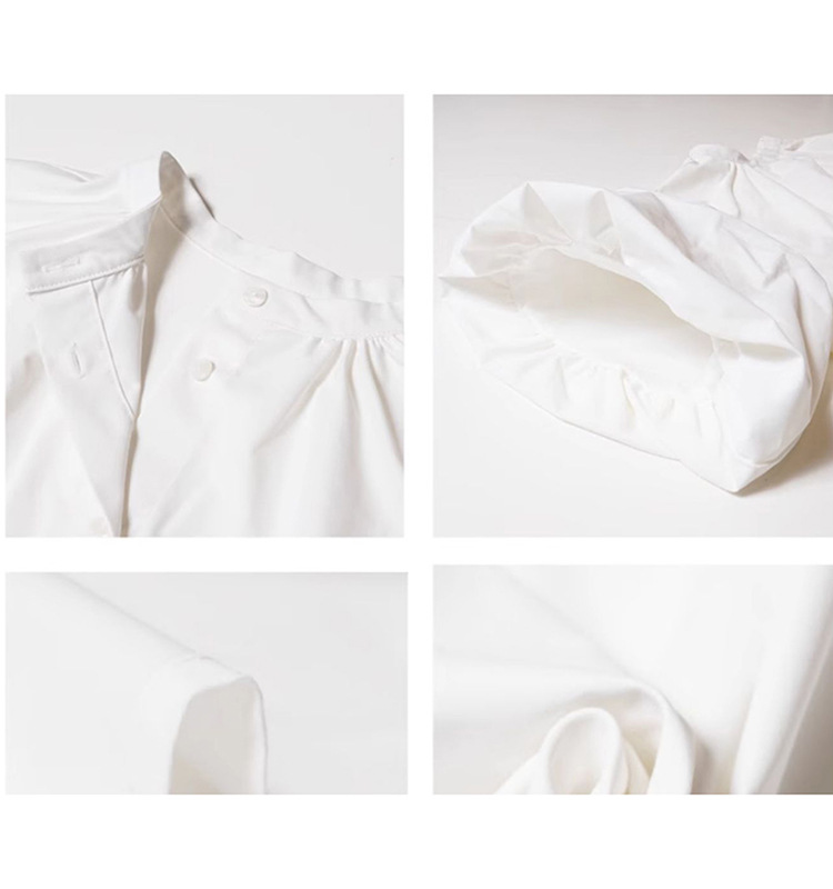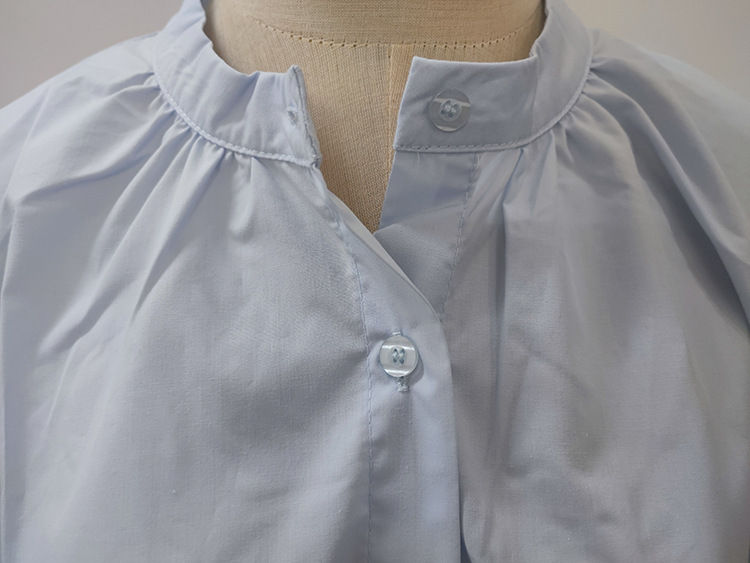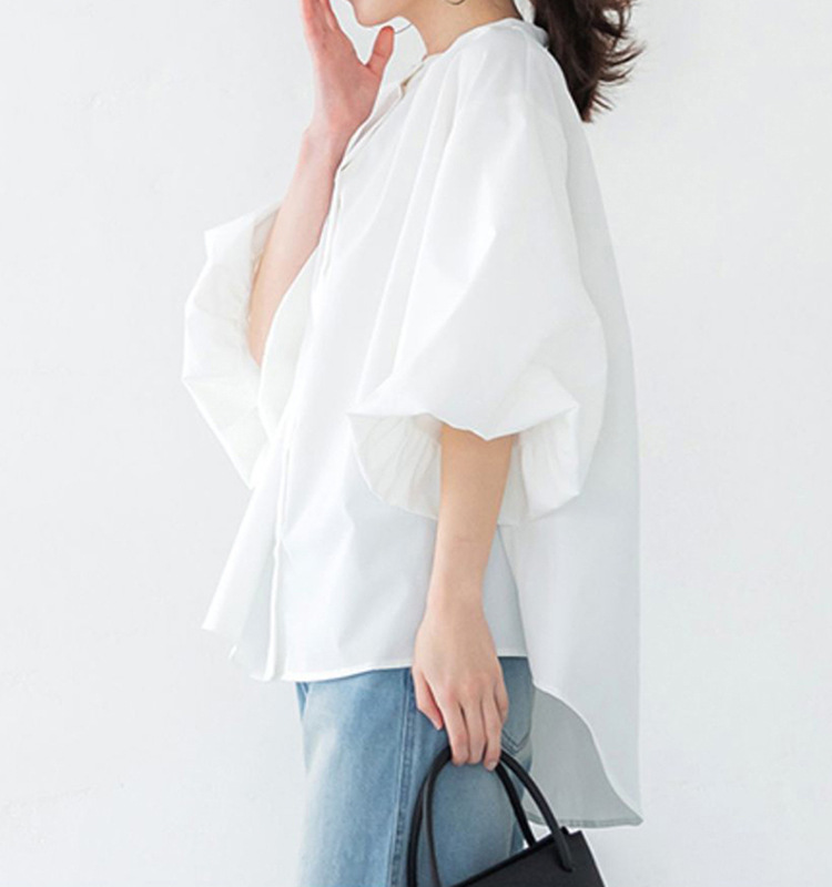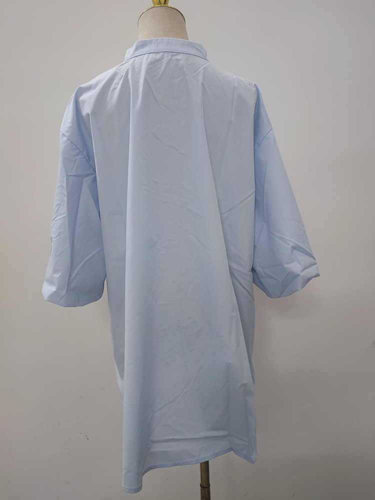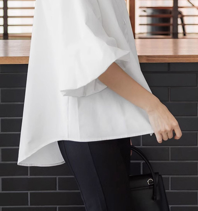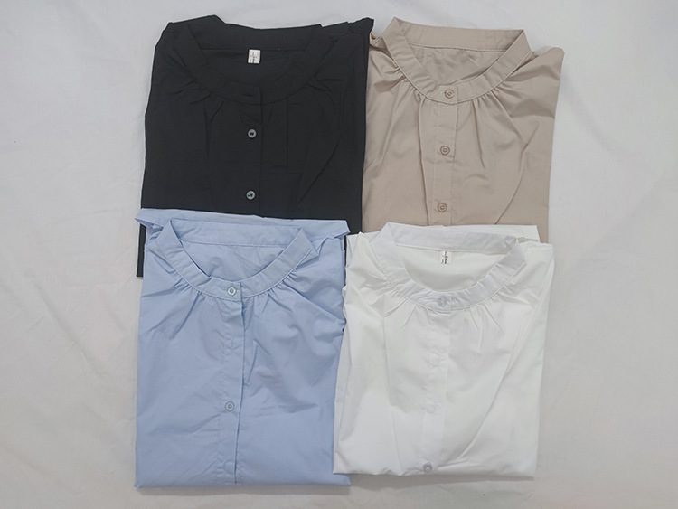 일본과 한국 스타일 여름 간단한 느슨한 슬림 룩 하프 하이 칼라 세븐 포인트 소매 단색 풀오버 시폰 셔츠 탑