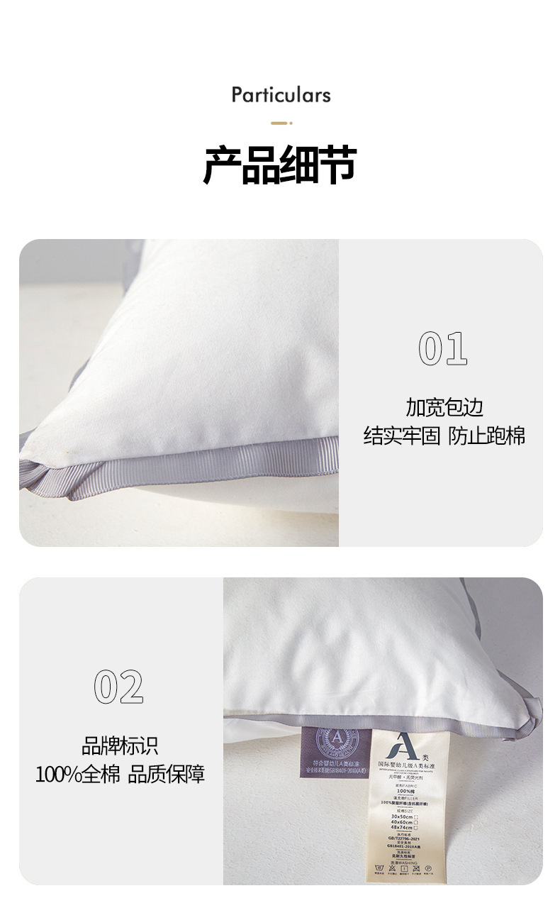 순면 A급 부모-자녀 호텔 베개 가정용 어린이 학생 성인용 초부드러운 베개 베개심 도매 및 배송