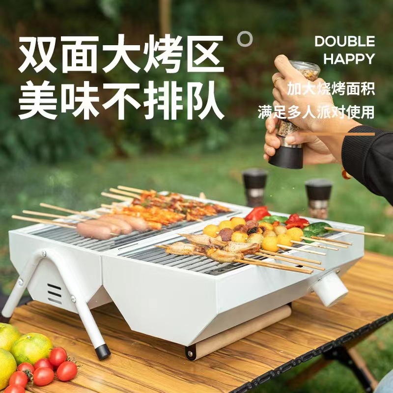 새로운 팔각형 굴뚝 스토브 야외 편리한 탄소 그릴 가정용 휴대용 양면 바베큐 그릴 바베큐 그릴
