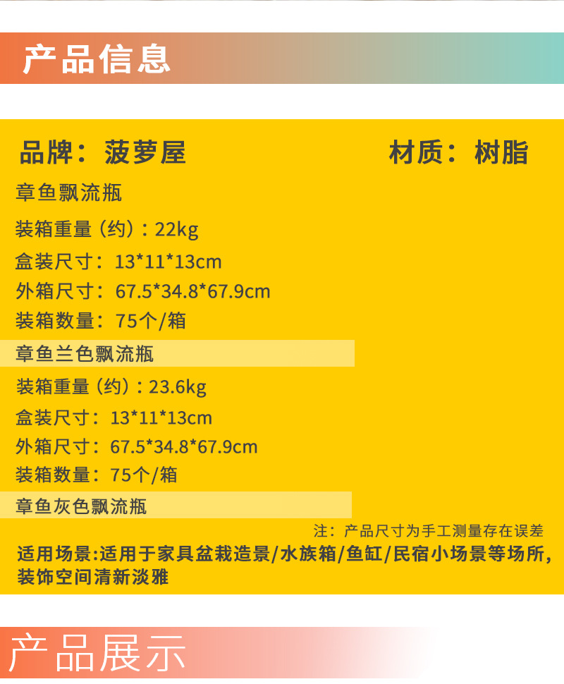 폭발하는 초라한 문어 회색 펄럭이는 병 물고기 탱크 장식품 수족관 수지 보석 물고기와 새우 회피 하우스 재고스토어 가기