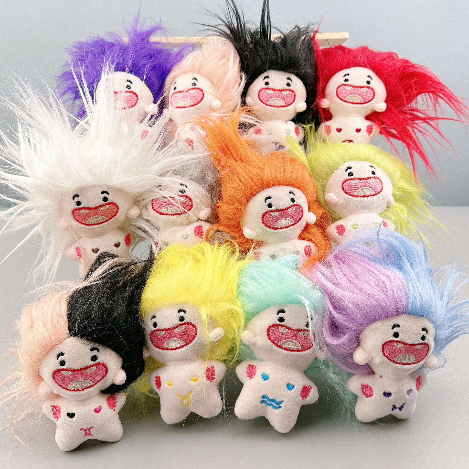 동요 톤 귀여운 폭발 면 인형 재미 이빨 인형 12 별자리 인형 펜던트 키 체인