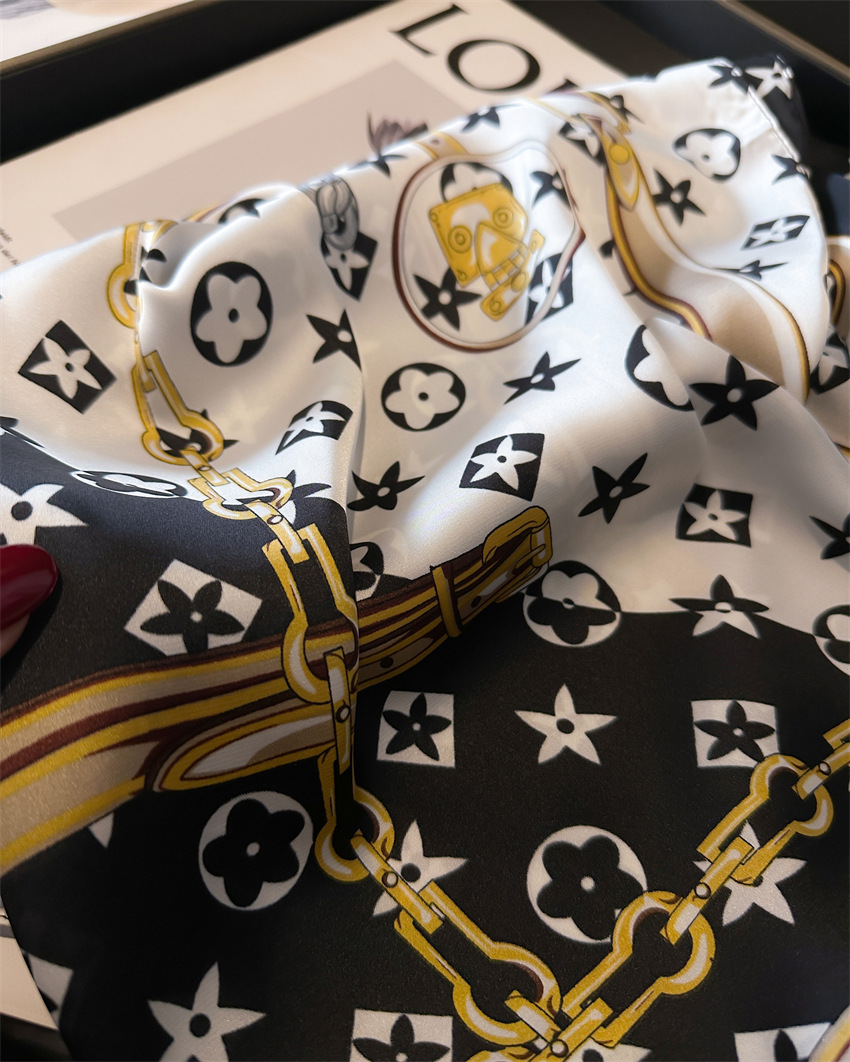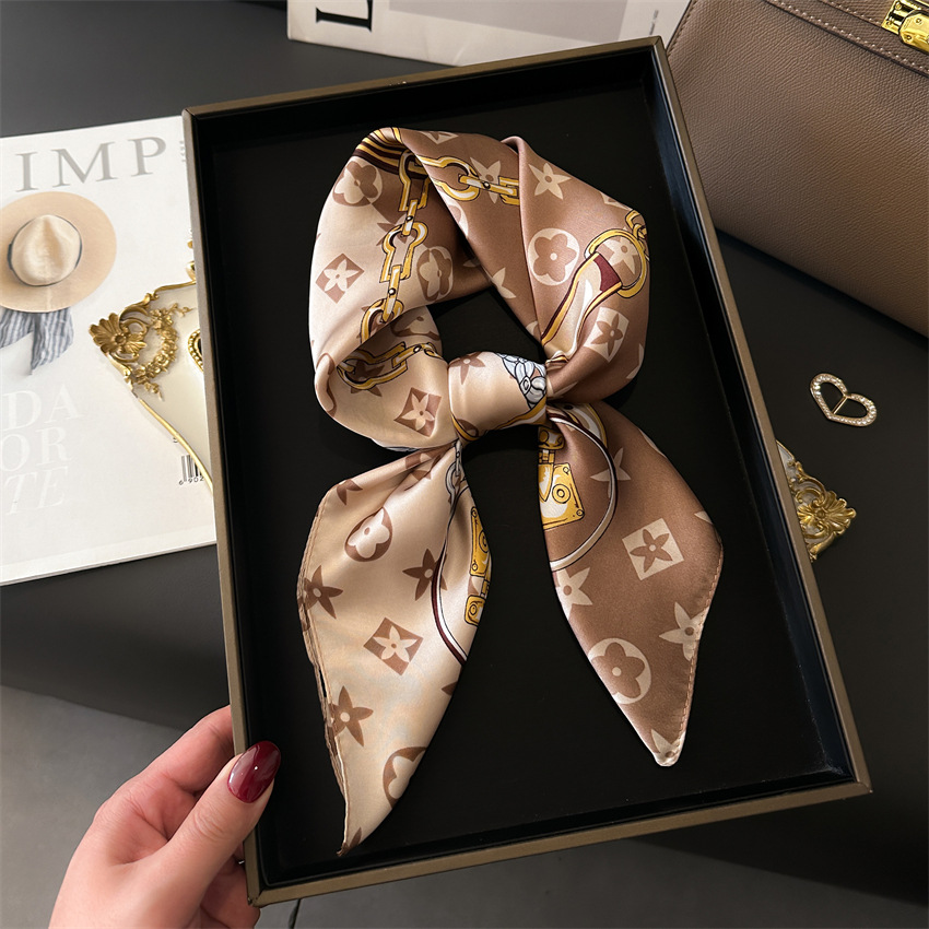 여성용 고급 실크 스카프, 럭셔리 배색, 스타일리시하고 다용도, 목 보호, 자외선 차단 숄, 인조 실크 스카프 70cm스토어 가기