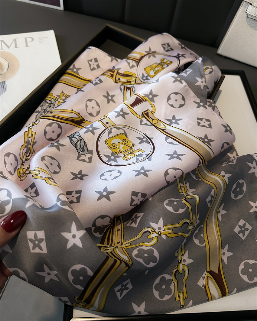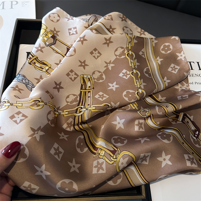 여성용 고급 실크 스카프, 럭셔리 배색, 스타일리시하고 다용도, 목 보호, 자외선 차단 숄, 인조 실크 스카프 70cm