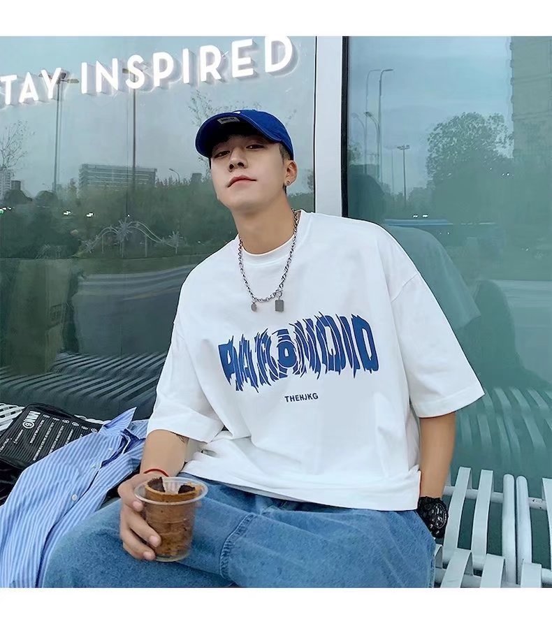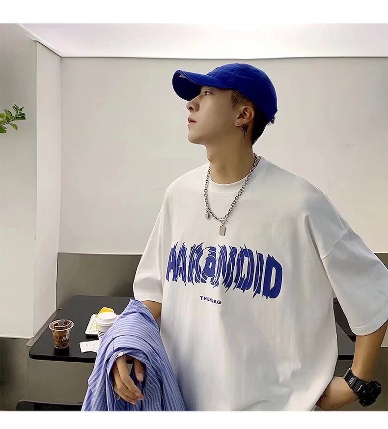 반팔 티셔츠 남성용 패션 브랜드 루즈 올 매치 라운드 넥 탑 여름 새 편지 인쇄 커플 반소매 유행
