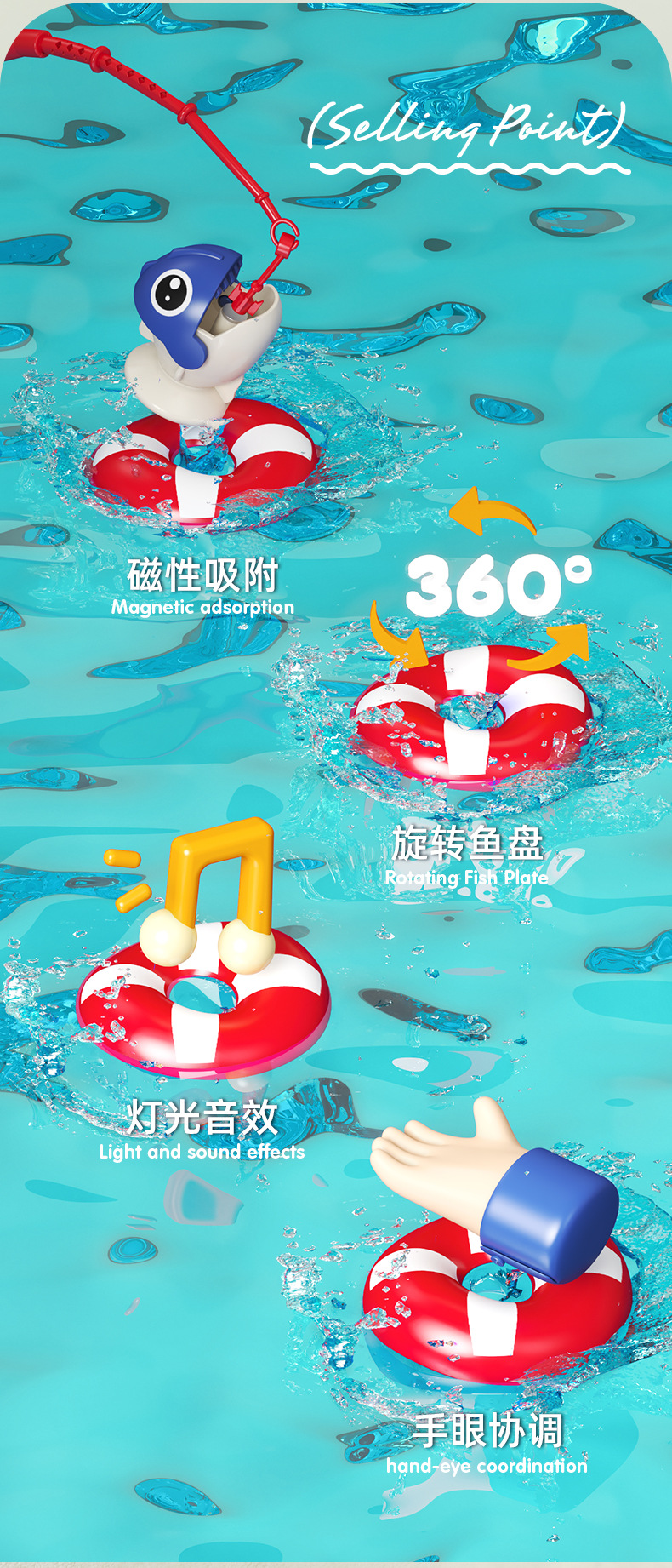 产品为电商邮购盒包装,内含电池螺丝刀,2鱼竿,15条鱼