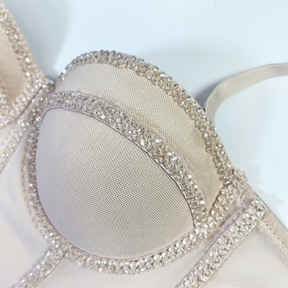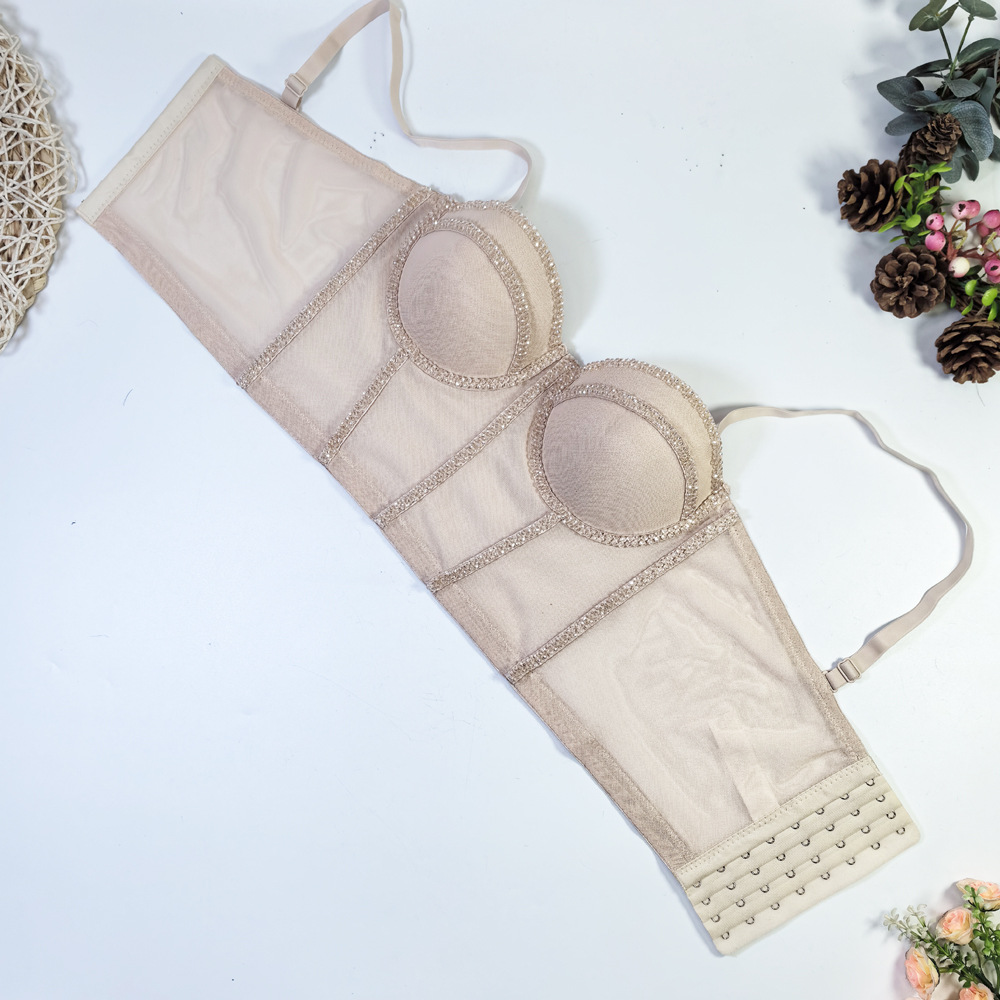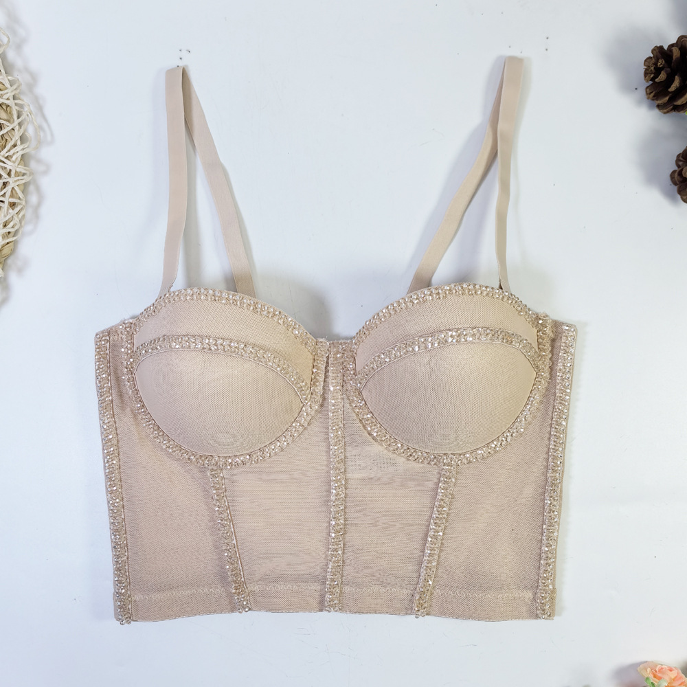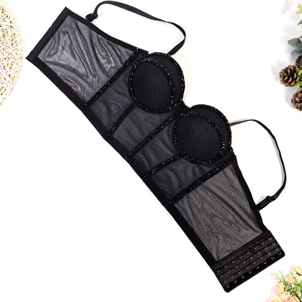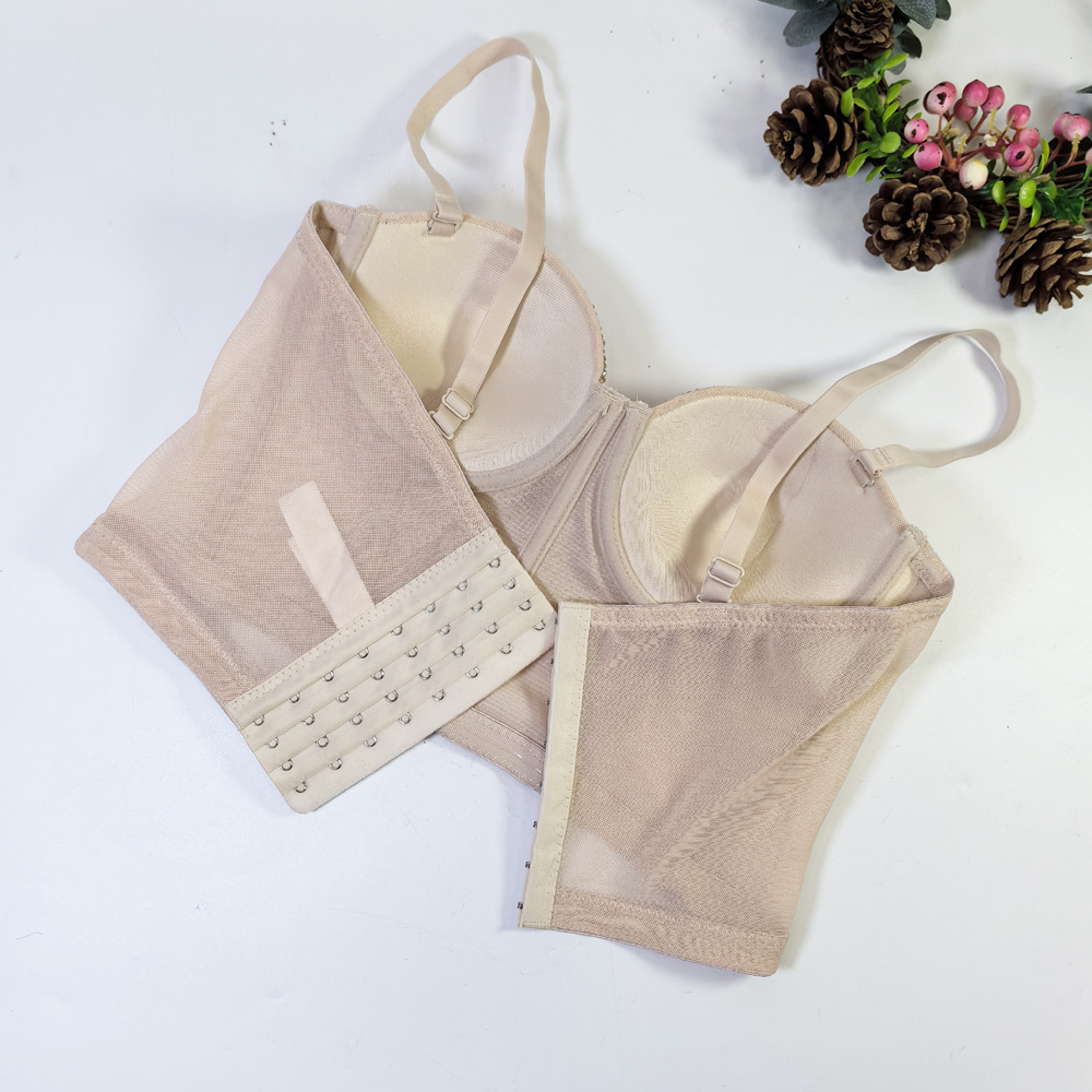 유럽과 미국의 국경 간 아마존 AliExpress 섹시 비즈 메쉬 브라 아우터 바디 쉐이핑 피쉬 뼈 슬링 크리스탈 튜브