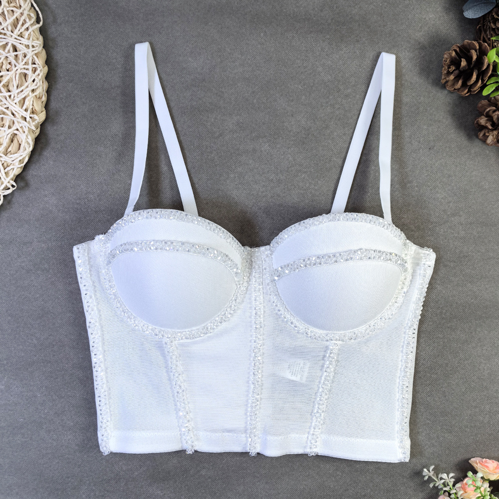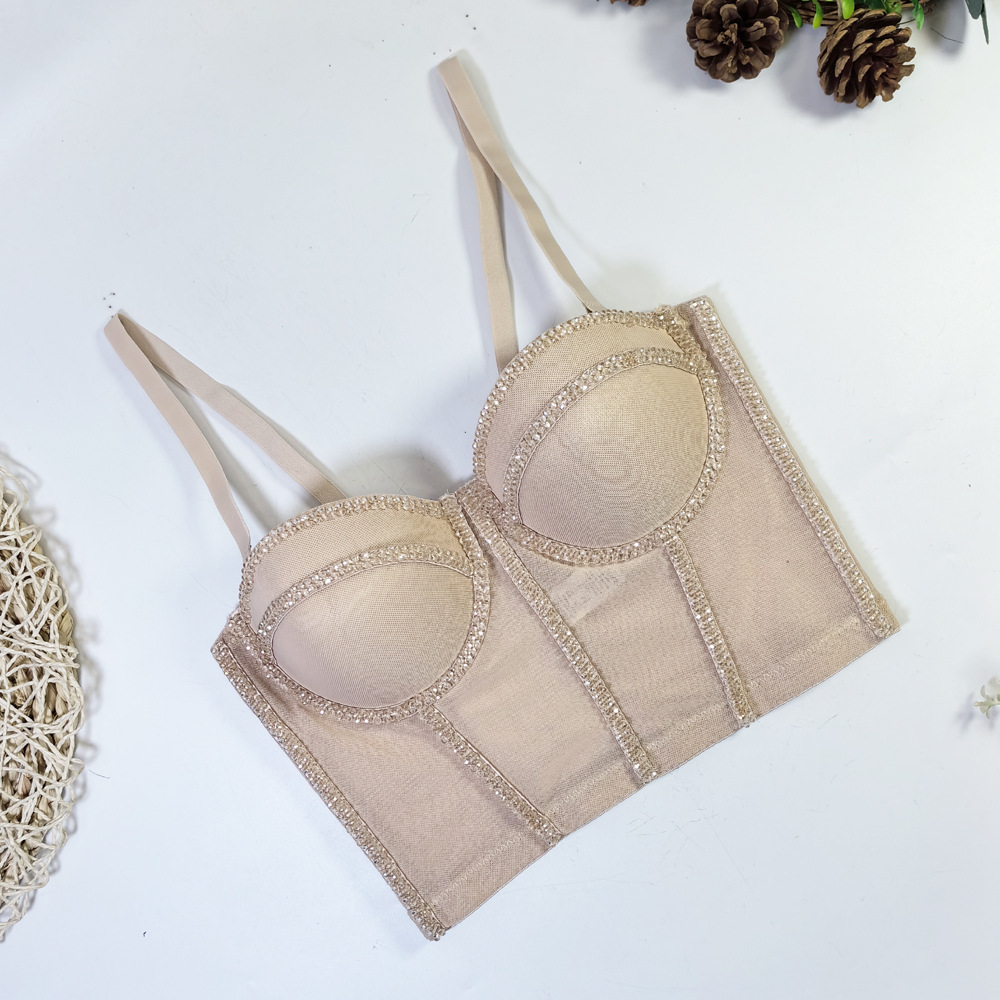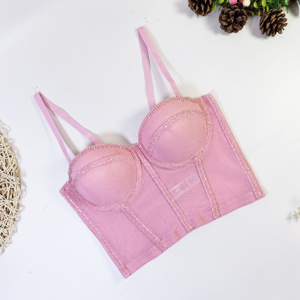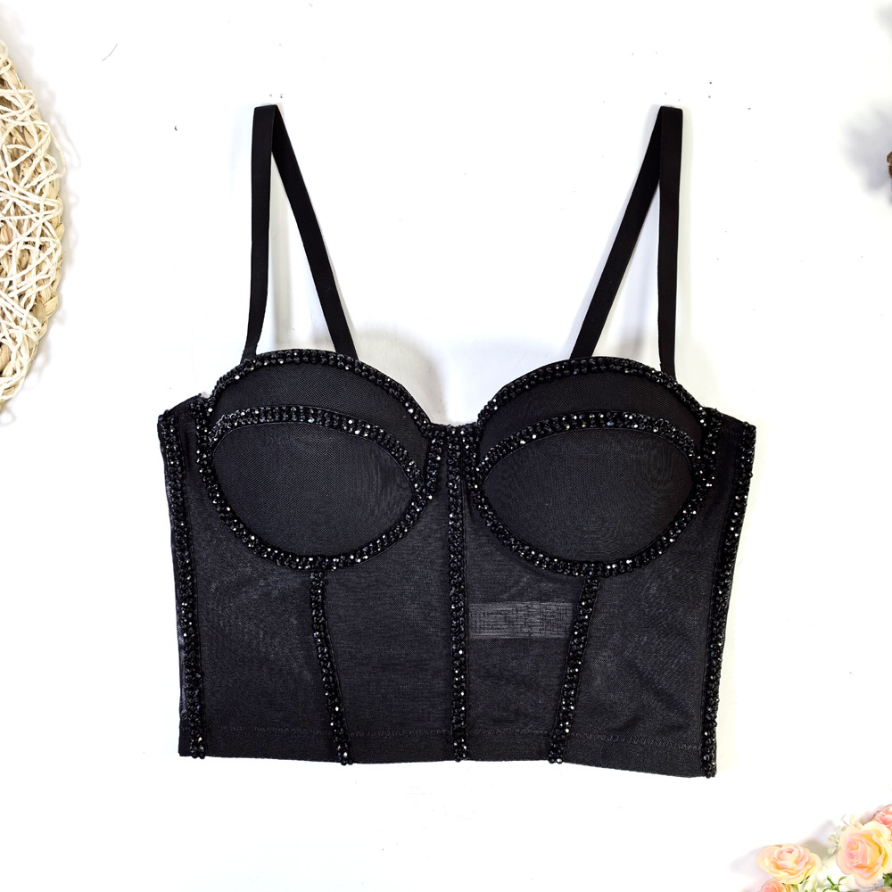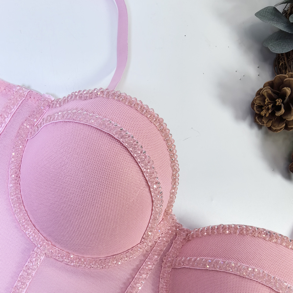 유럽과 미국의 국경 간 아마존 AliExpress 섹시 비즈 메쉬 브라 아우터 바디 쉐이핑 피쉬 뼈 슬링 크리스탈 튜브