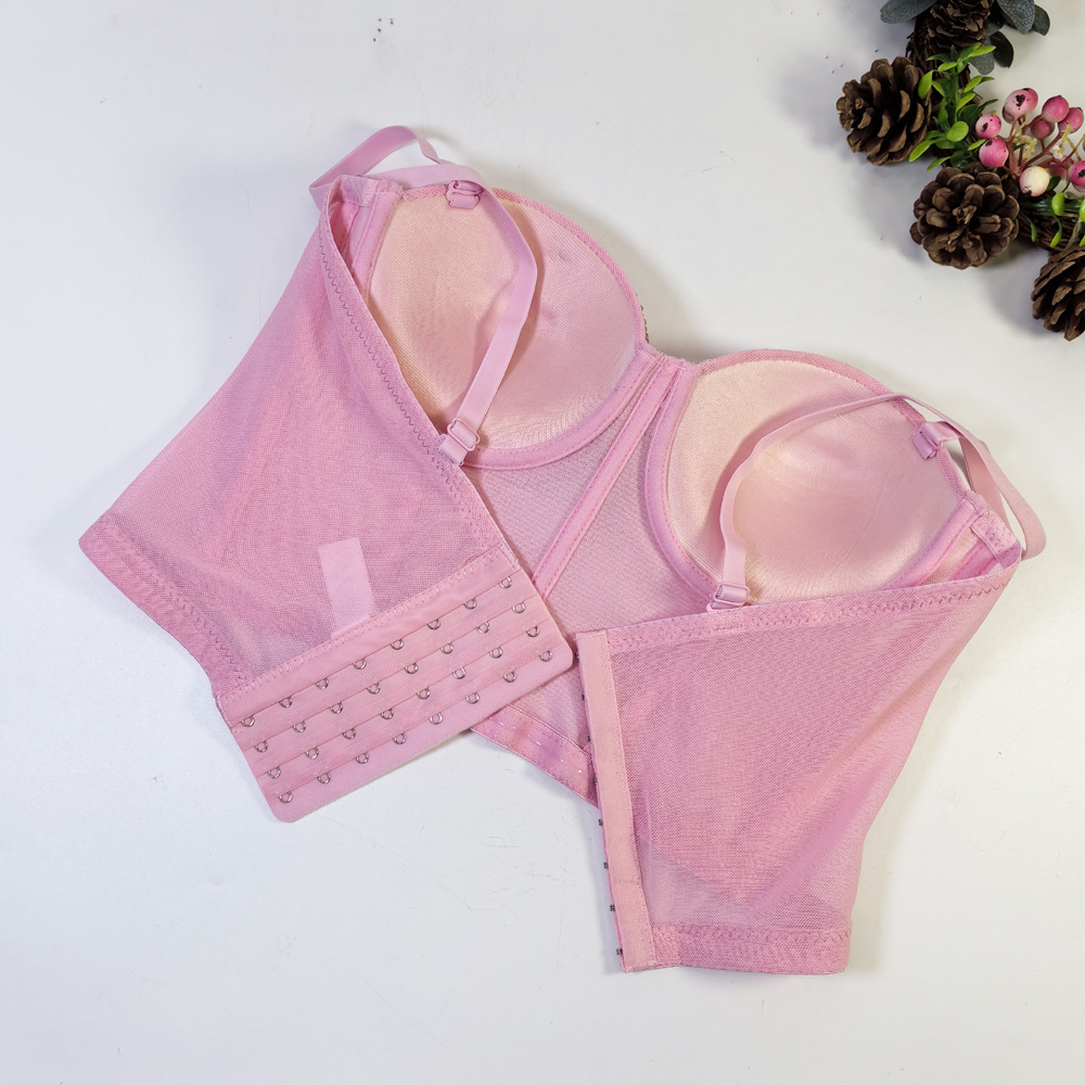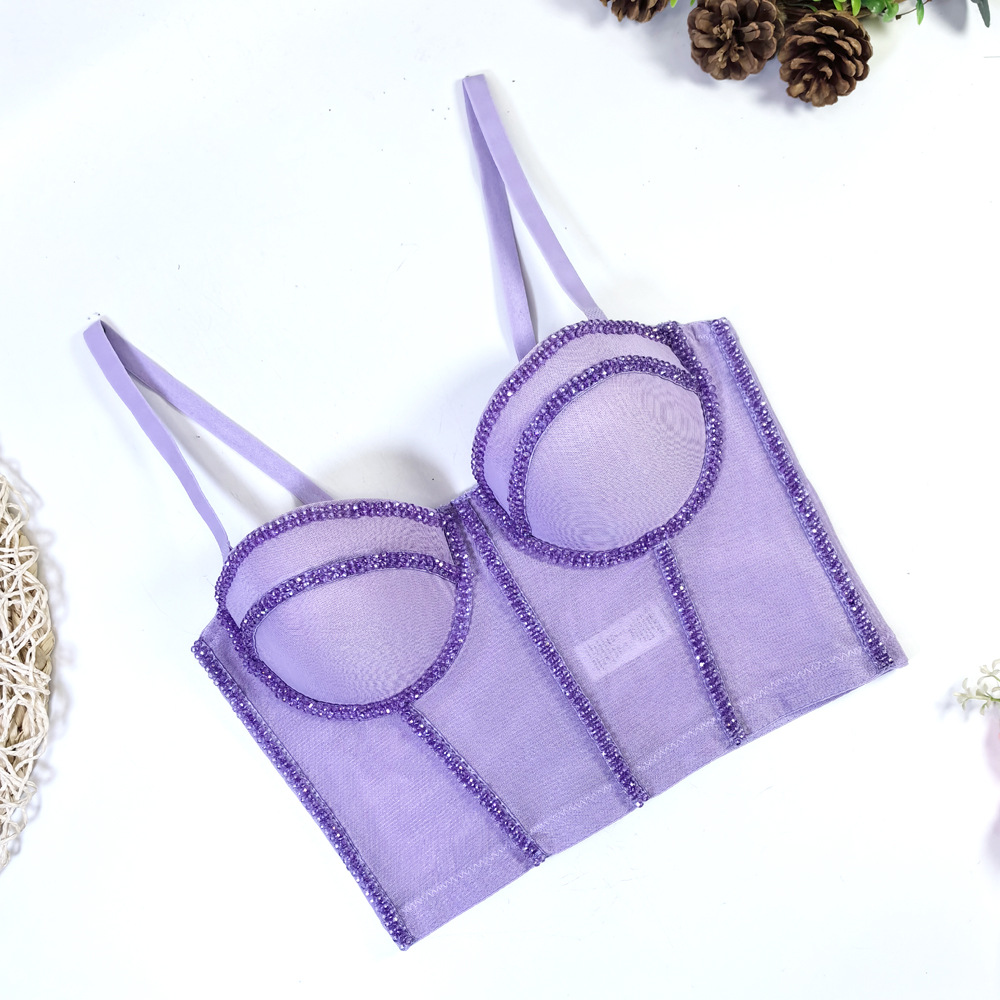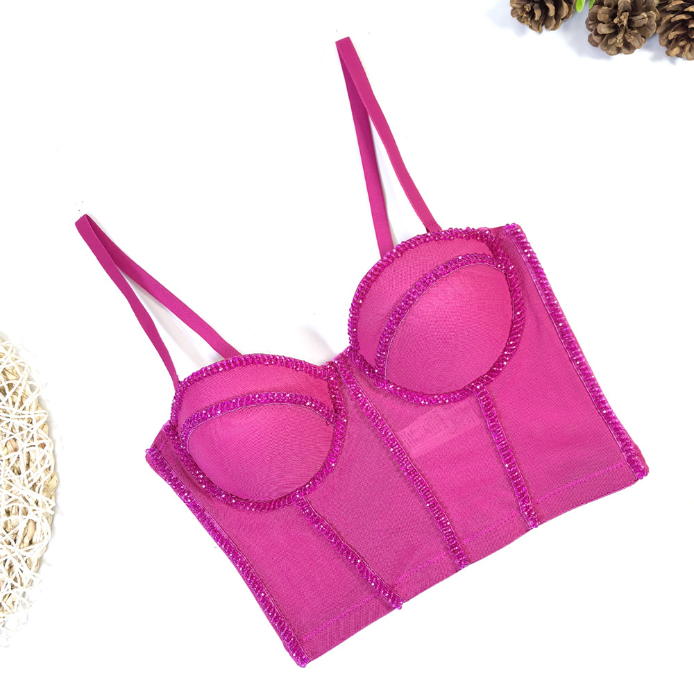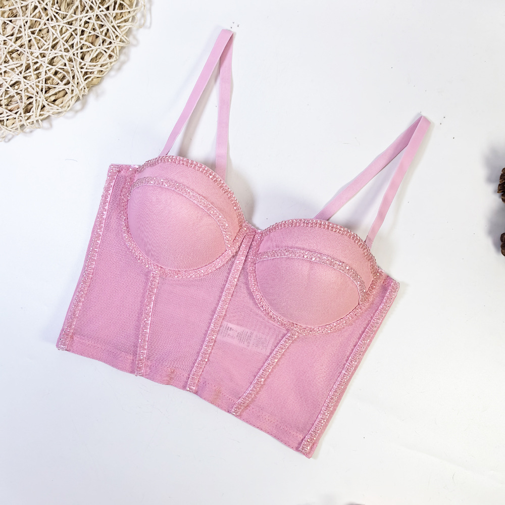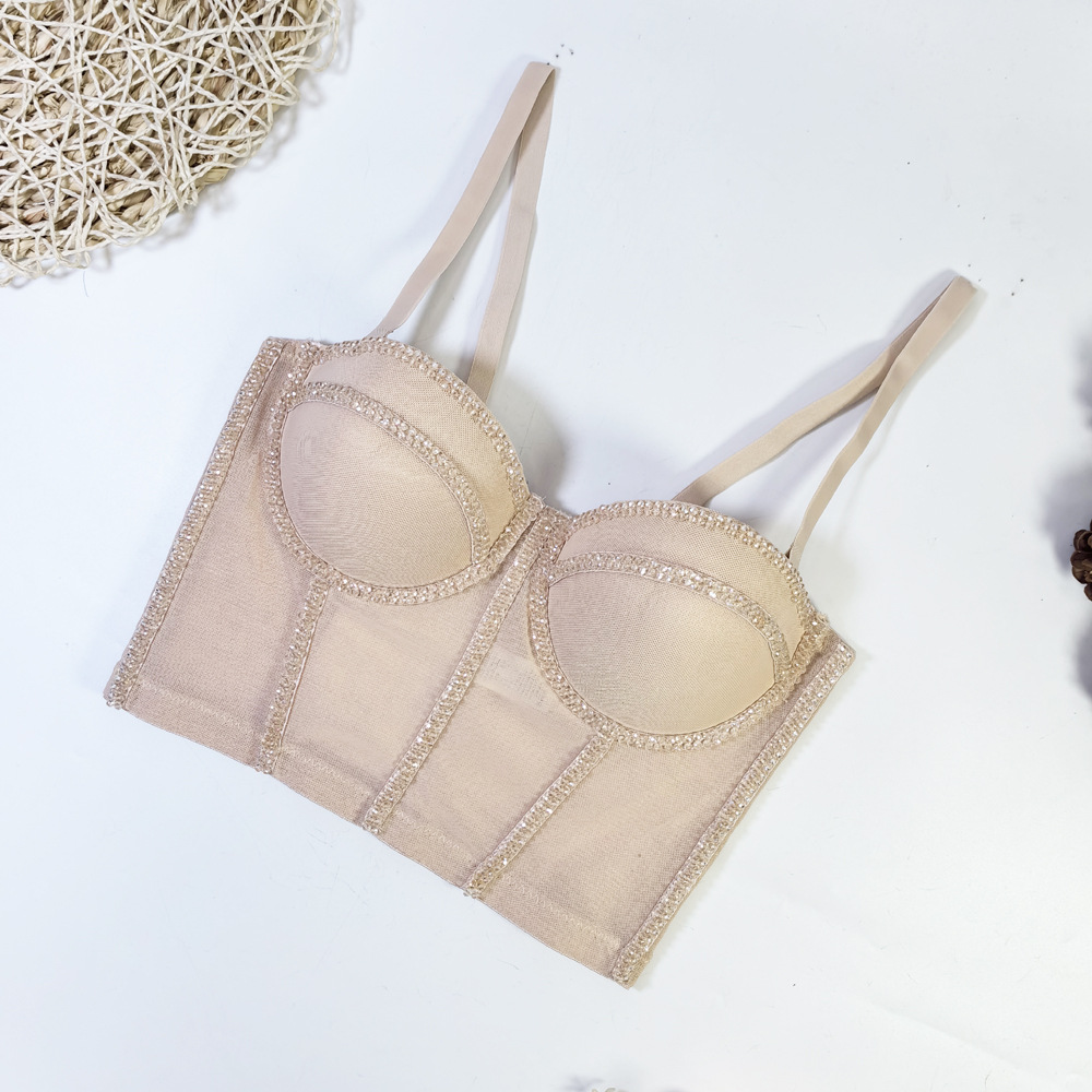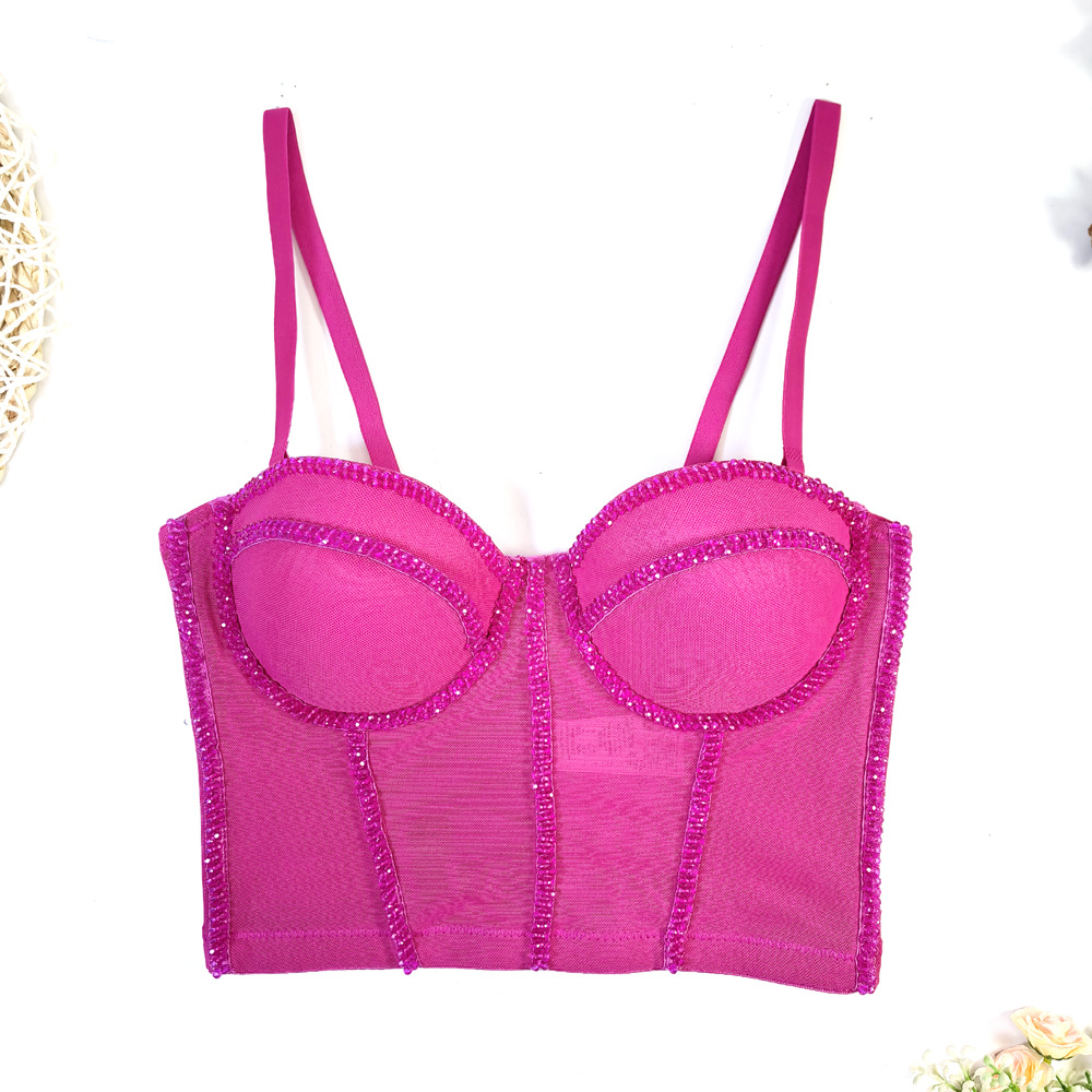 유럽과 미국의 국경 간 아마존 AliExpress 섹시 비즈 메쉬 브라 아우터 바디 쉐이핑 피쉬 뼈 슬링 크리스탈 튜브