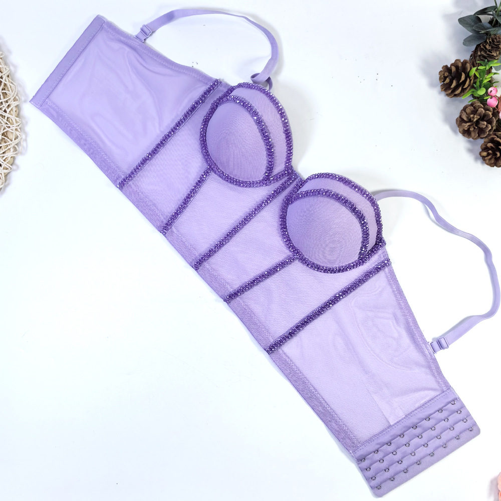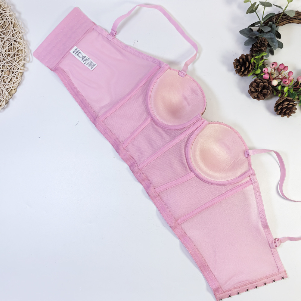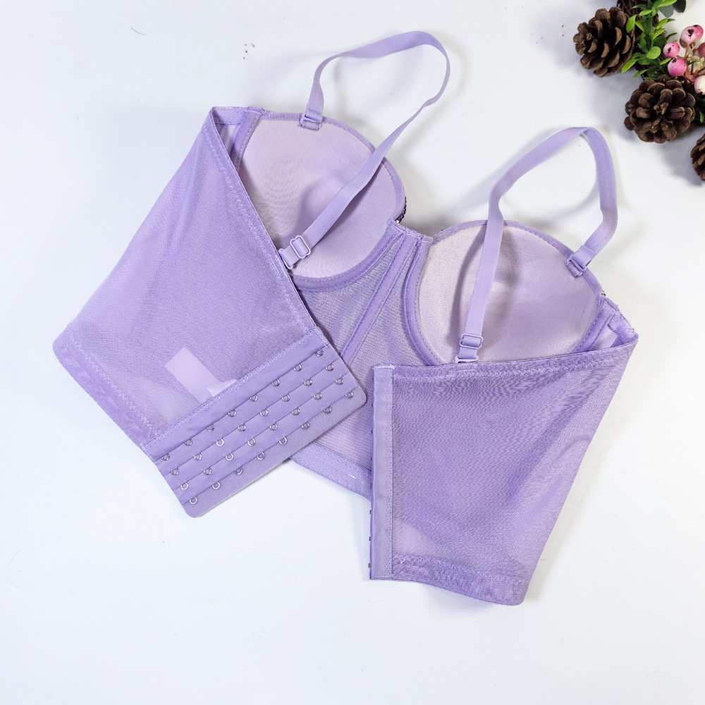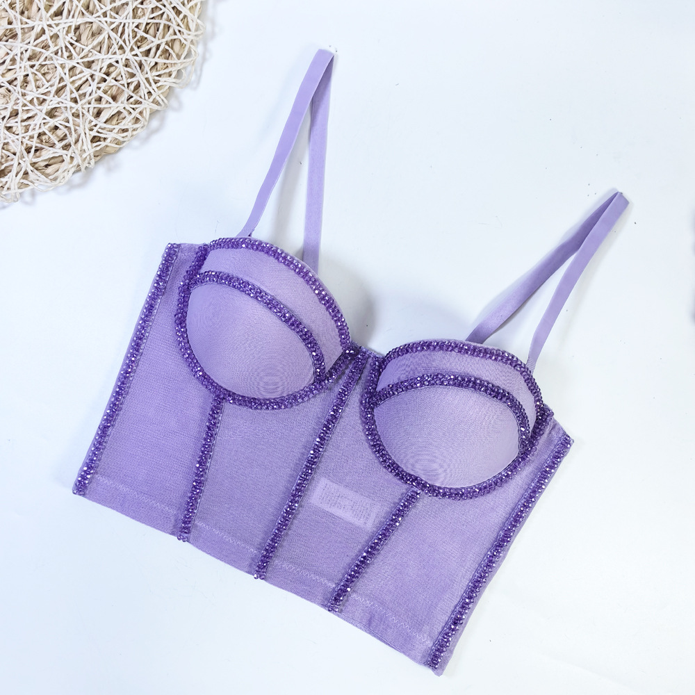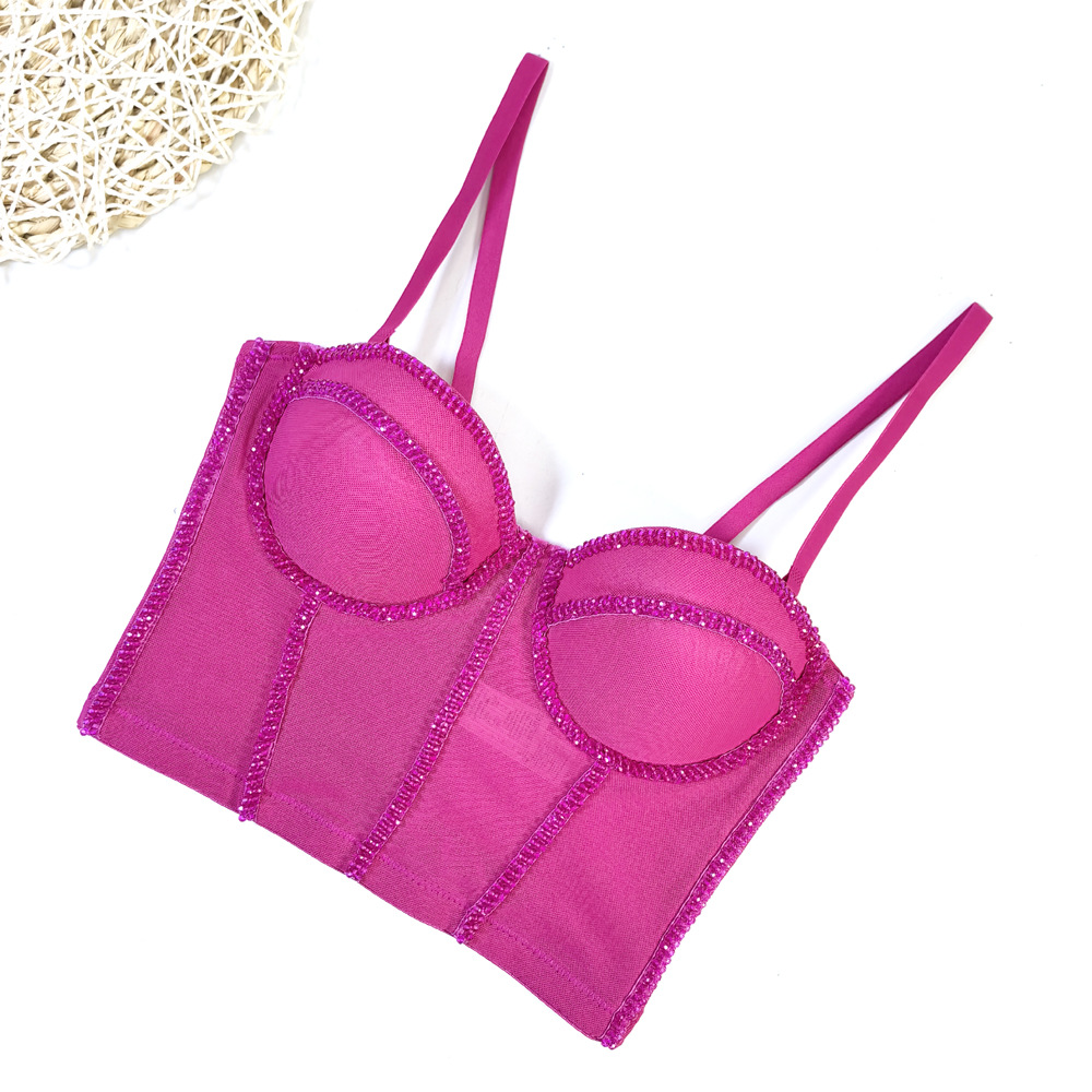 유럽과 미국의 국경 간 아마존 AliExpress 섹시 비즈 메쉬 브라 아우터 바디 쉐이핑 피쉬 뼈 슬링 크리스탈 튜브