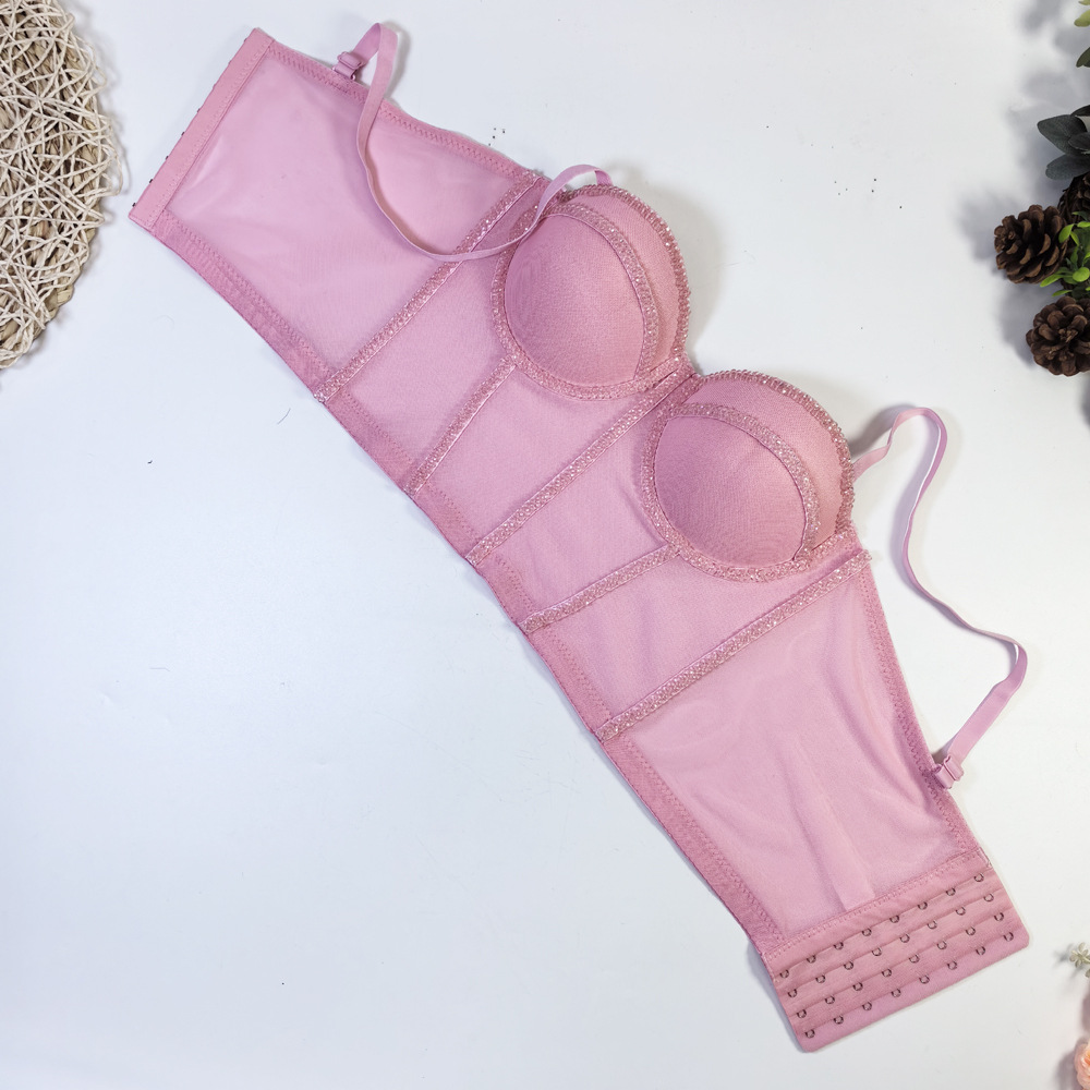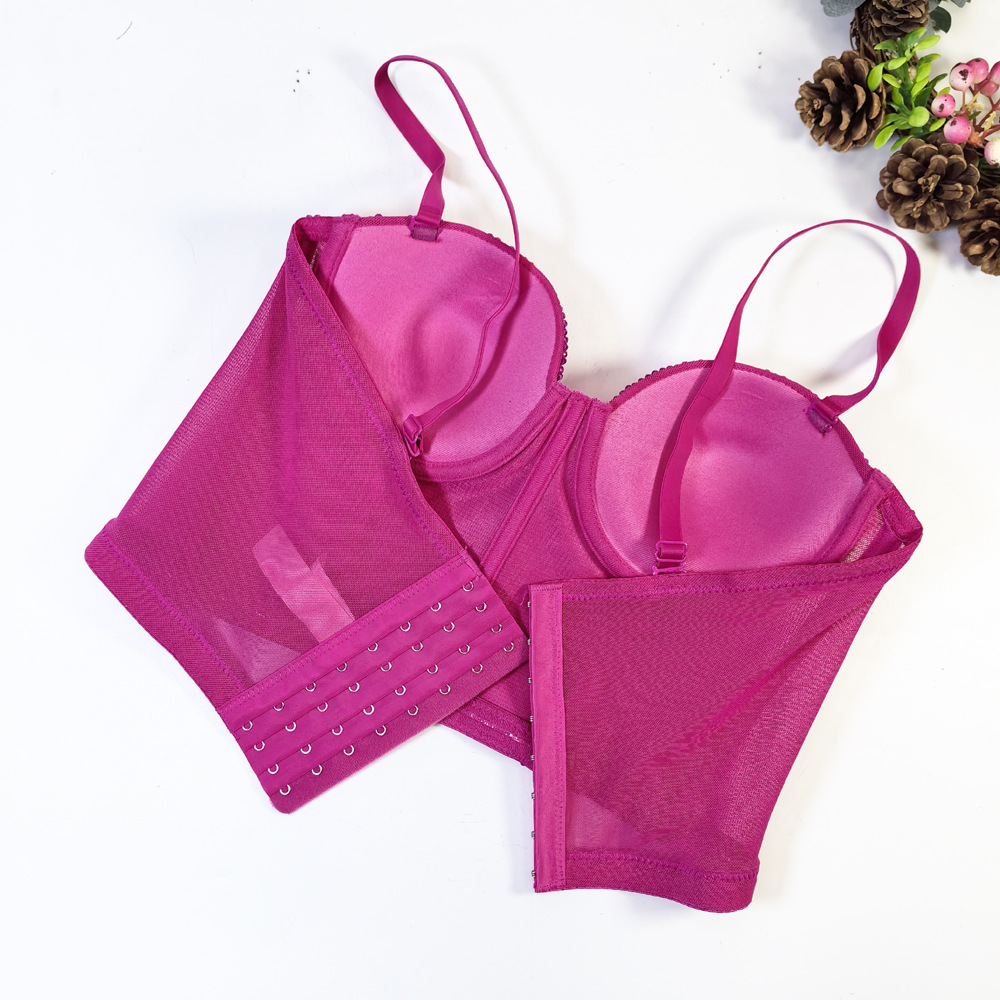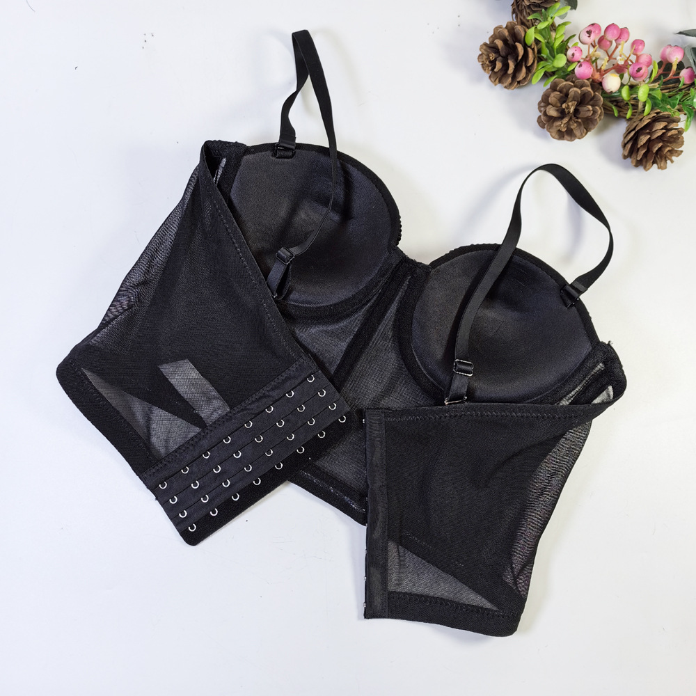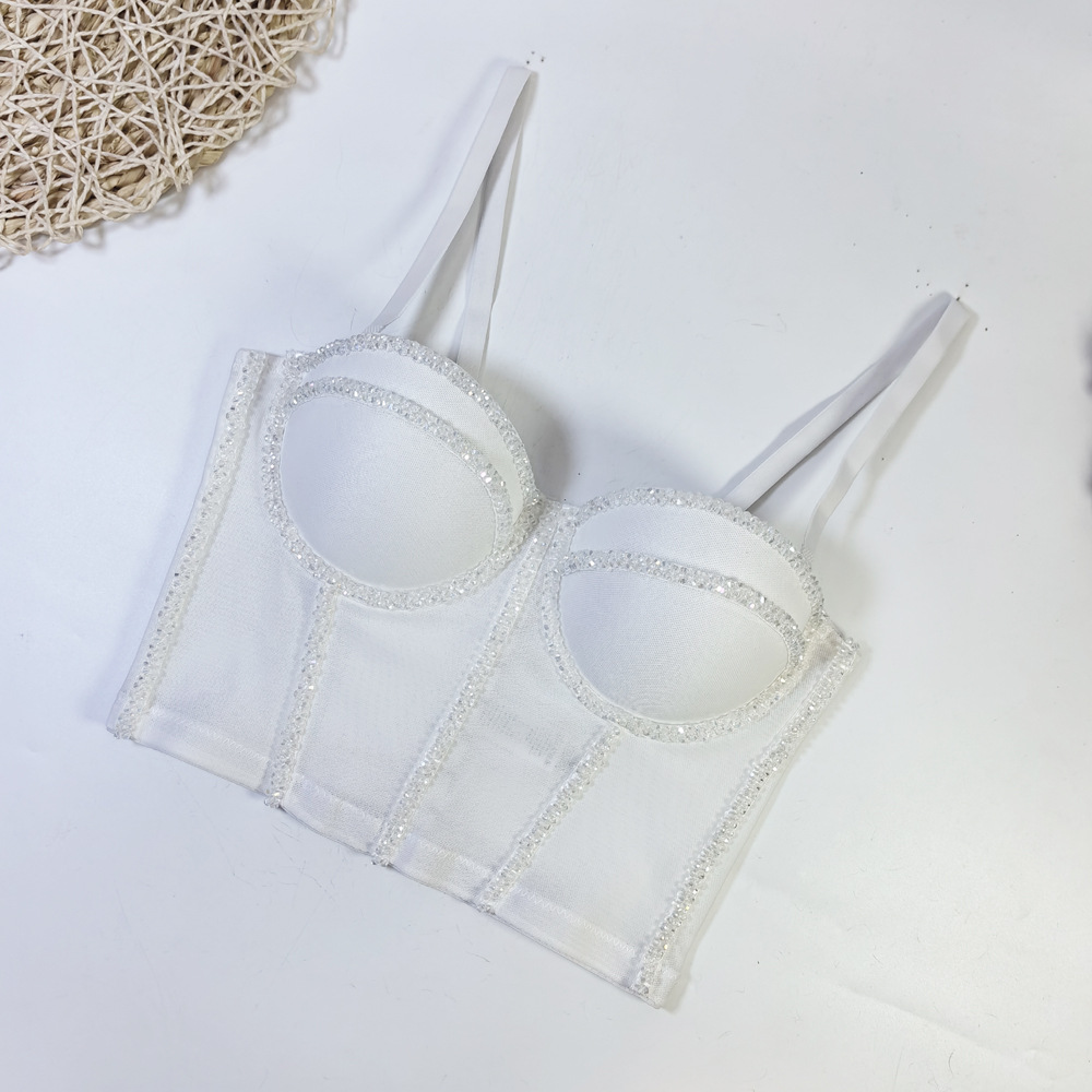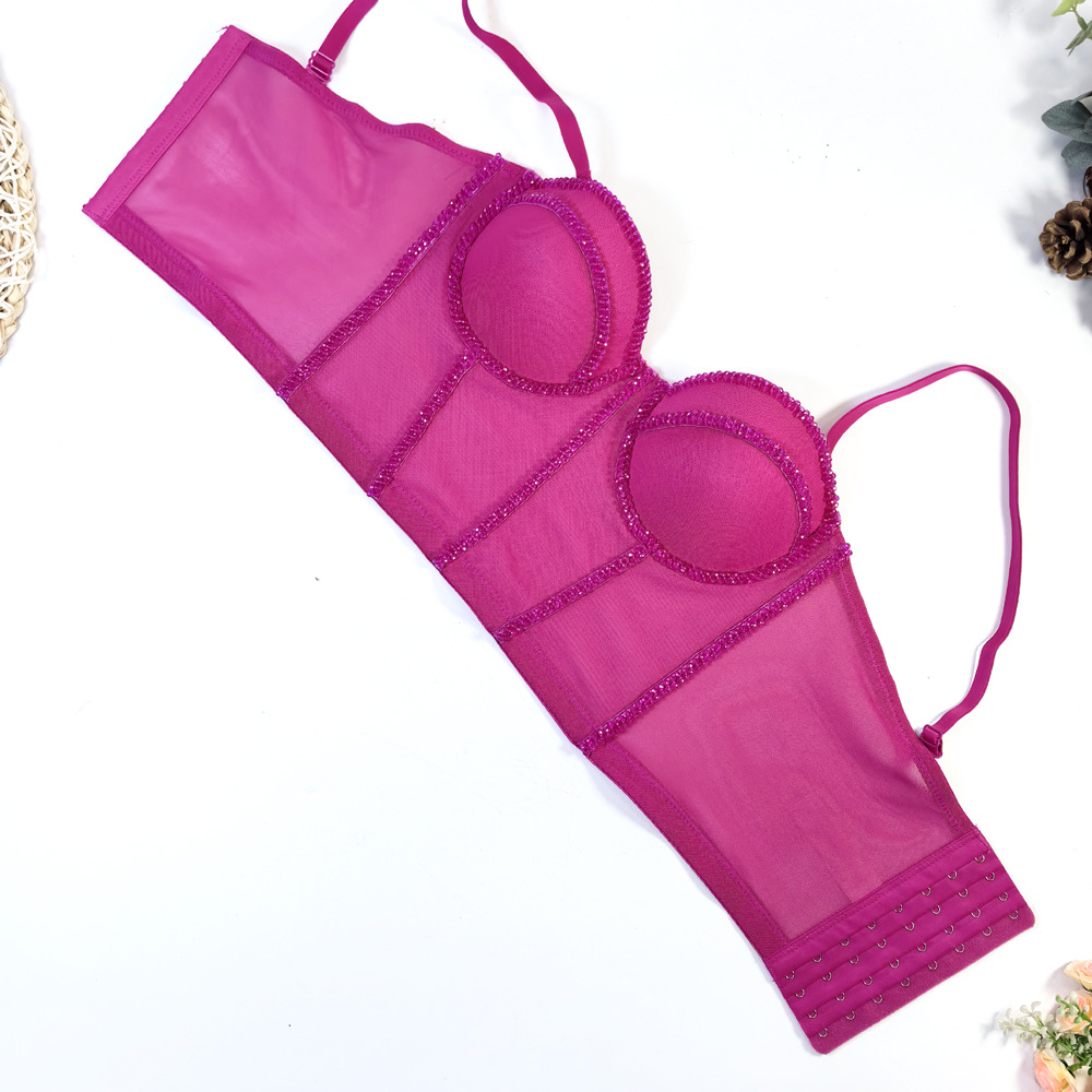 유럽과 미국의 국경 간 아마존 AliExpress 섹시 비즈 메쉬 브라 아우터 바디 쉐이핑 피쉬 뼈 슬링 크리스탈 튜브