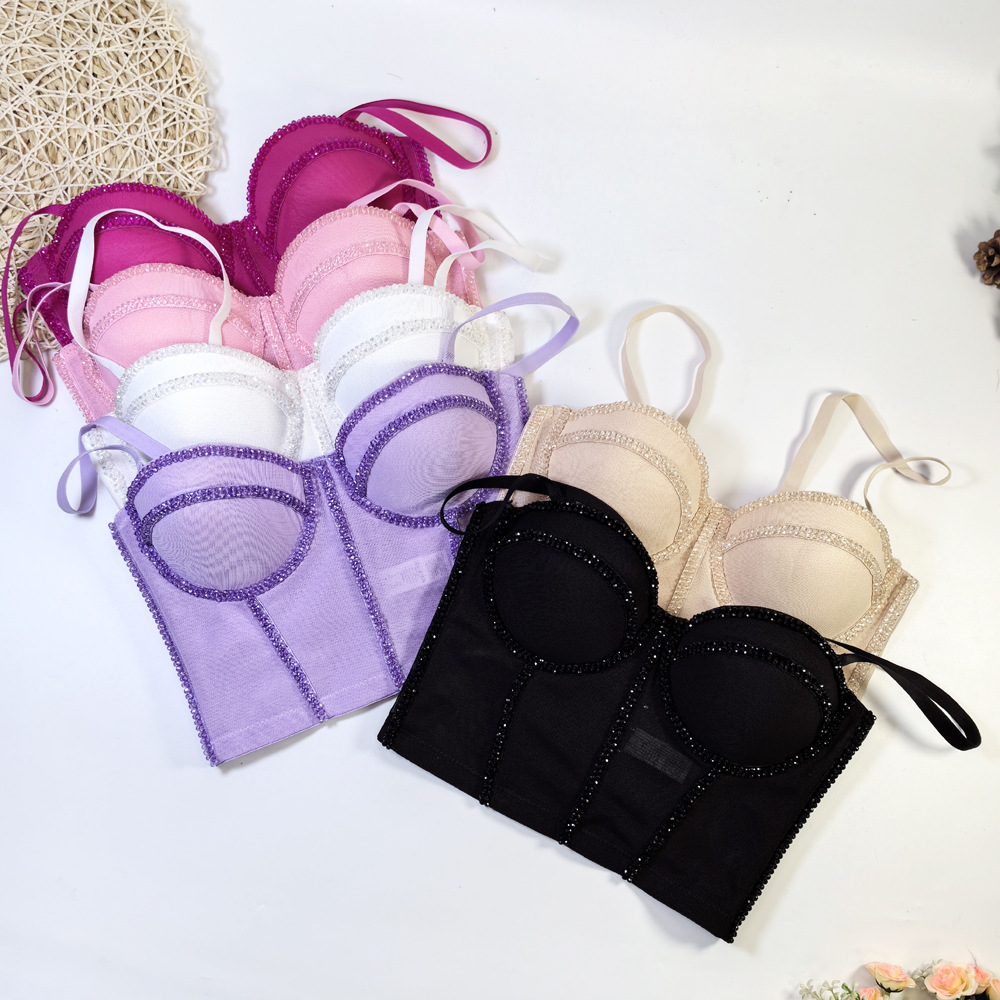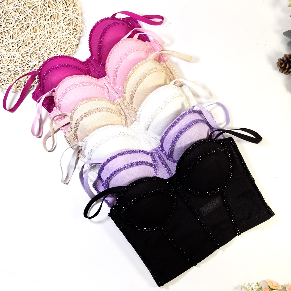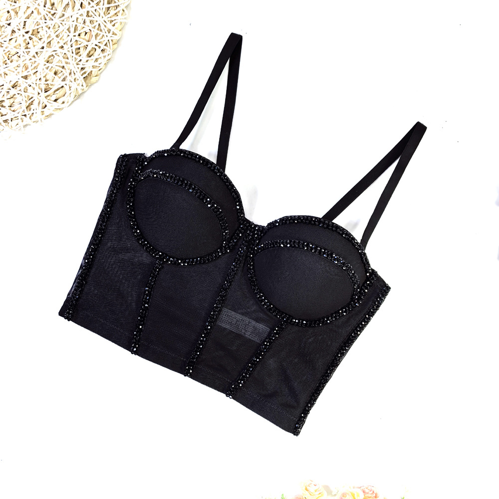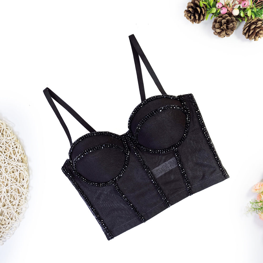 유럽과 미국의 국경 간 아마존 AliExpress 섹시 비즈 메쉬 브라 아우터 바디 쉐이핑 피쉬 뼈 슬링 크리스탈 튜브스토어 가기