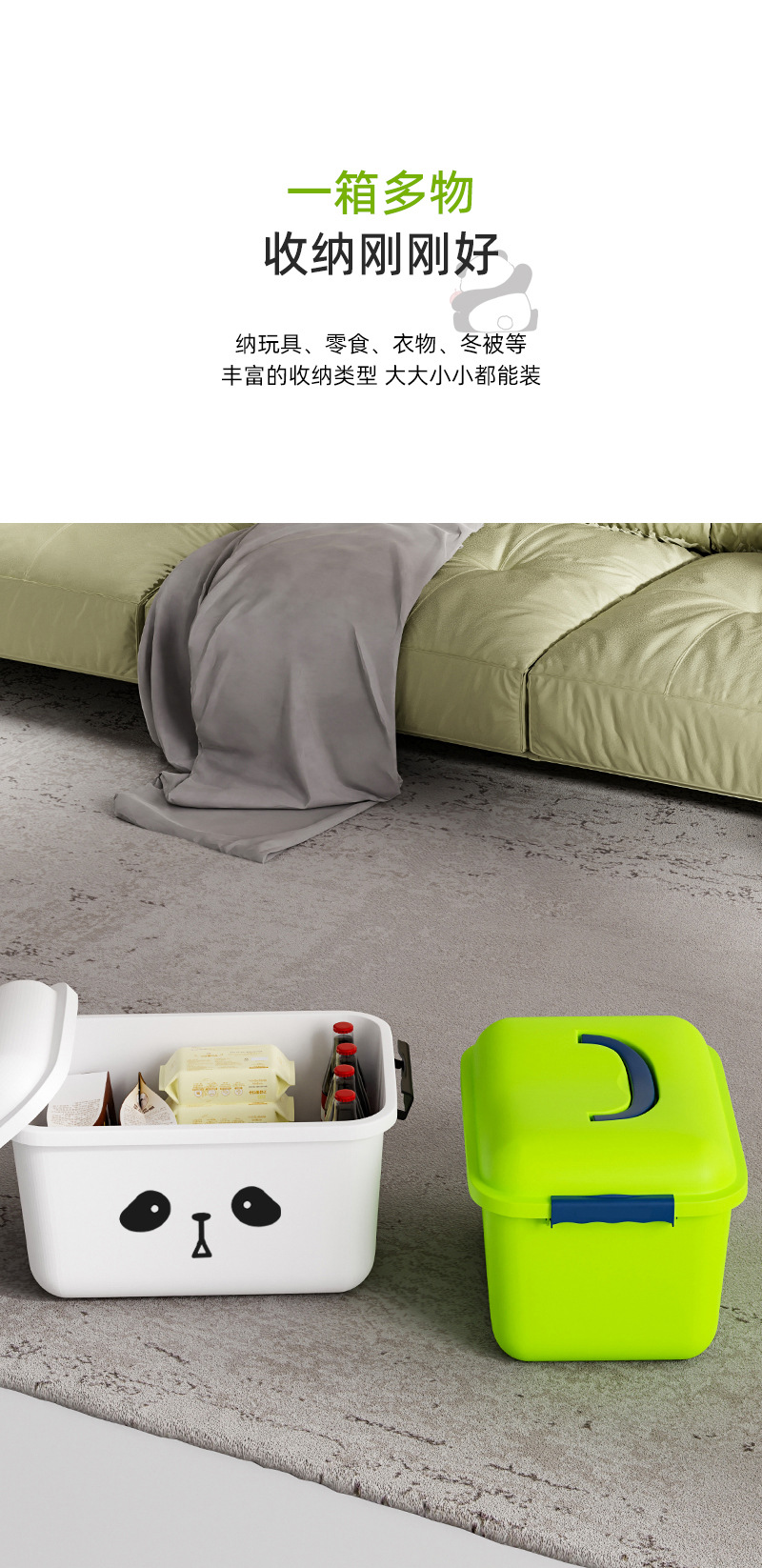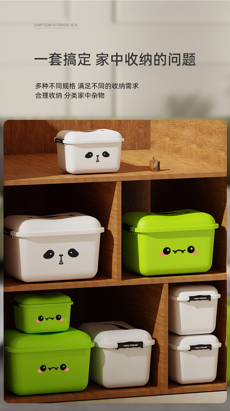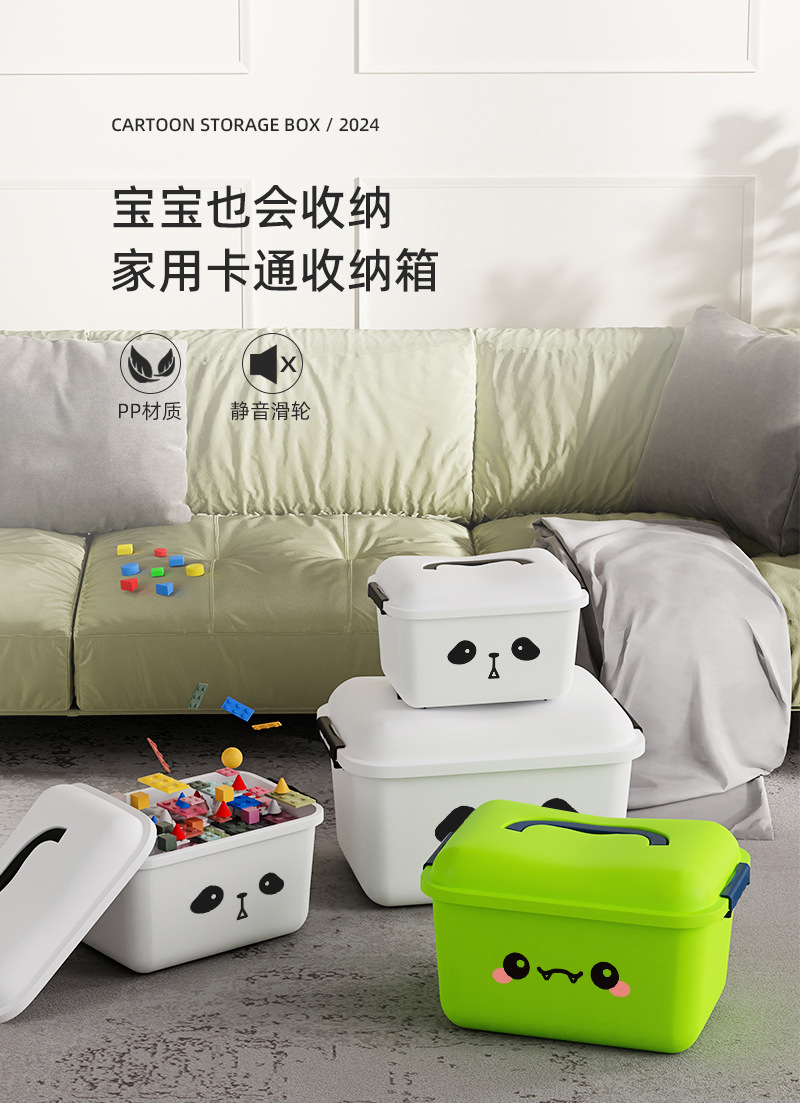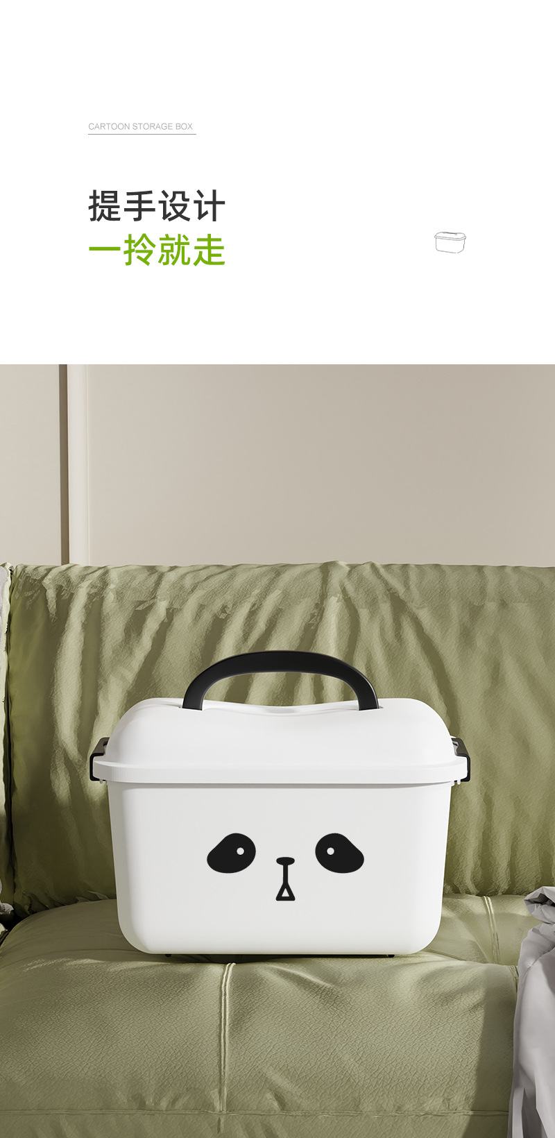 어린이 팬더 만화 바퀴가 달린 플라스틱 보관 케이스 휴대용 공룡 장난감 보관 상자 스낵 빌딩 블록 상자 구성 상자