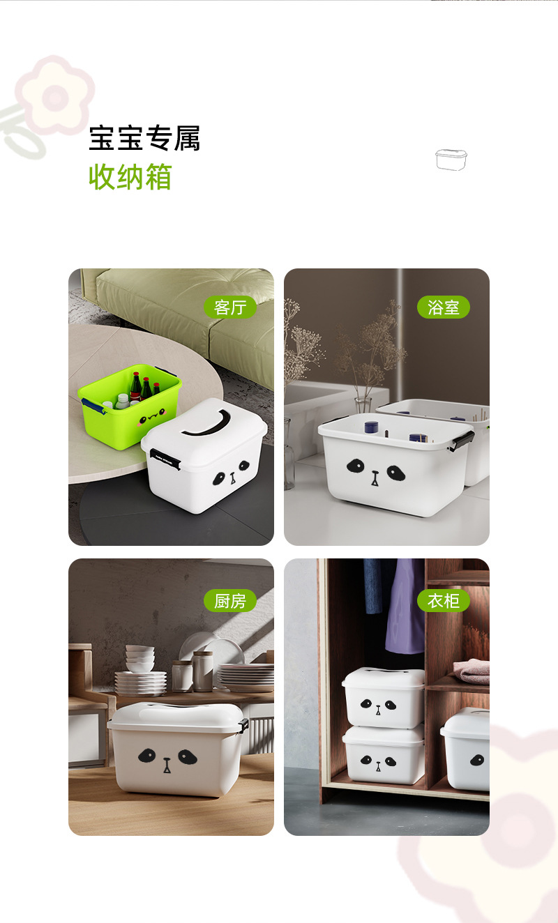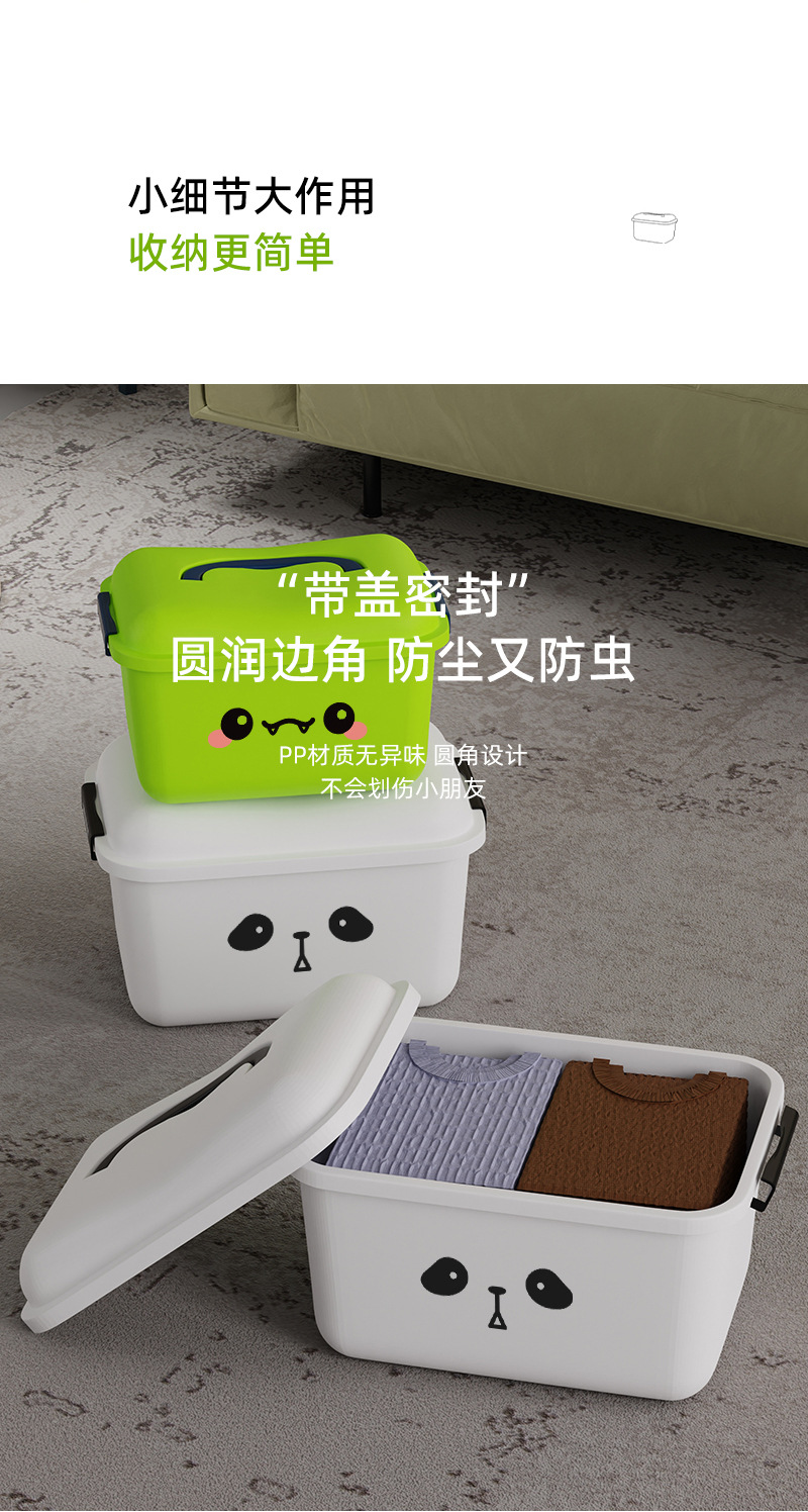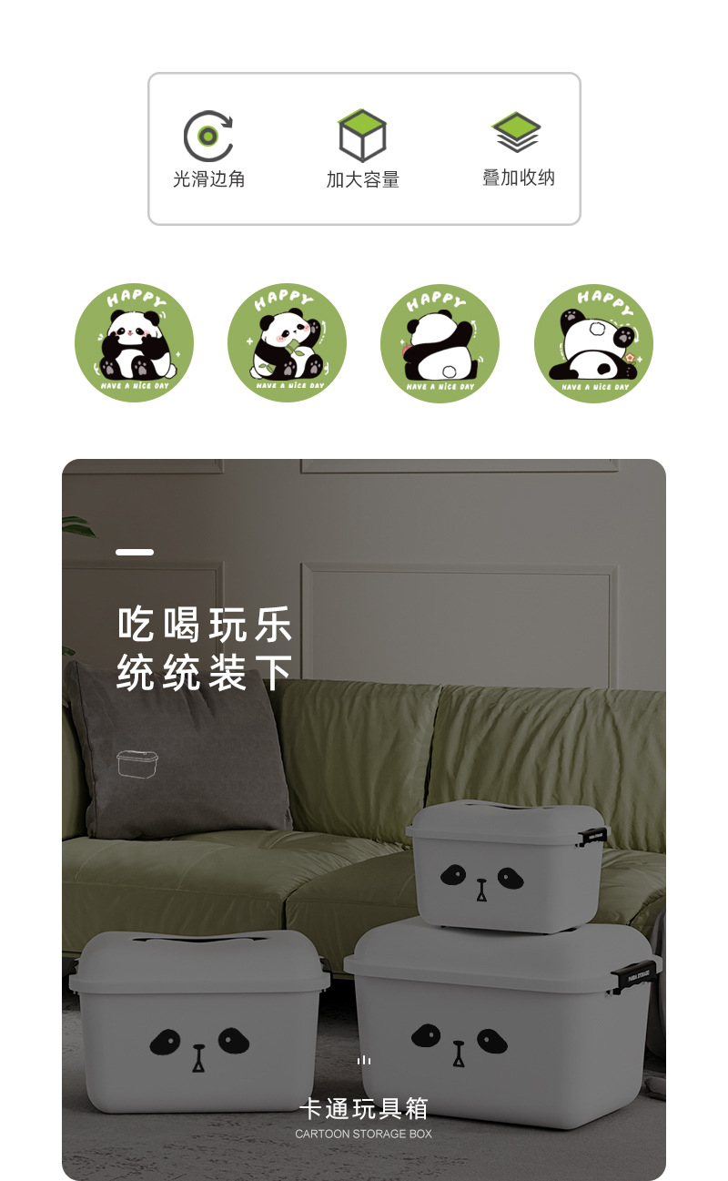 어린이 팬더 만화 바퀴가 달린 플라스틱 보관 케이스 휴대용 공룡 장난감 보관 상자 스낵 빌딩 블록 상자 구성 상자