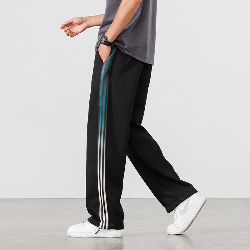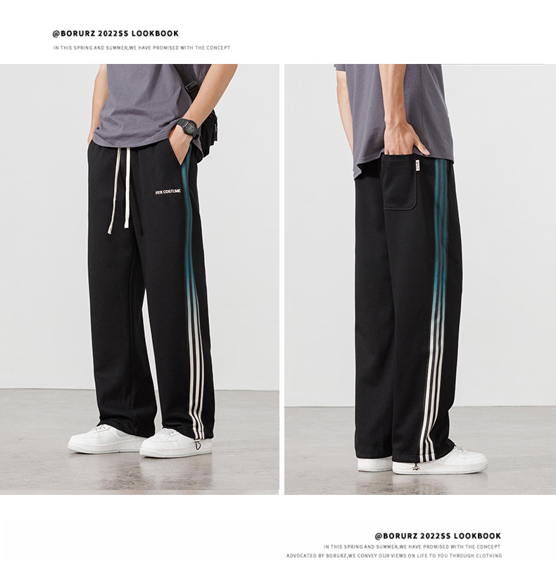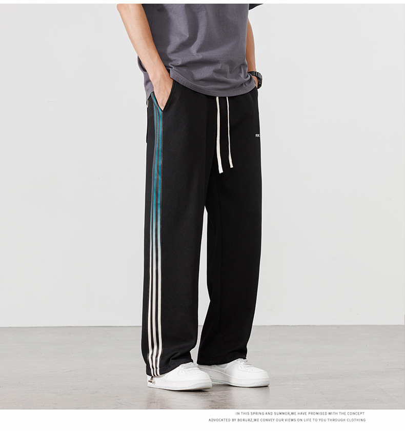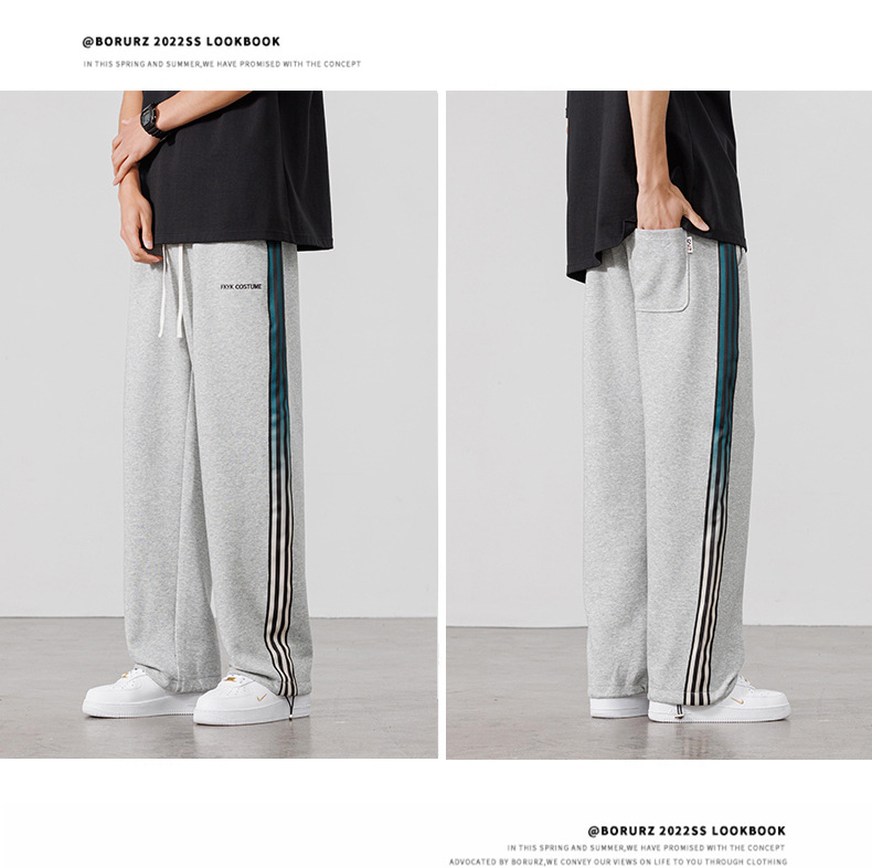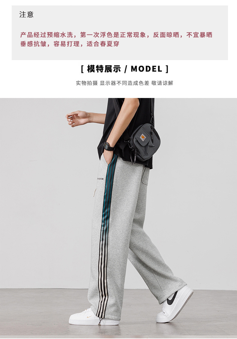 남자 바지 2024 새로운 봄과 가을 느슨한 스트레이트 캐주얼 바지 여름 얇은 미국 스타일 컬러 스트립 스포츠 스웨트 팬츠