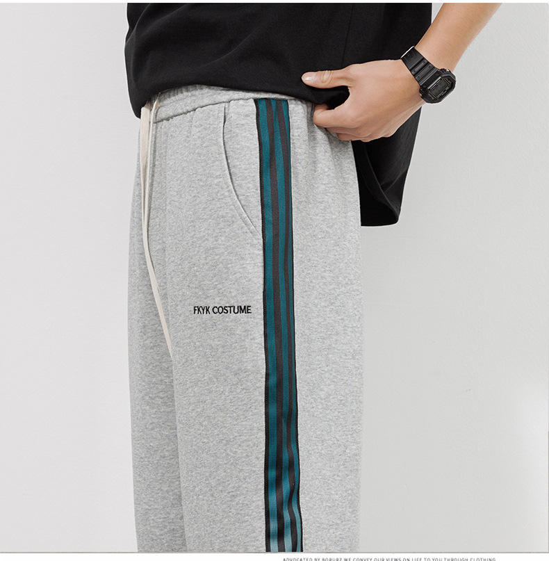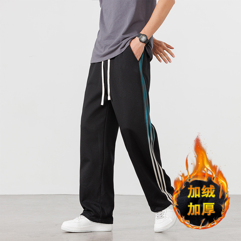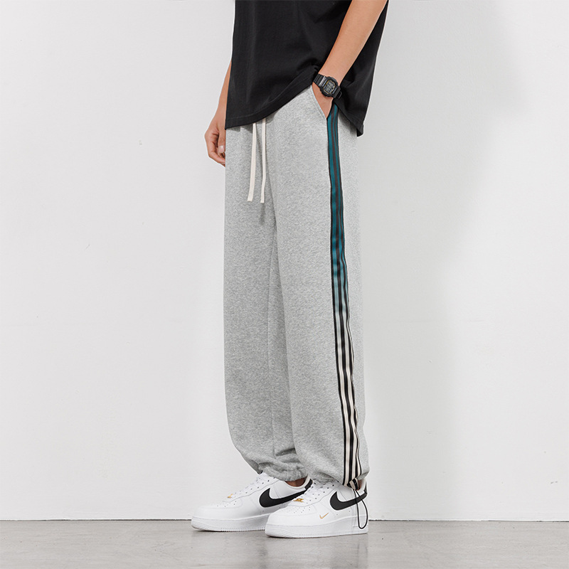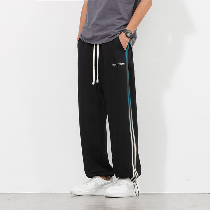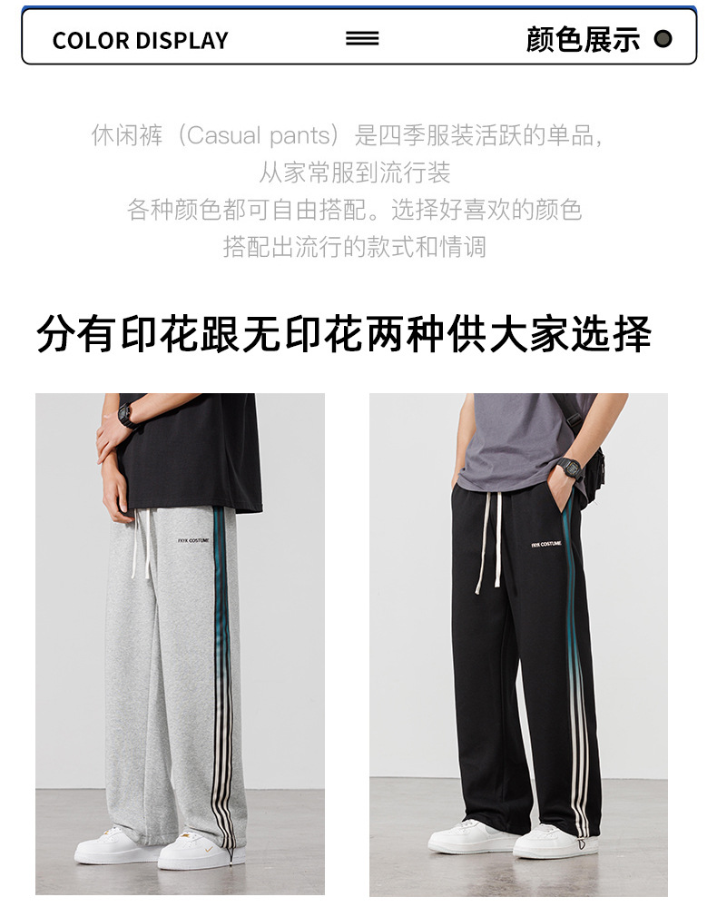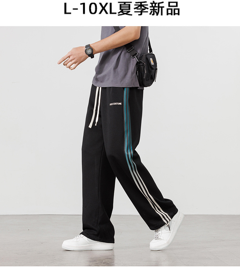 남자 바지 2024 새로운 봄과 가을 느슨한 스트레이트 캐주얼 바지 여름 얇은 미국 스타일 컬러 스트립 스포츠 스웨트 팬츠