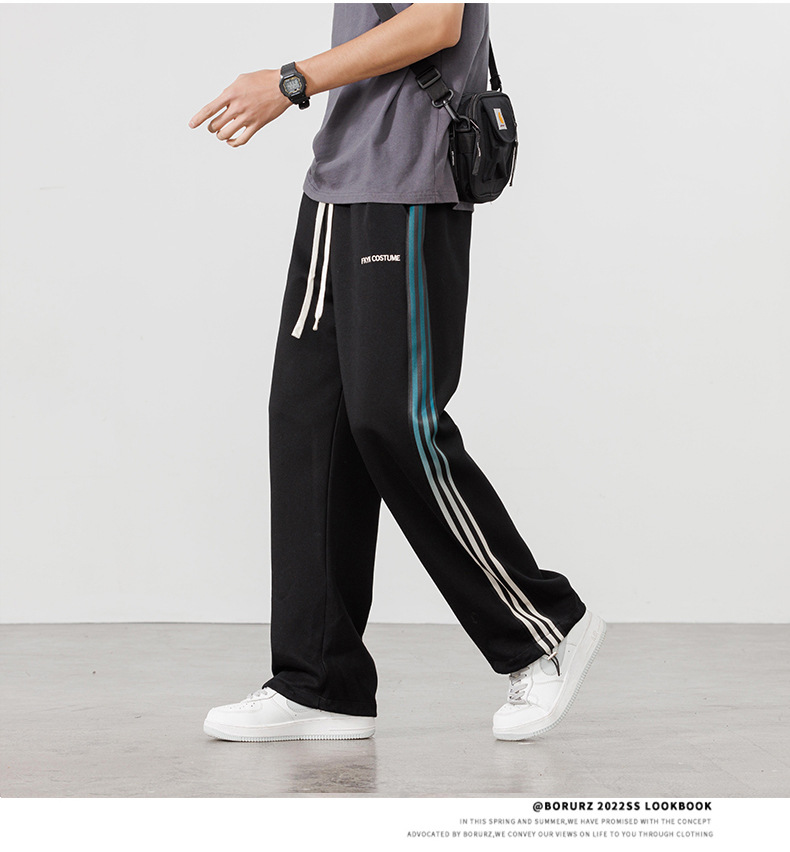남자 바지 2024 새로운 봄과 가을 느슨한 스트레이트 캐주얼 바지 여름 얇은 미국 스타일 컬러 스트립 스포츠 스웨트 팬츠스토어 가기