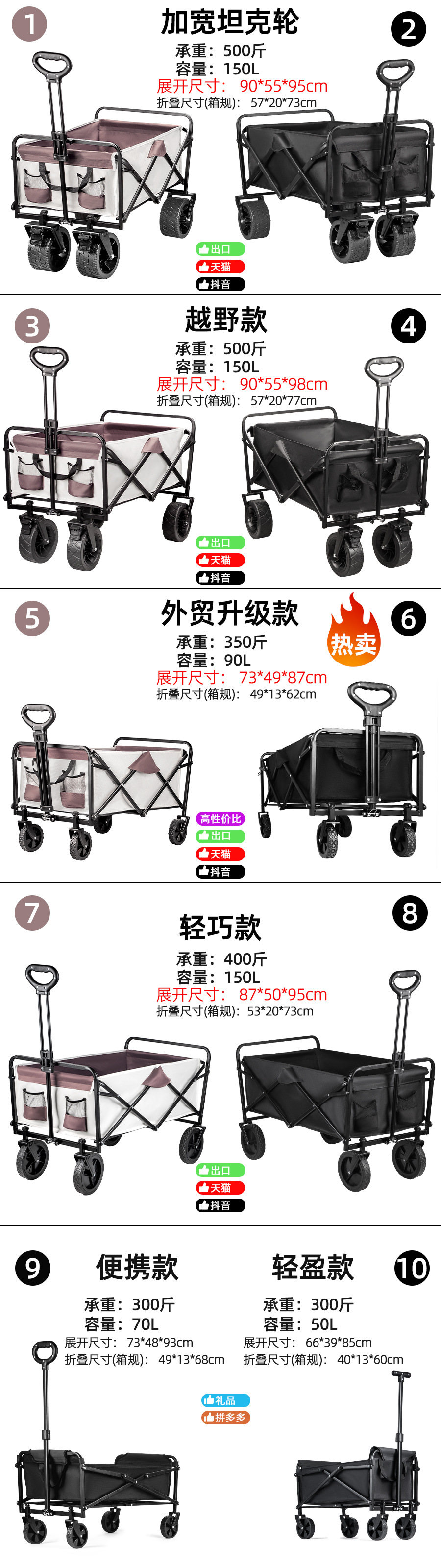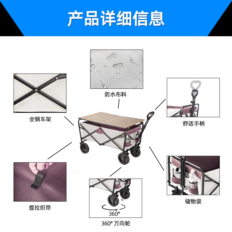캠핑카 야외 접이식 트롤리 대형 캠프 자동차 피크닉 자동차 트레일러 캠핑 핸드 트롤리 스톨 트롤리스토어 가기