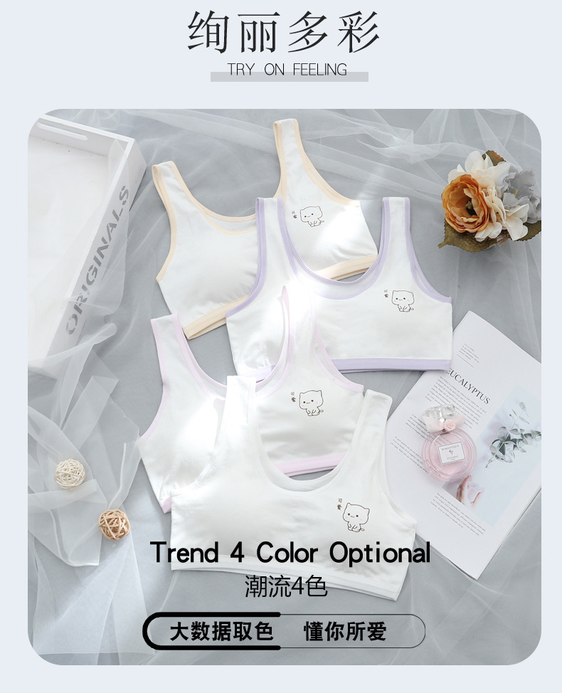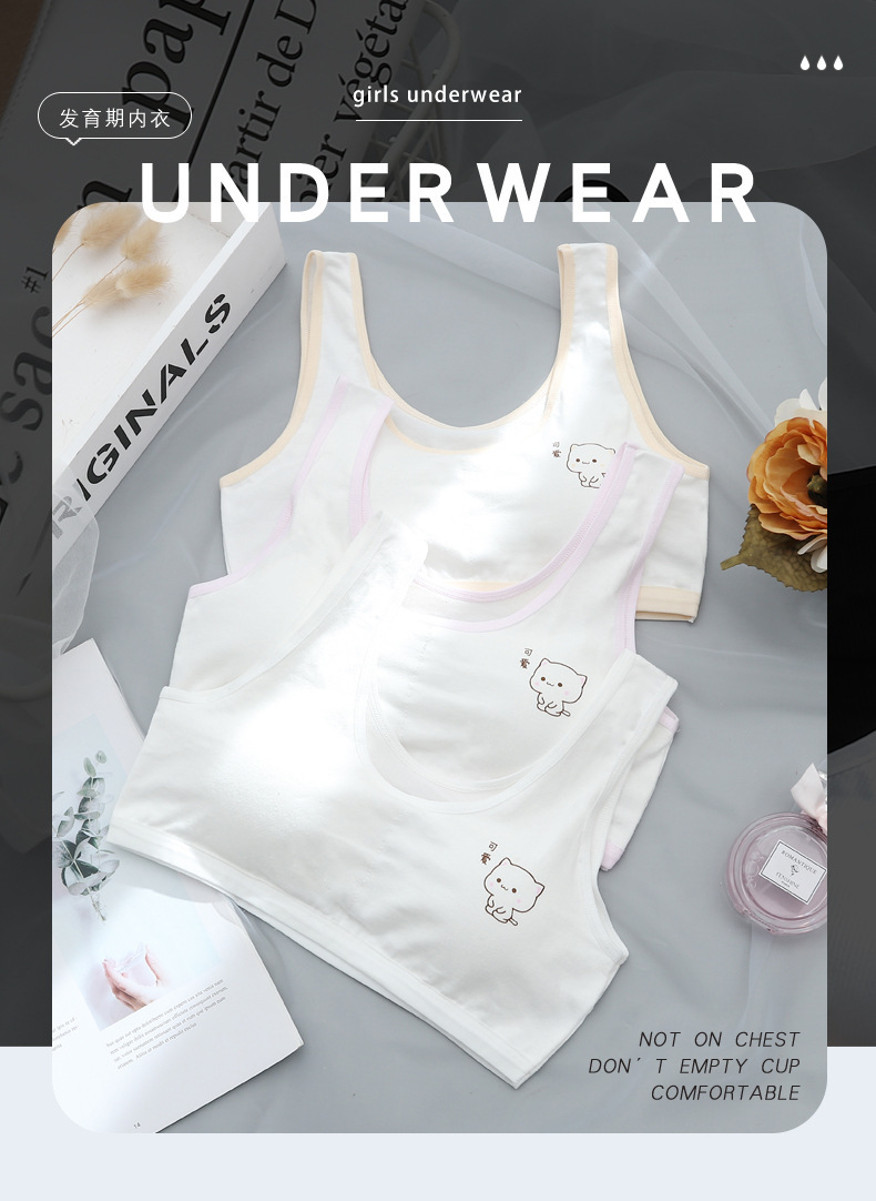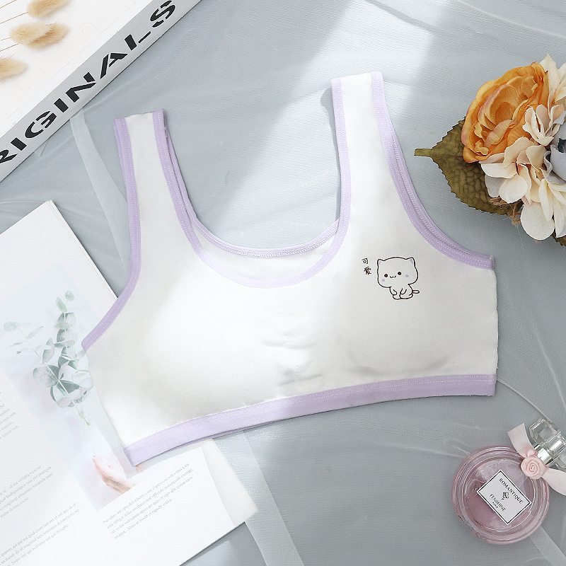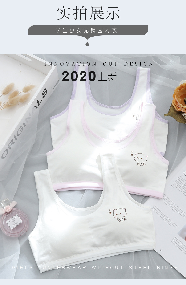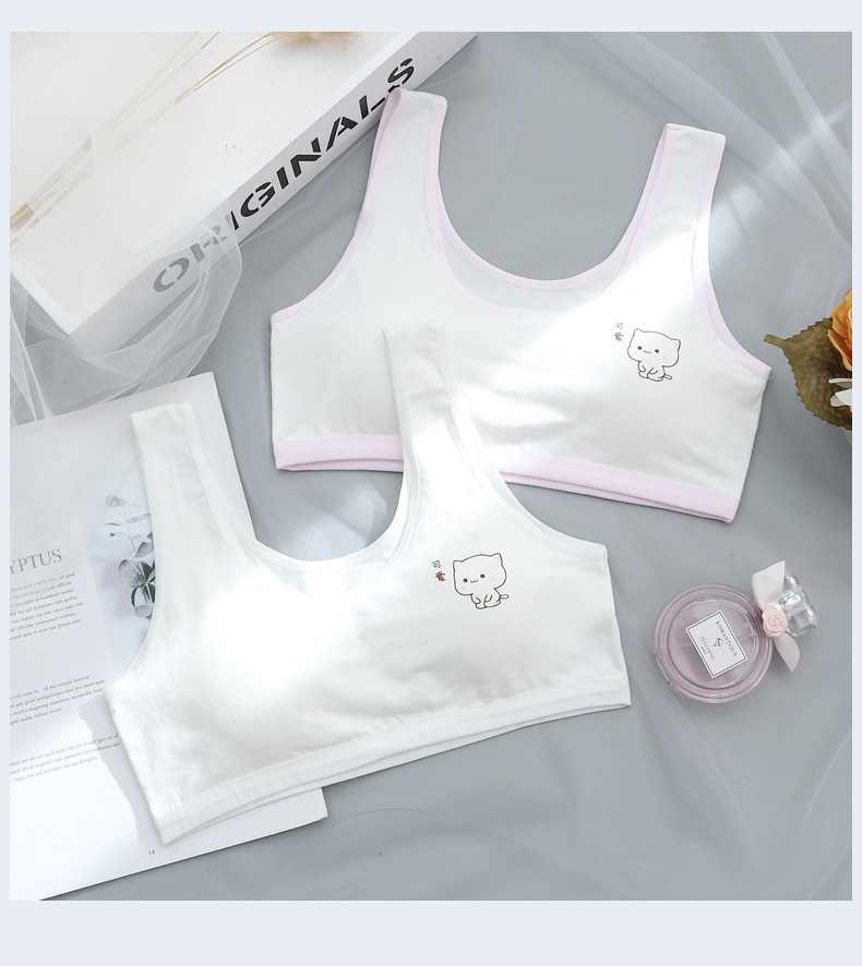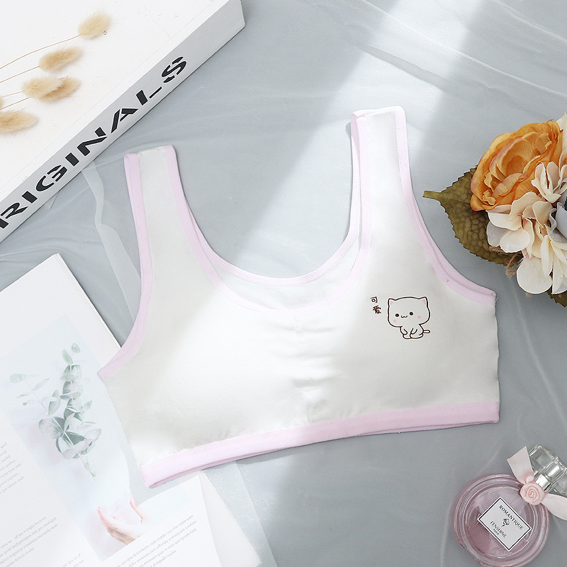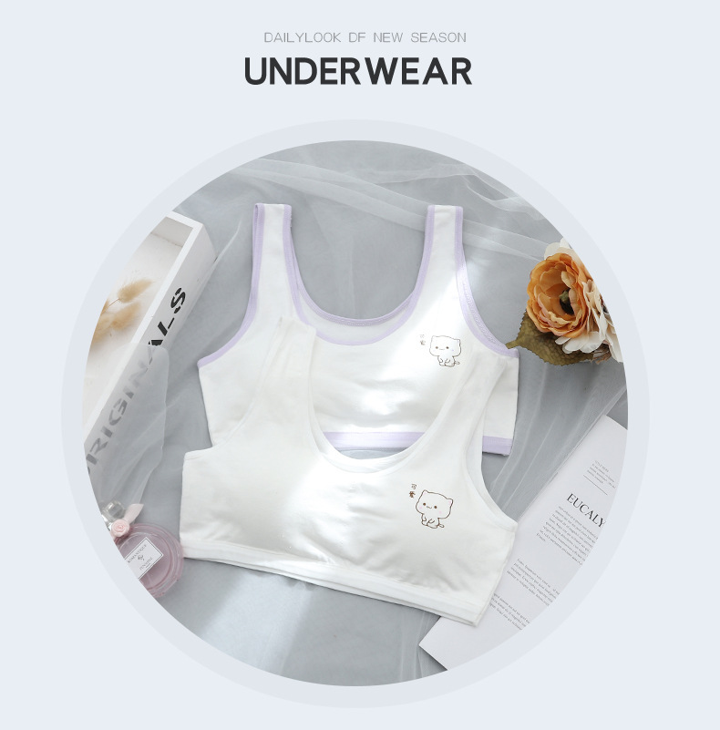 초등학생을위한 여아 발달 속옷 중학생 및 여학생을위한 어린이 면화 내복 작은 조끼 방지 범프 텍스트 브래지어
